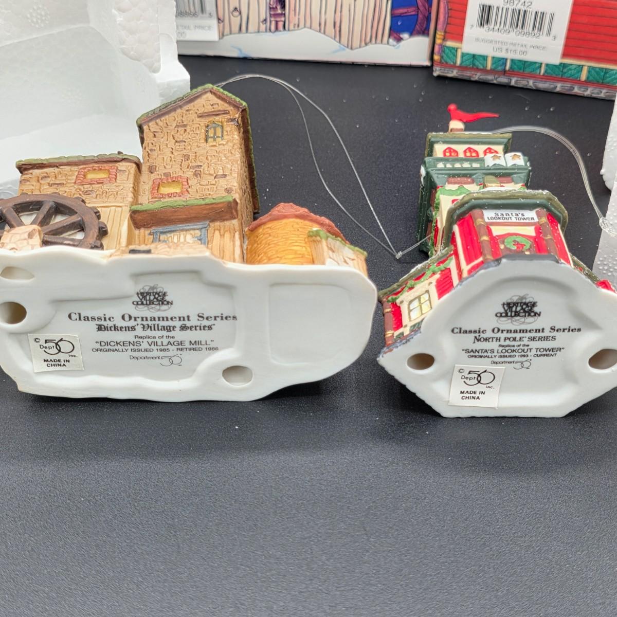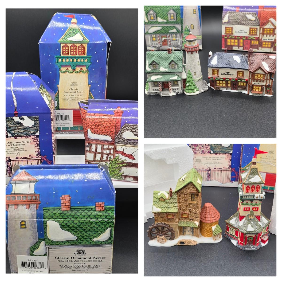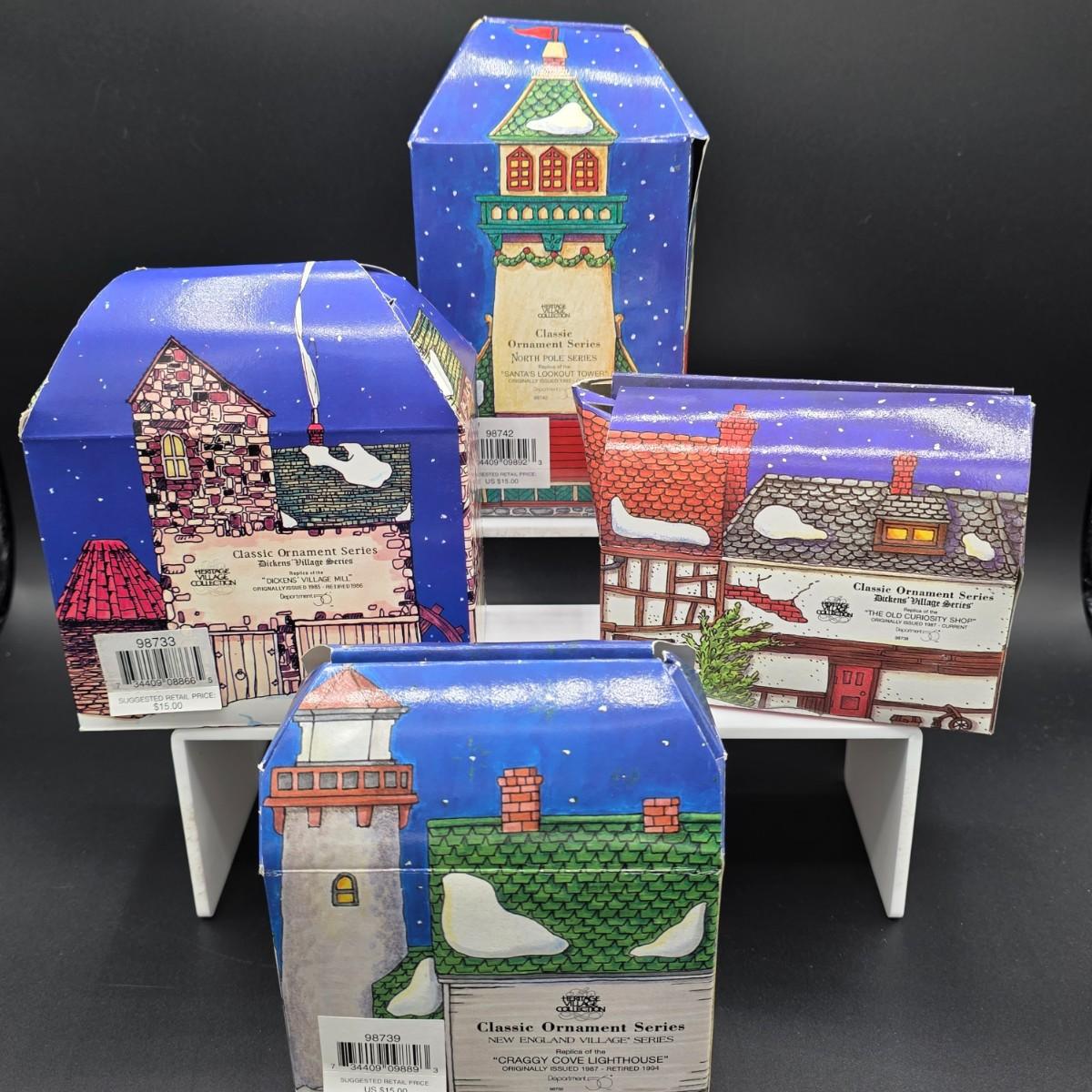 LOT 62: Dept. 56, 4 Classic Ornament Series, Dicken's Village, & North Pole Series, With Original Boxes/Packaging