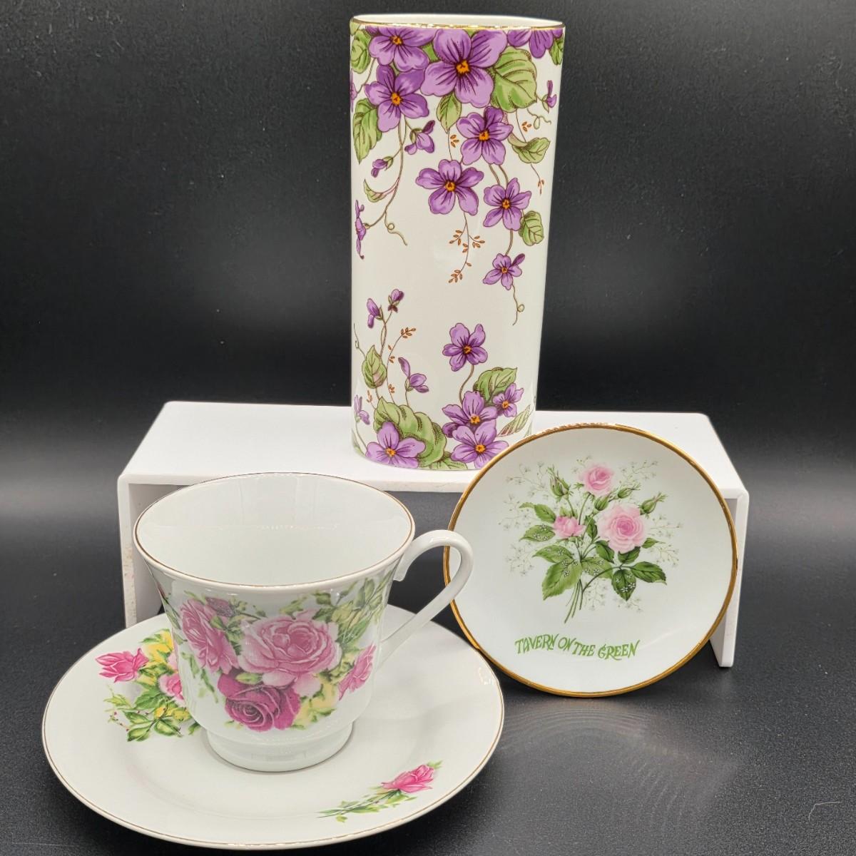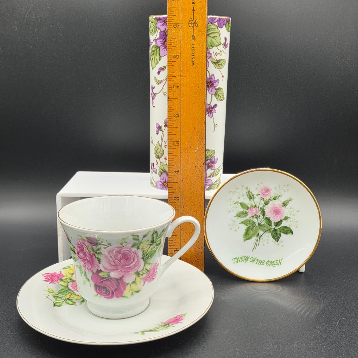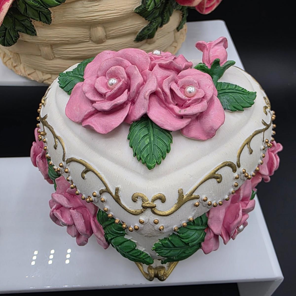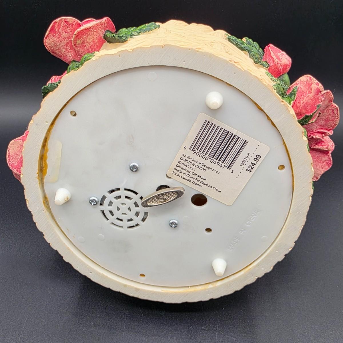 LOT 64: Darling Collection of Vintage Precious Moments, Figurines, Mugs, Lefton Vase, Small Tavern on The Green Porcelain Plate, Heart & Rose Themed Clock, Music Box & More