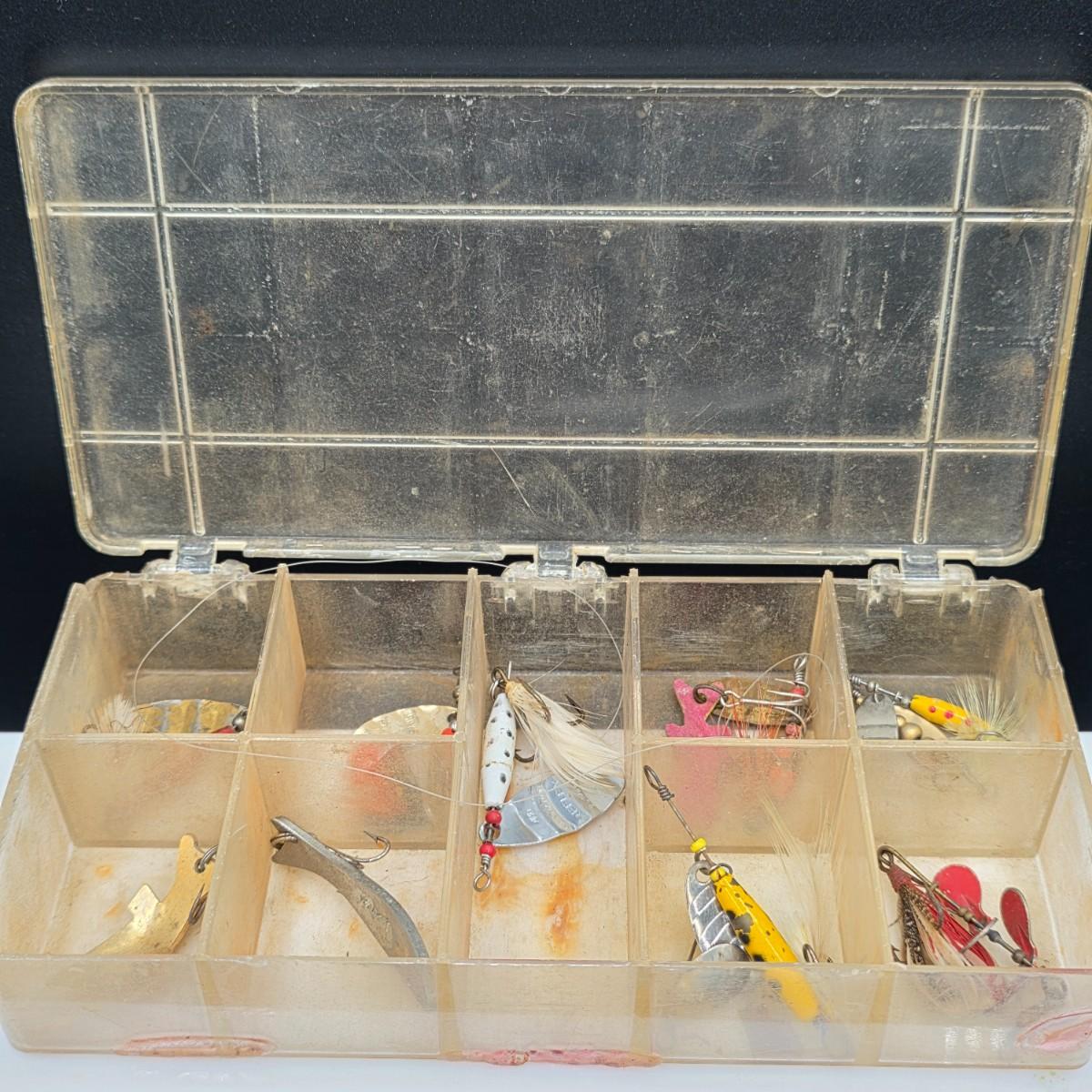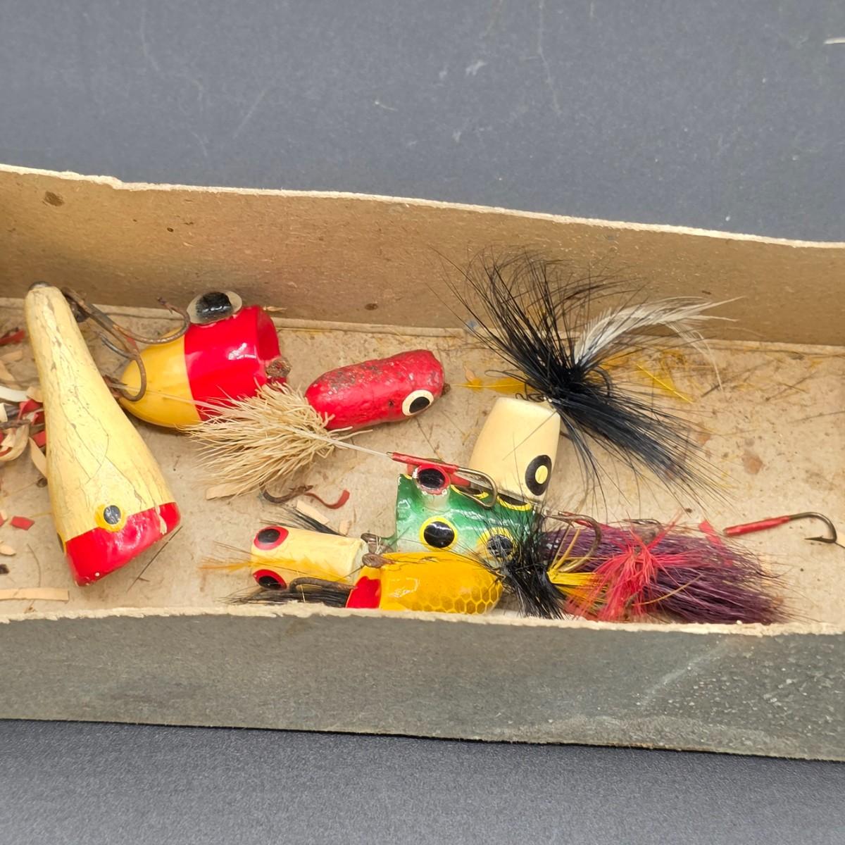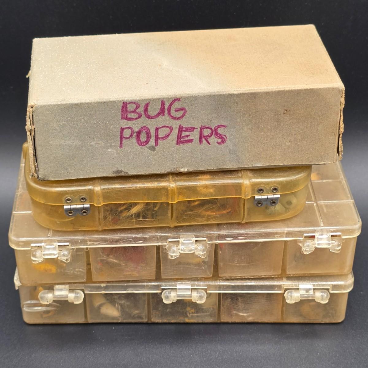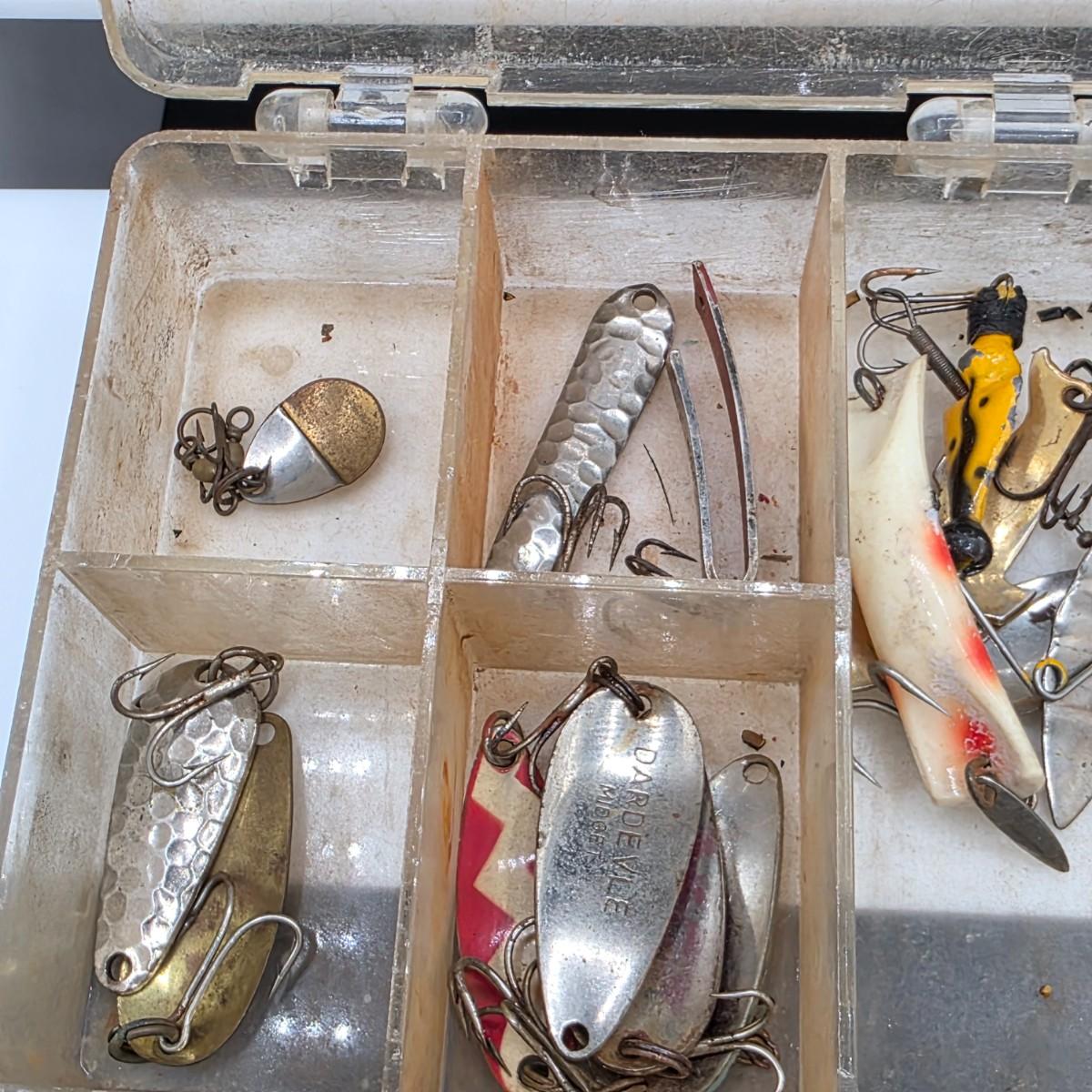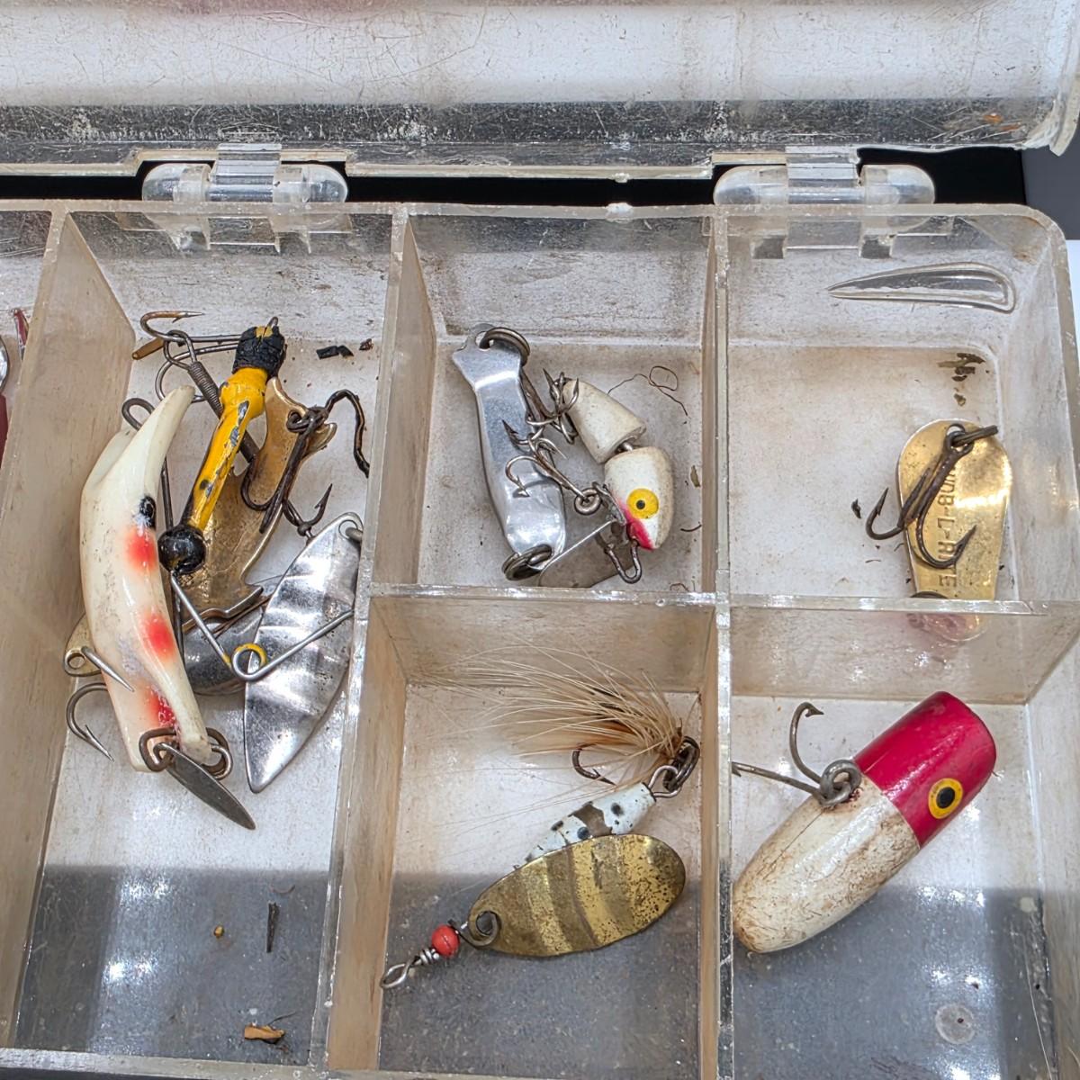 LOT 67: 3 Vintage Plastic Tackle Boxes Containing Assorted Fishing Lures & A Box of Topwater Lures