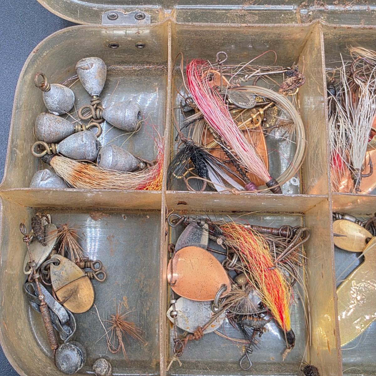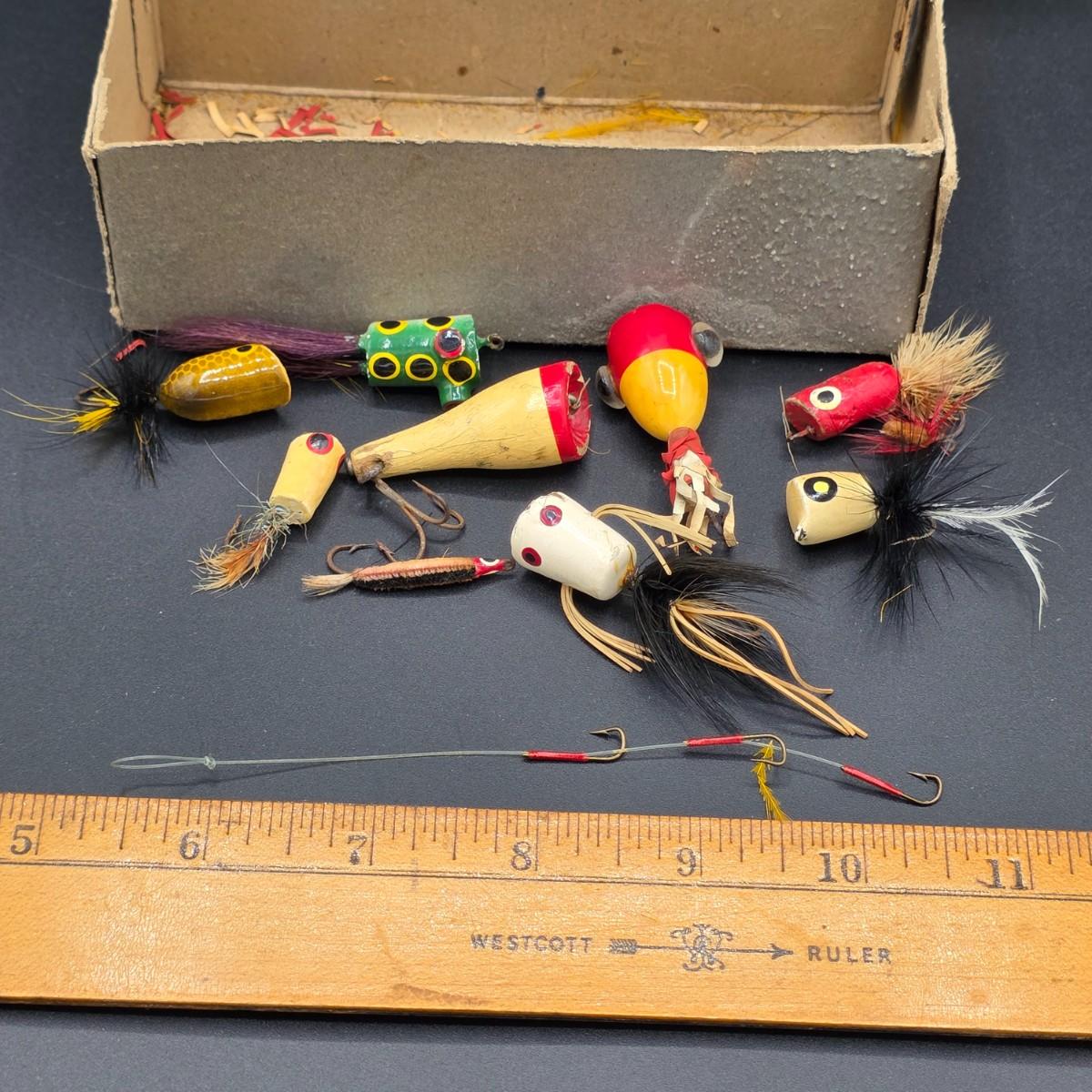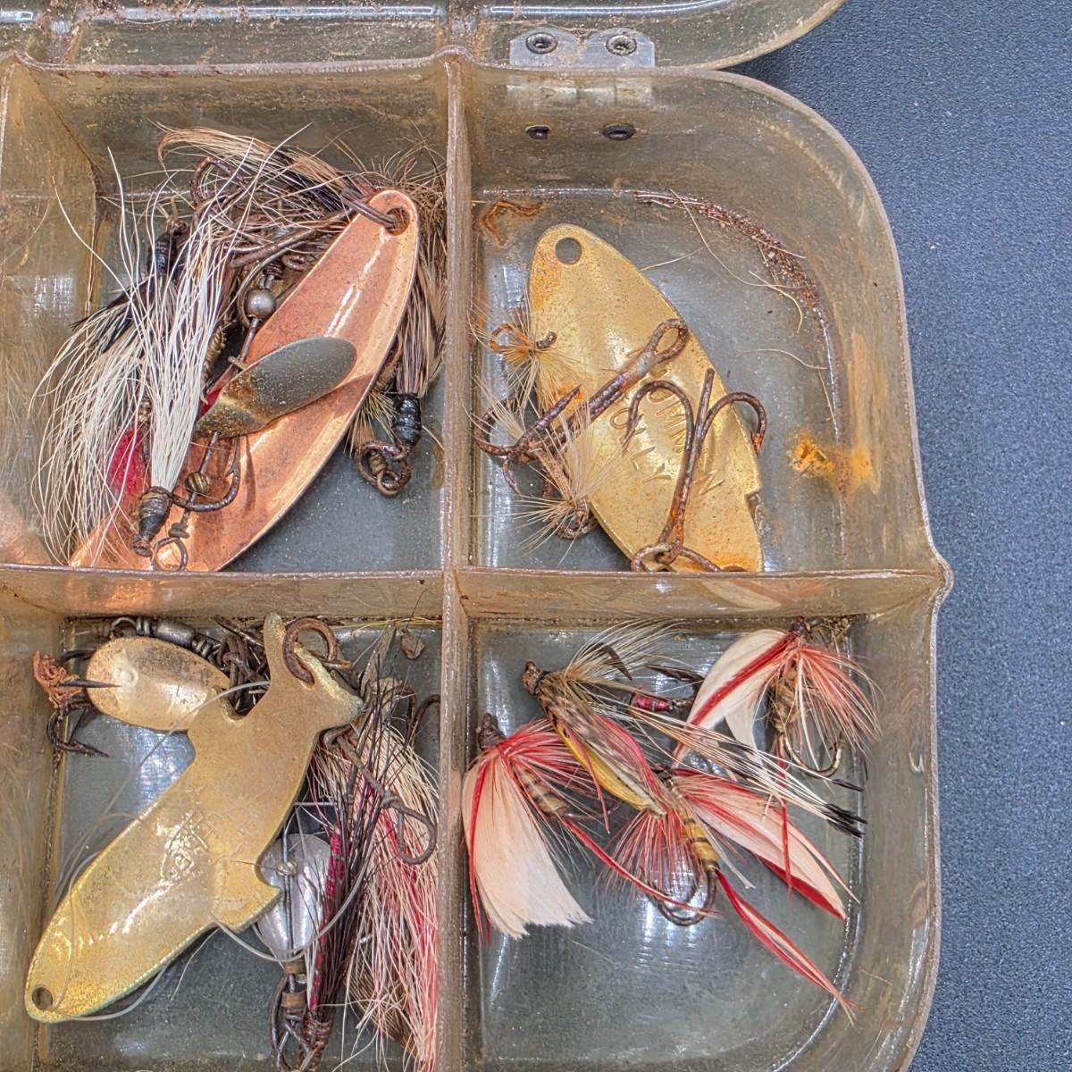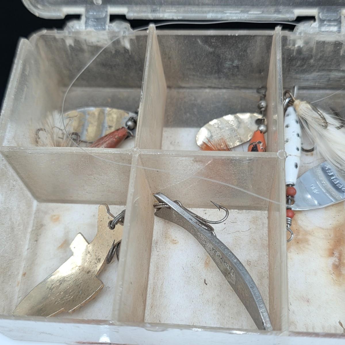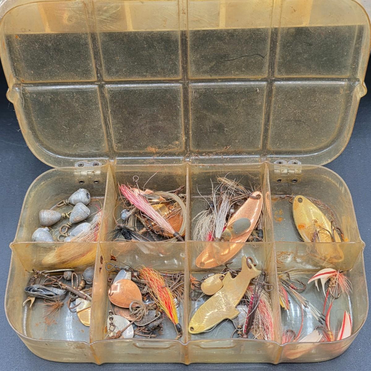 LOT 67: 3 Vintage Plastic Tackle Boxes Containing Assorted Fishing Lures & A Box of Topwater Lures
