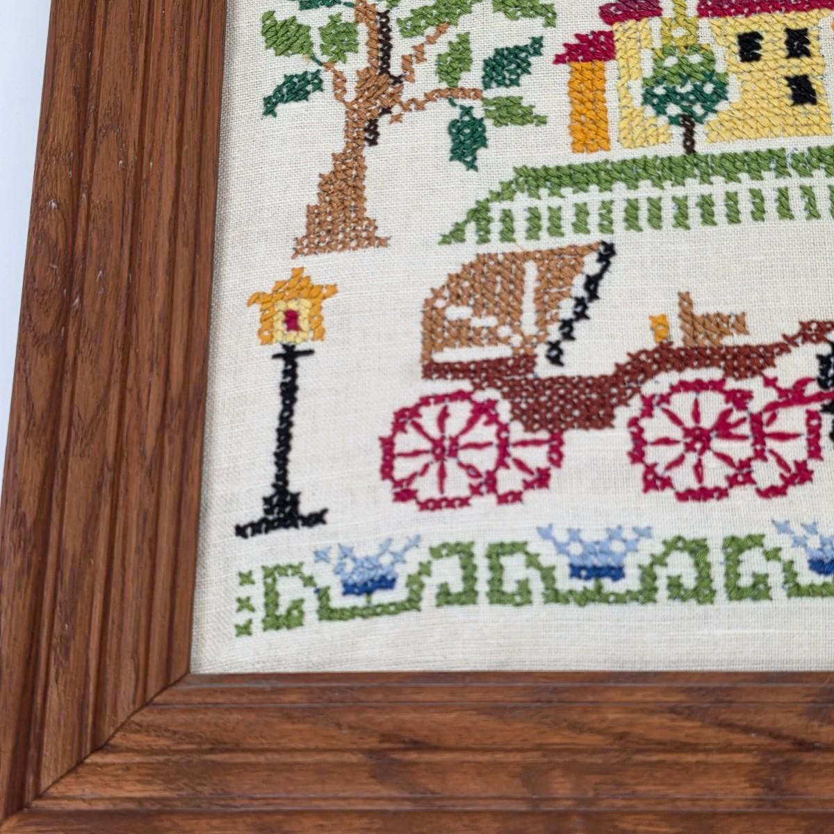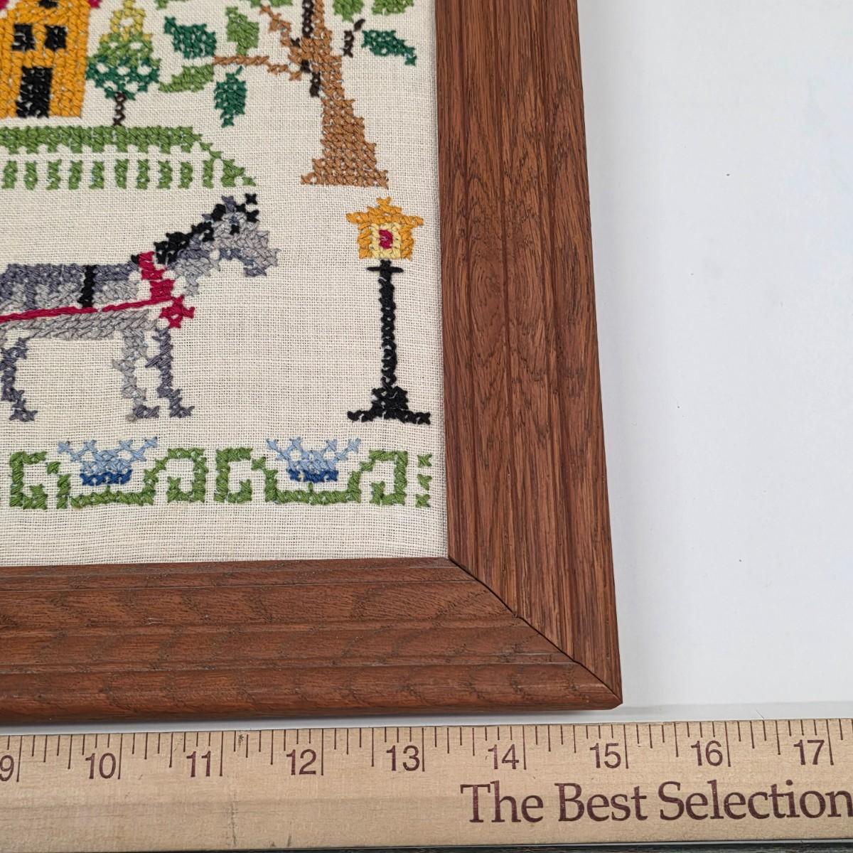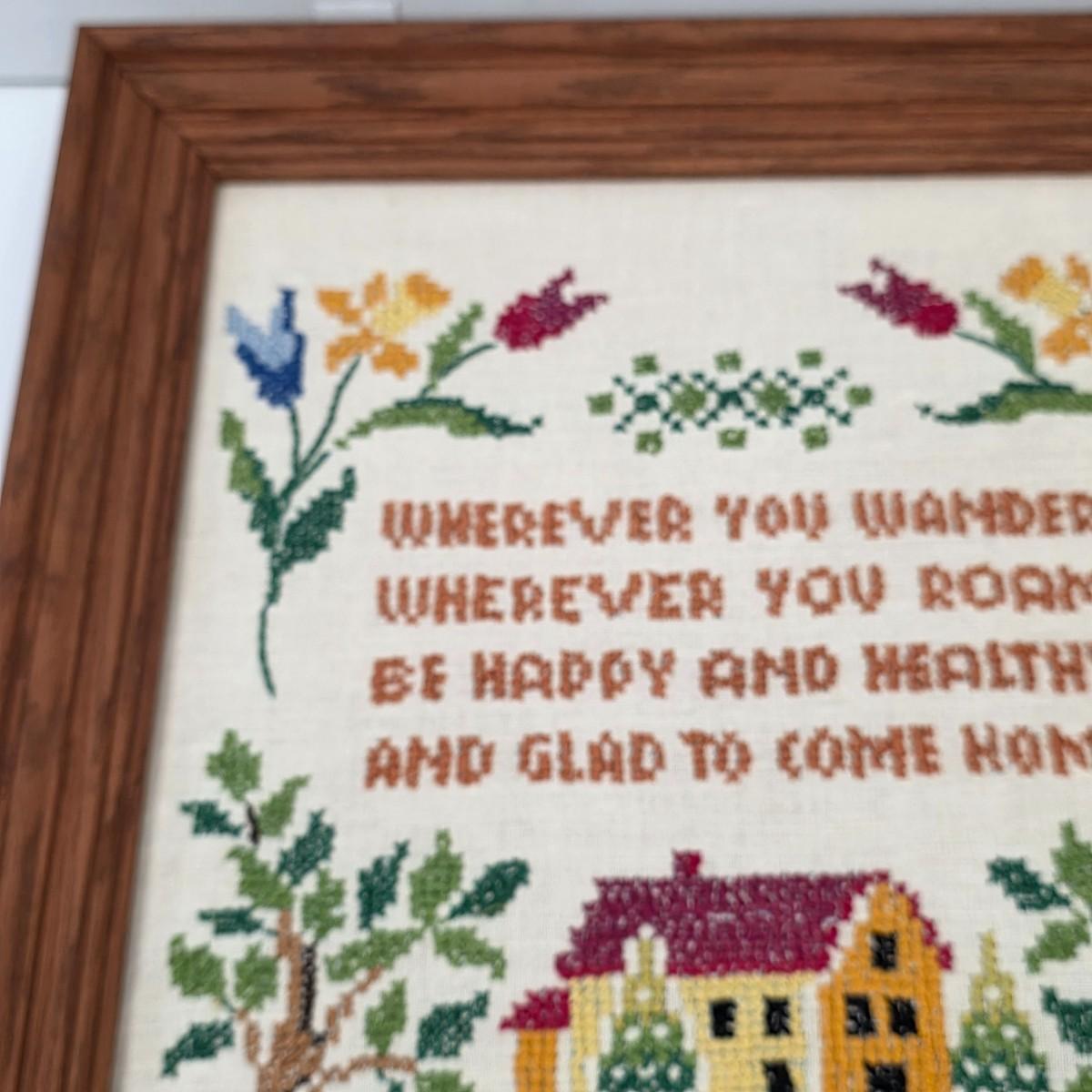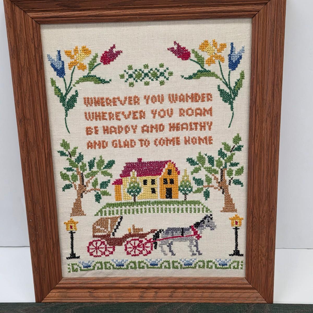 LOT 75: Vintage Cross-Stitch Sampler "Glad to Come Home" With Framed Vegetable Print