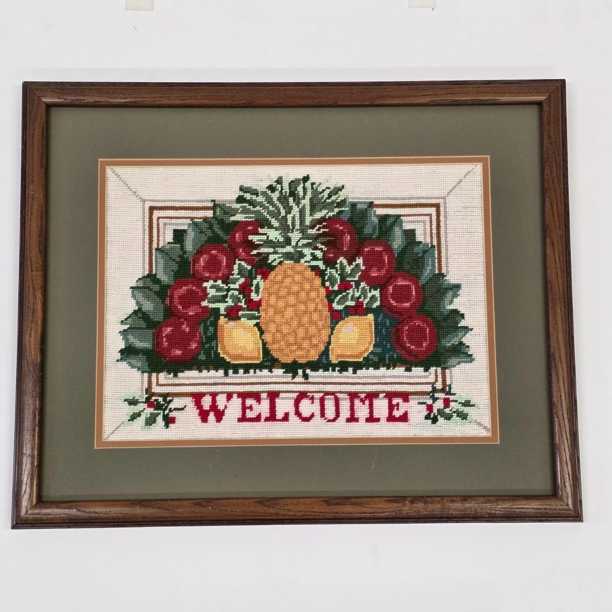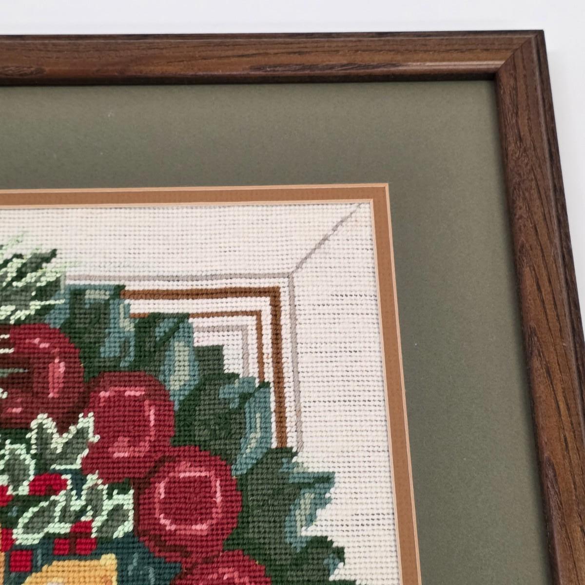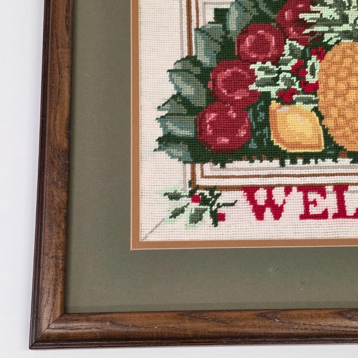 LOT 76: Vintage Williamsburg Needlepoint Framed Needle Treasure With Framed Fruit Prints