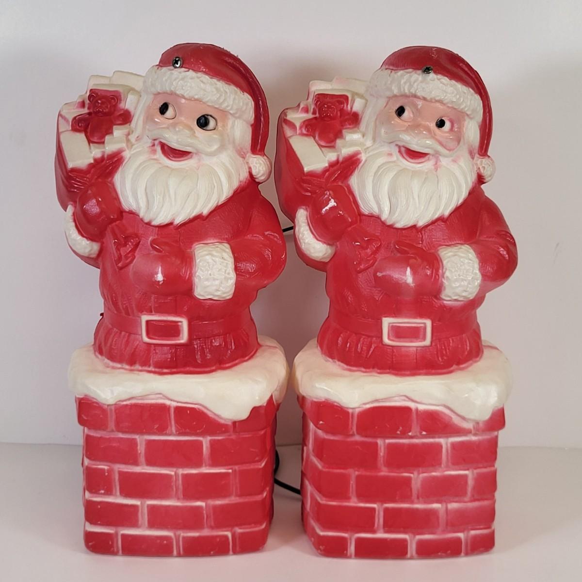 LOT 83: Pair of Vintage Santa Clause Blow Mold Decorations