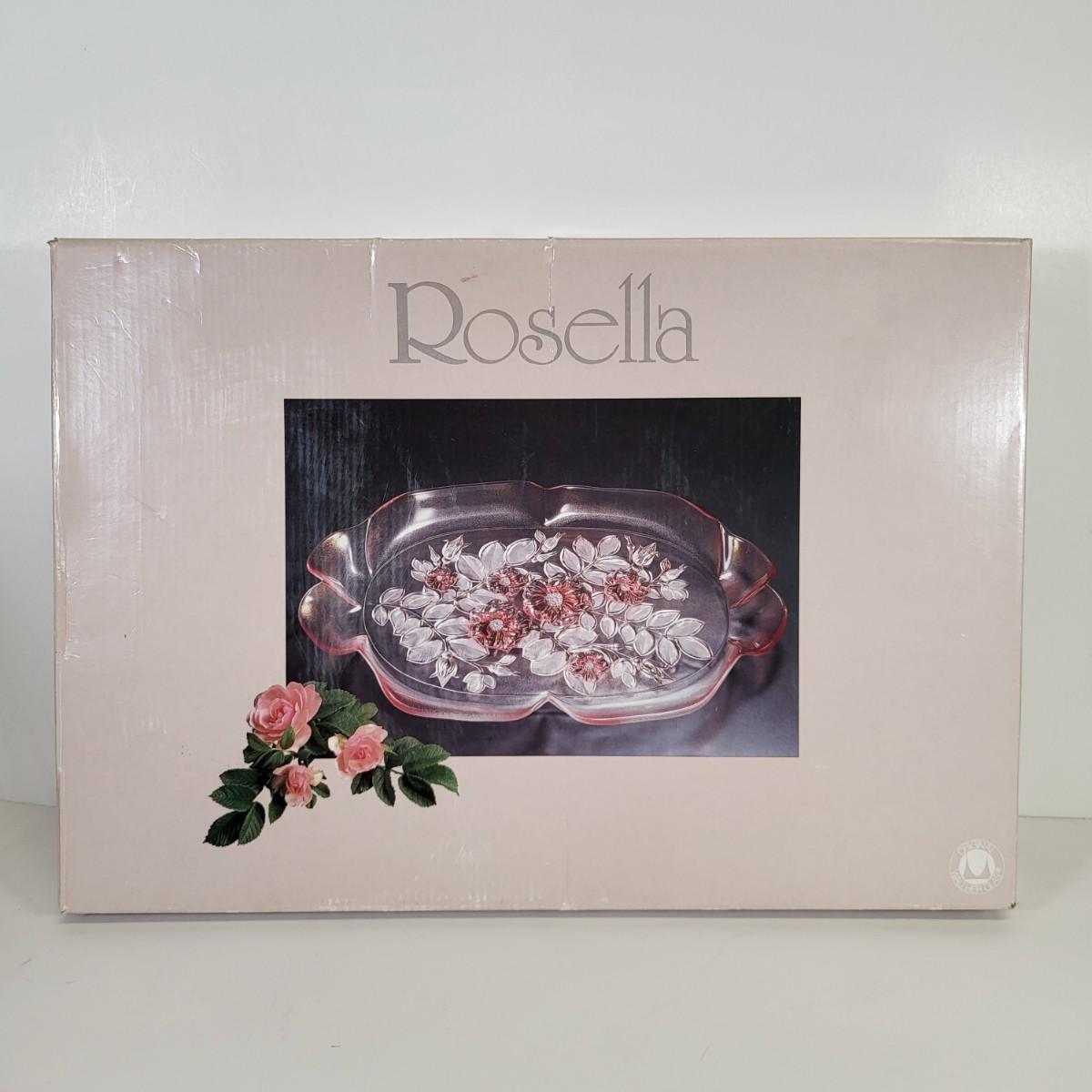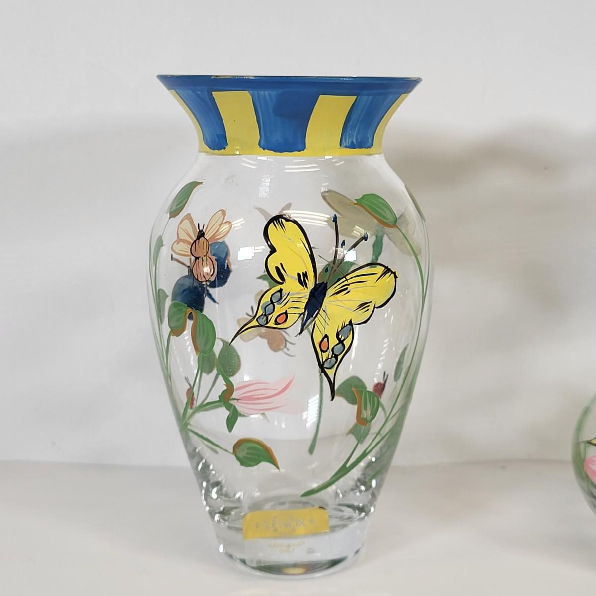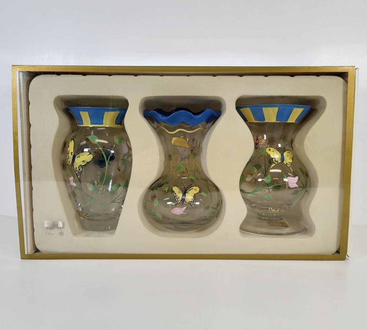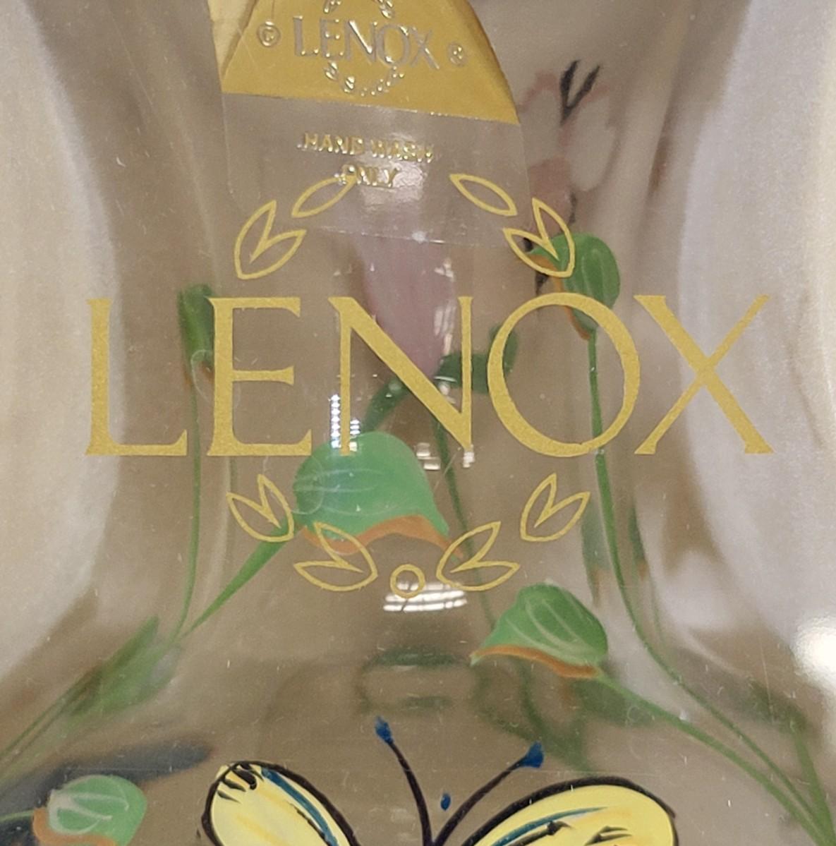LOT 86: Pink Flowered Cake Tray with Three Lenox Hand Painted Vases and Three Assorted Hand Blown Vases