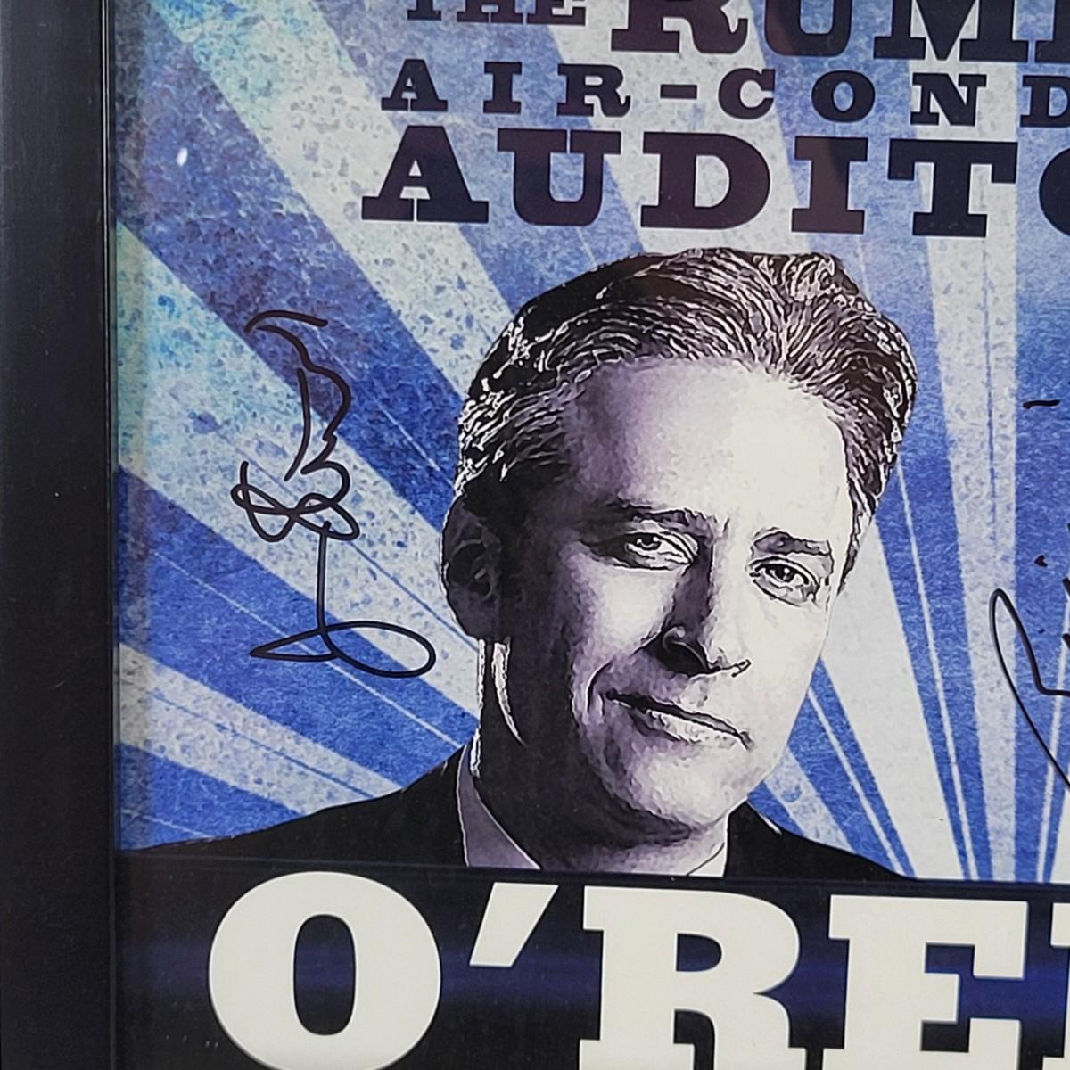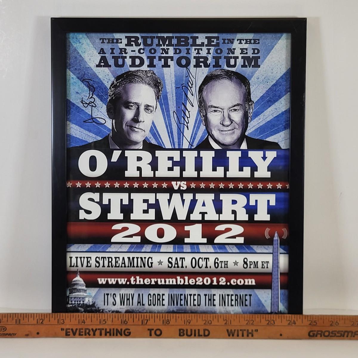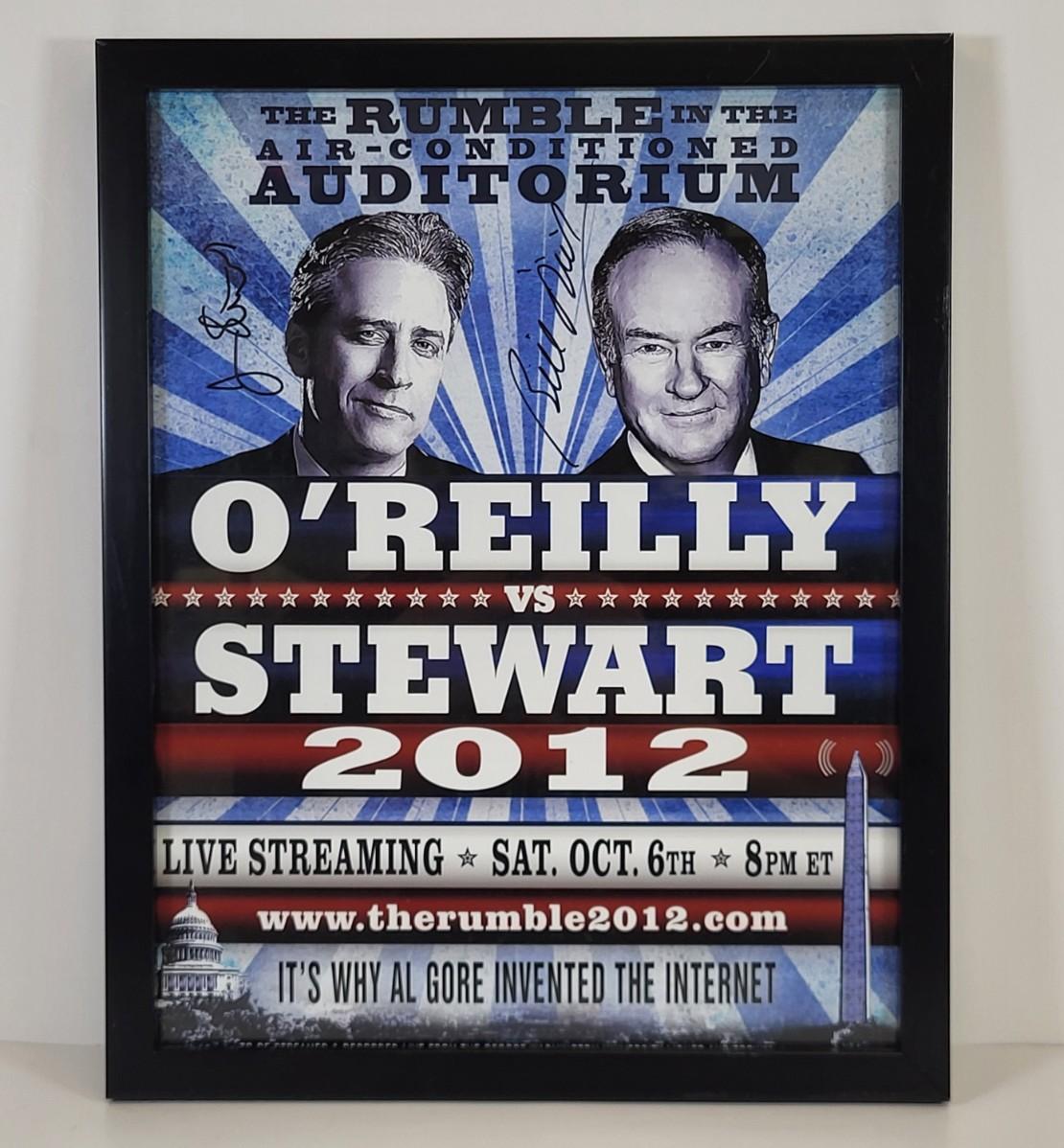 LOT 87: Autographed Framed "The Rumble in the Air-Conditioned Auditorium" Poster Autographed by Jon Stewart and Bill O'Reilly