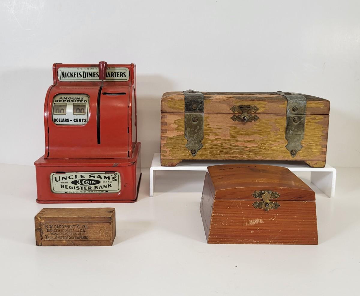 LOT 93: Diverse Vintage Lot of Jewelry Boxes and Register
