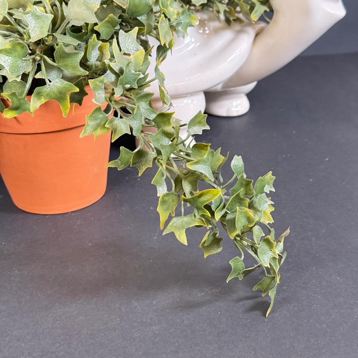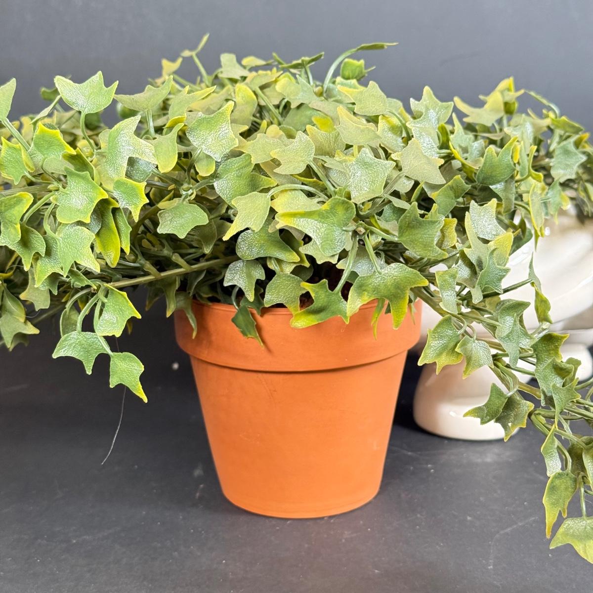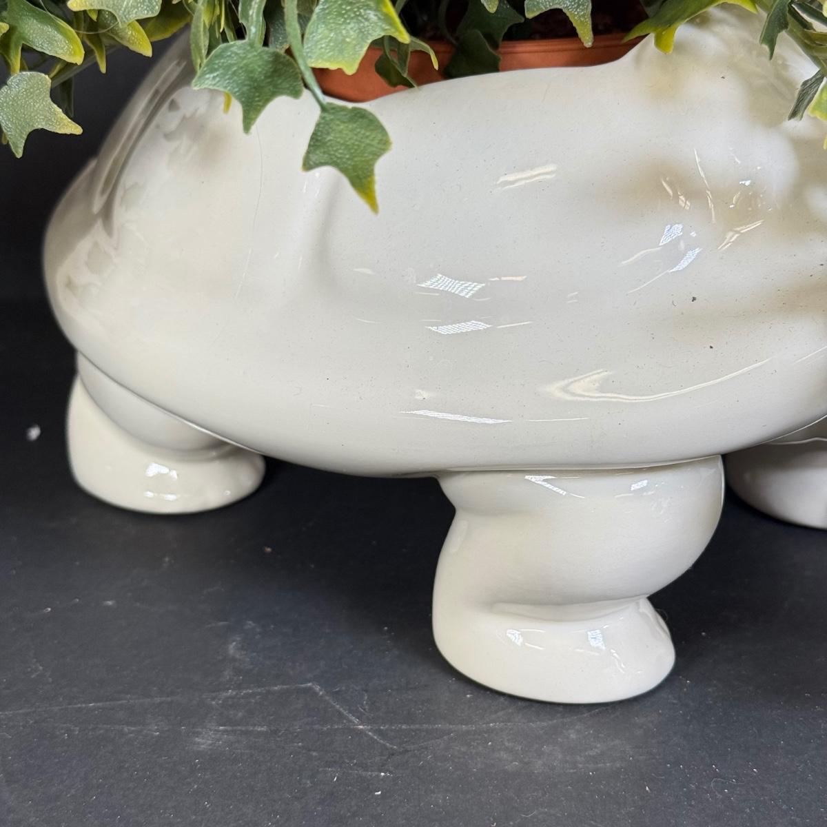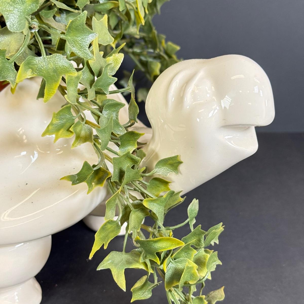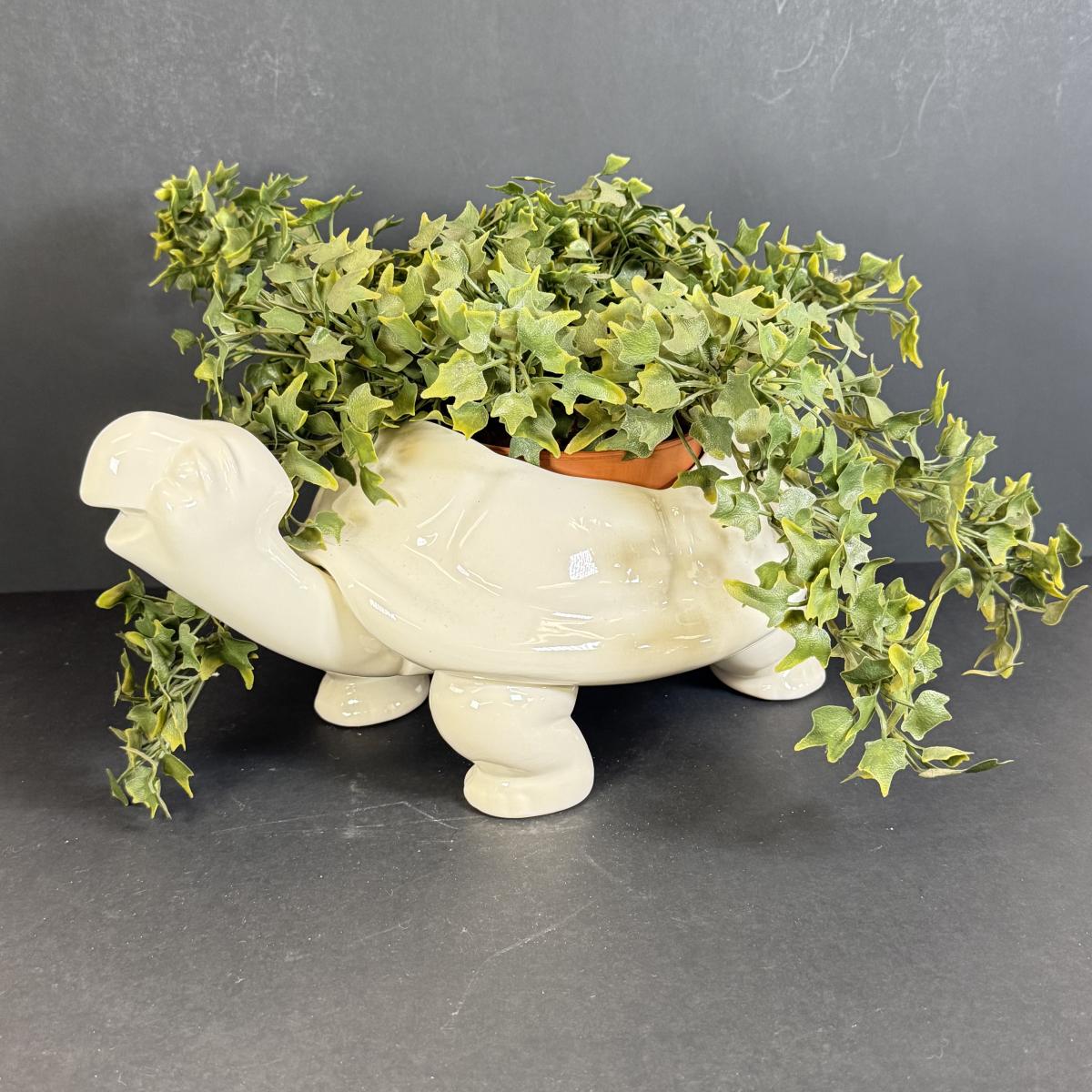 LOT 109: White Ceramic Turtle Planter w/ Faux Ivy in Terra Cotta Pot