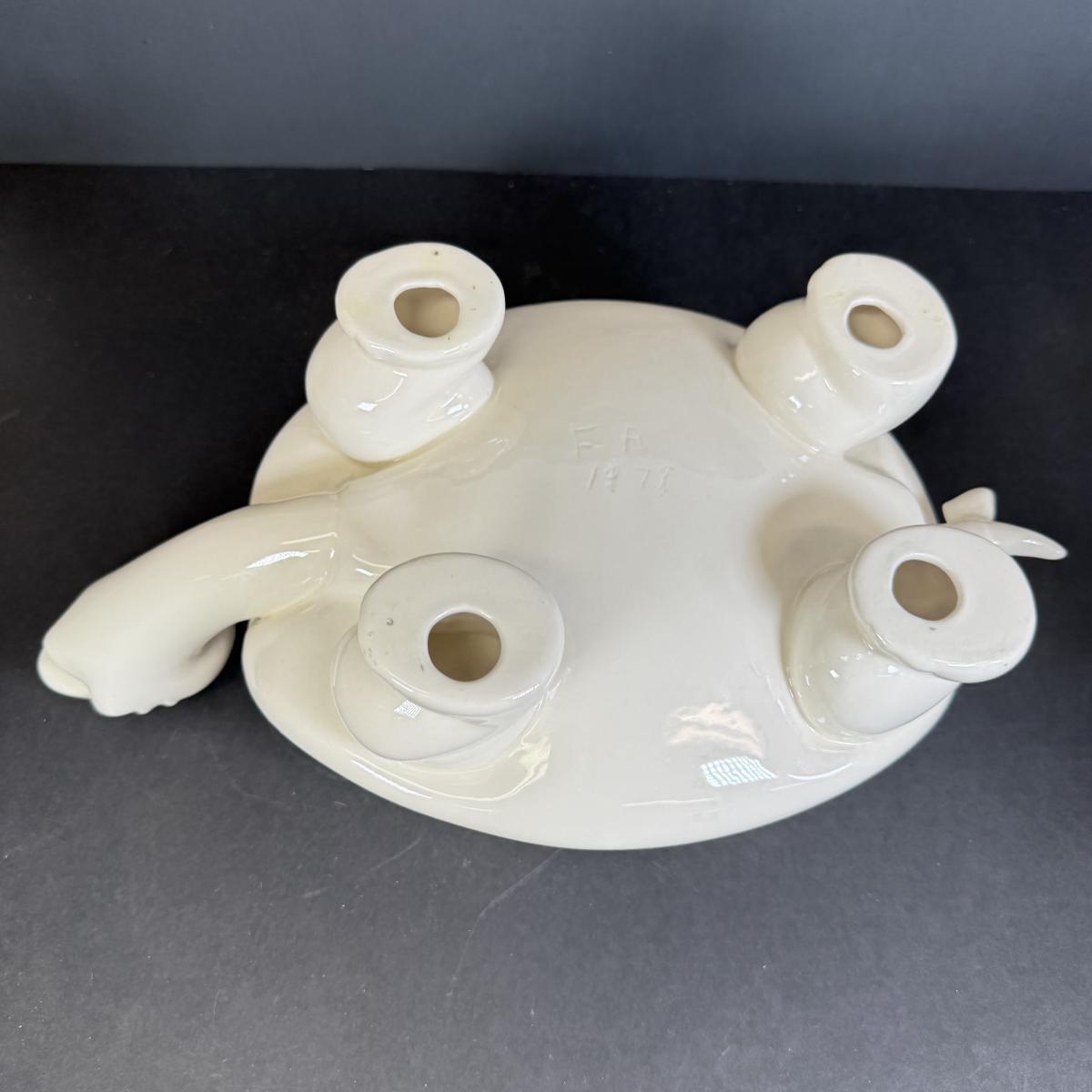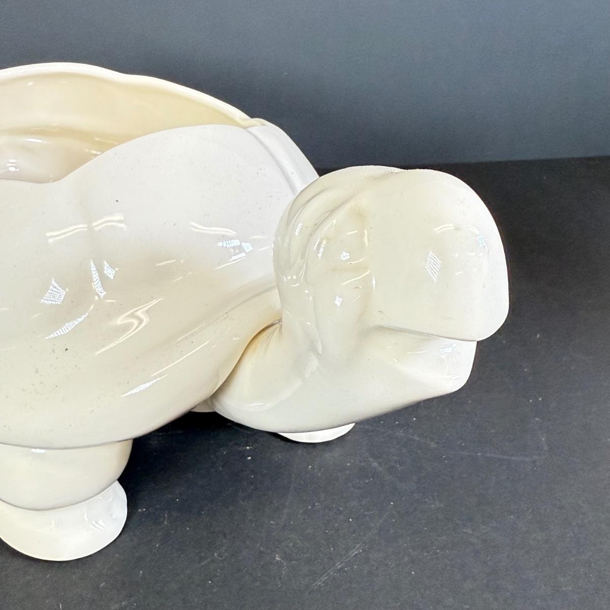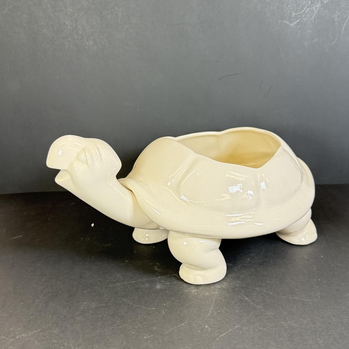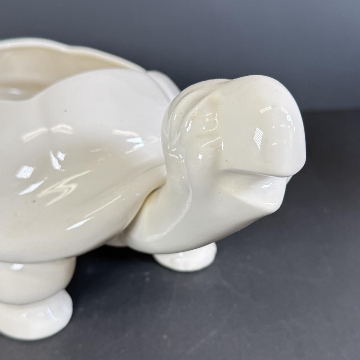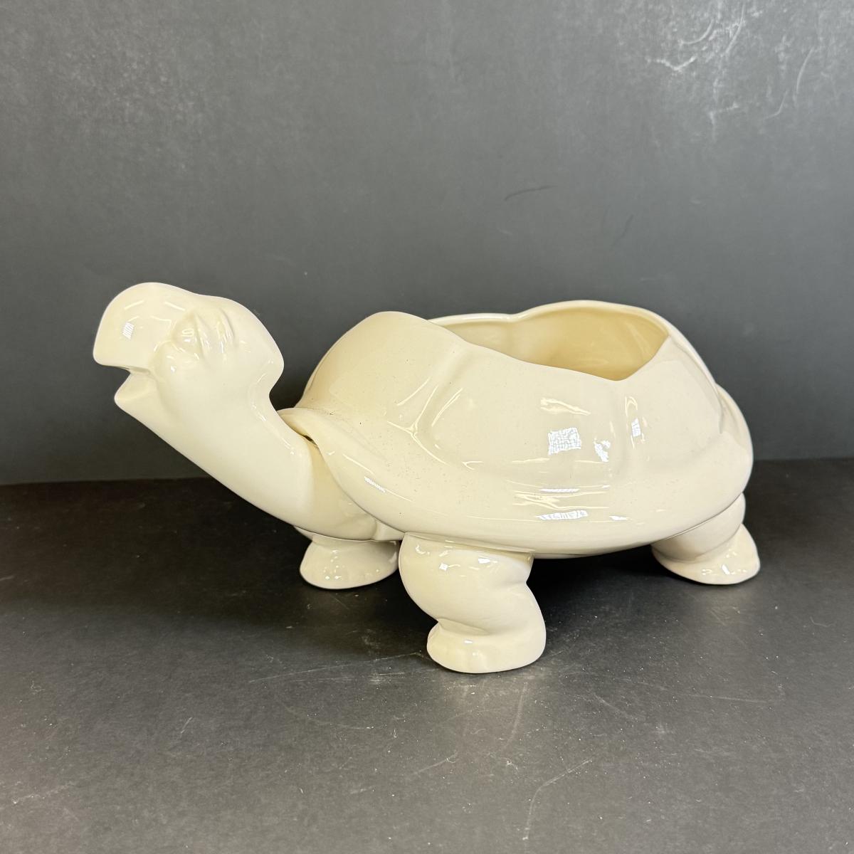 LOT 109: White Ceramic Turtle Planter w/ Faux Ivy in Terra Cotta Pot