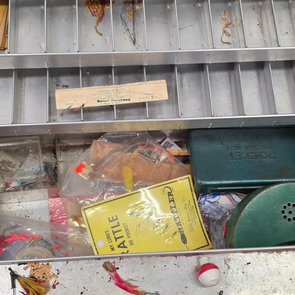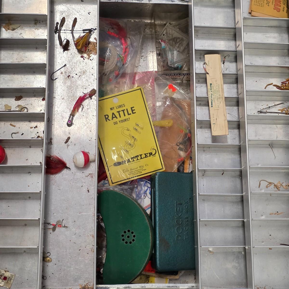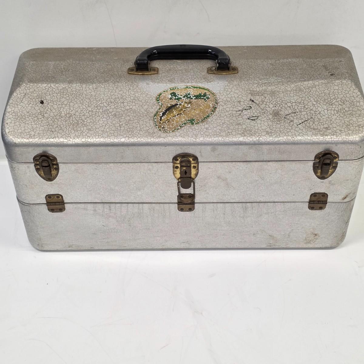LOT 165: Vintage Dremel Variable Speed Rotary Tool W/Metal Tackle Box Containing Fishing Lures/Accessories