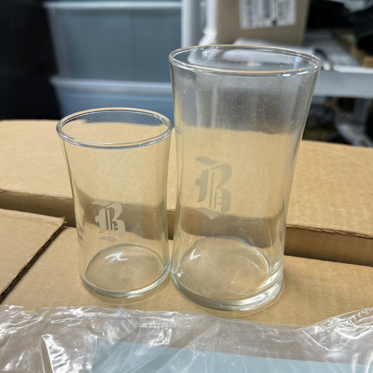 LOT 184: “B” Monogramed Glasses NIB - 8 of each