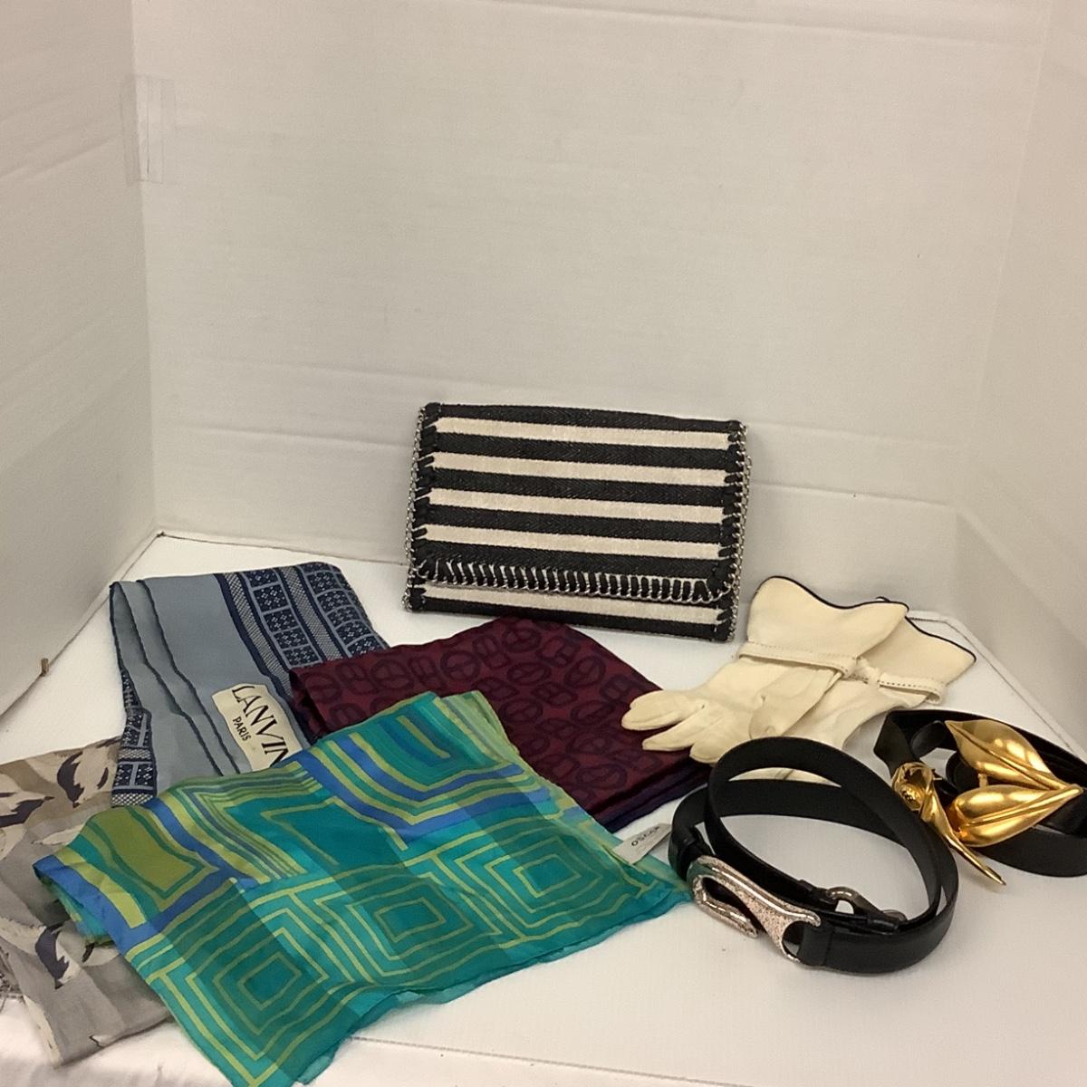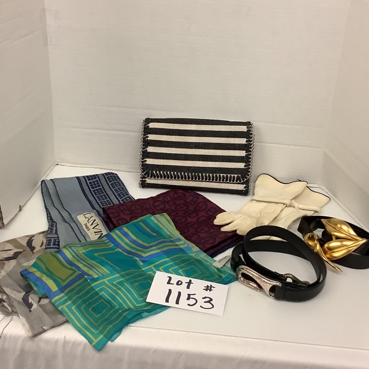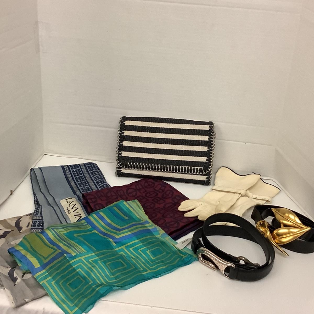 Lot 1153  Vintage Silk Scarves ( Lanvin, Paris/Oscar del Renta )/Vintage Leather Belts/ Vintage Clutch ( Chelsea )