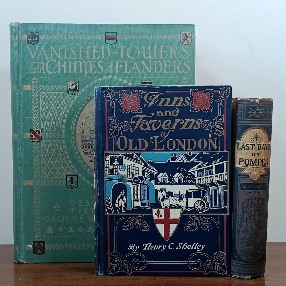 LOT 3: George Wharton Edwards' Vanished Towers and Chimes of Flanders w/ Lyttin's 1880 Illustrated Last Days of Pompeii & Shelley's Inns and Taverns of Old London 1923