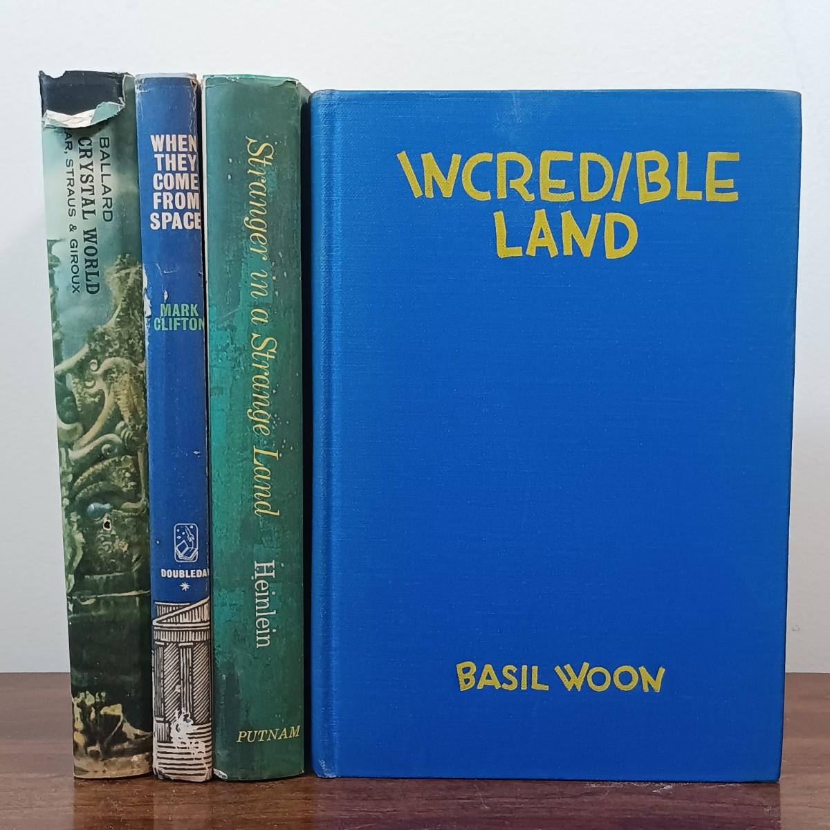 LOT 4: Incredible Land by Basil Woon 1933 w/ Heinlein's Stranger in a Strange Land 1961, When They Come From Space 1962 & The Crystal World 1966