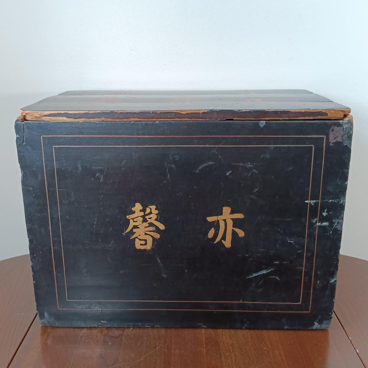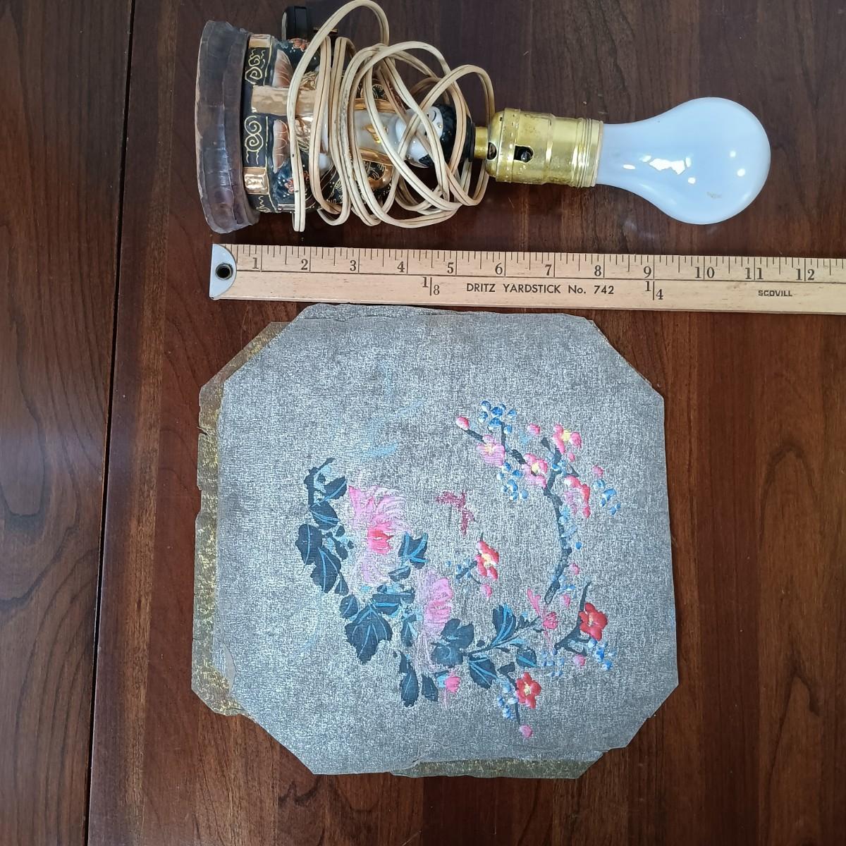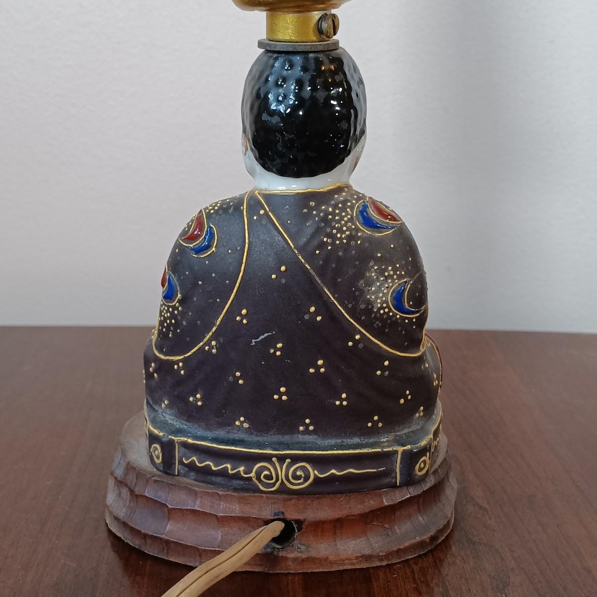 LOT 23: Vintage Lacquered Box, Satsuma-Style Buddha Lamp, Chinese Checkers Board & Framed Art
