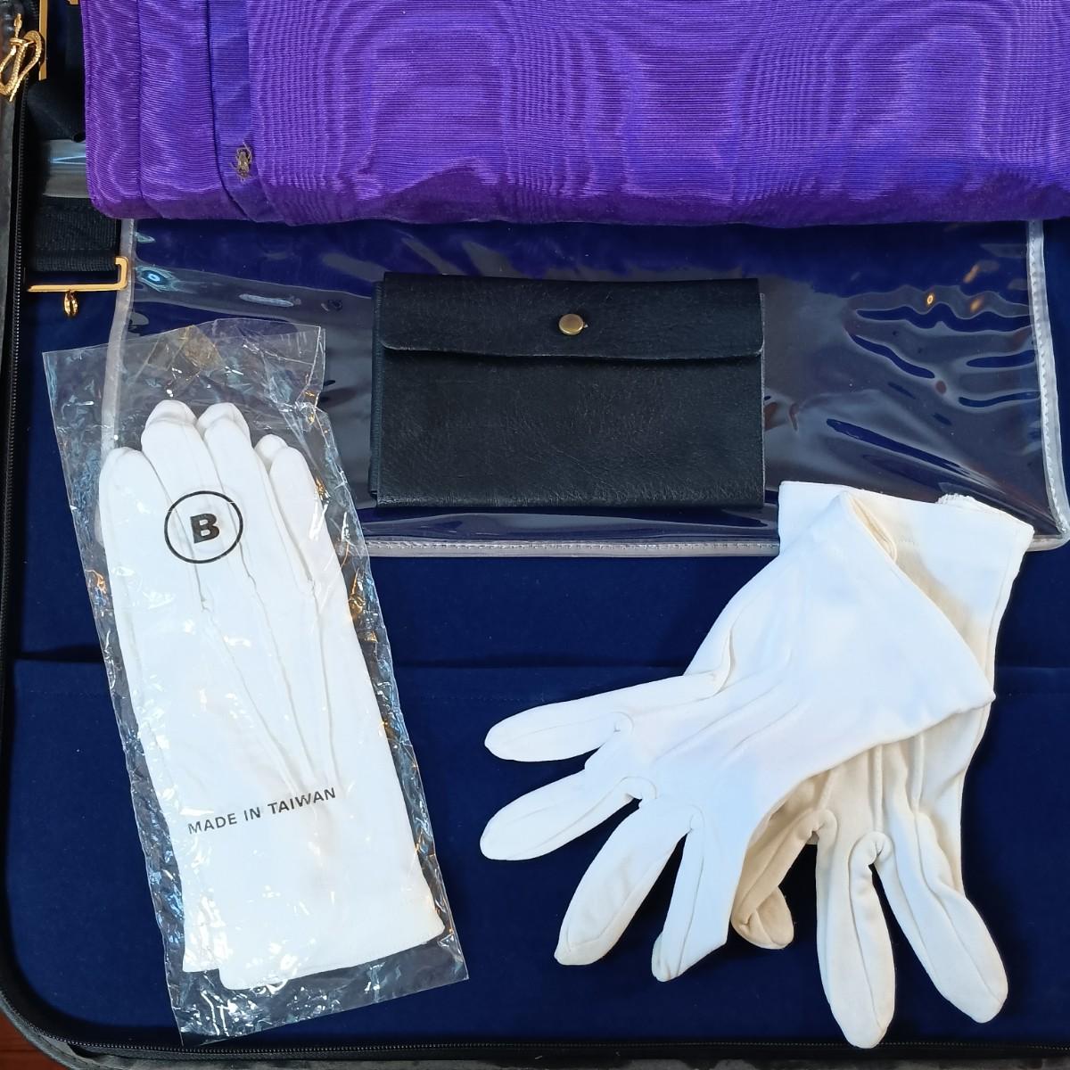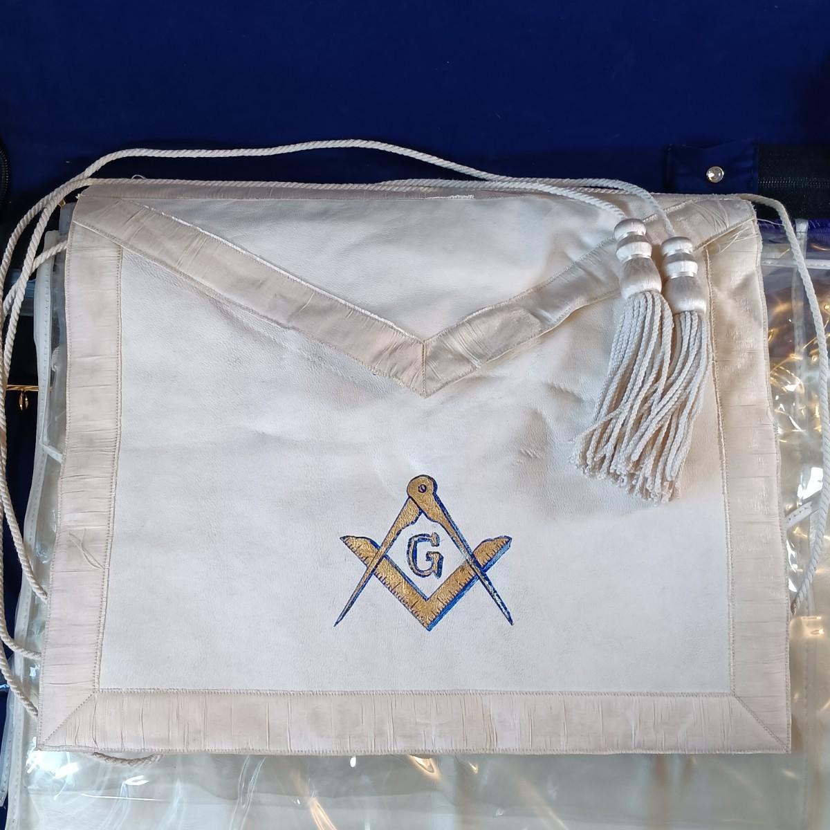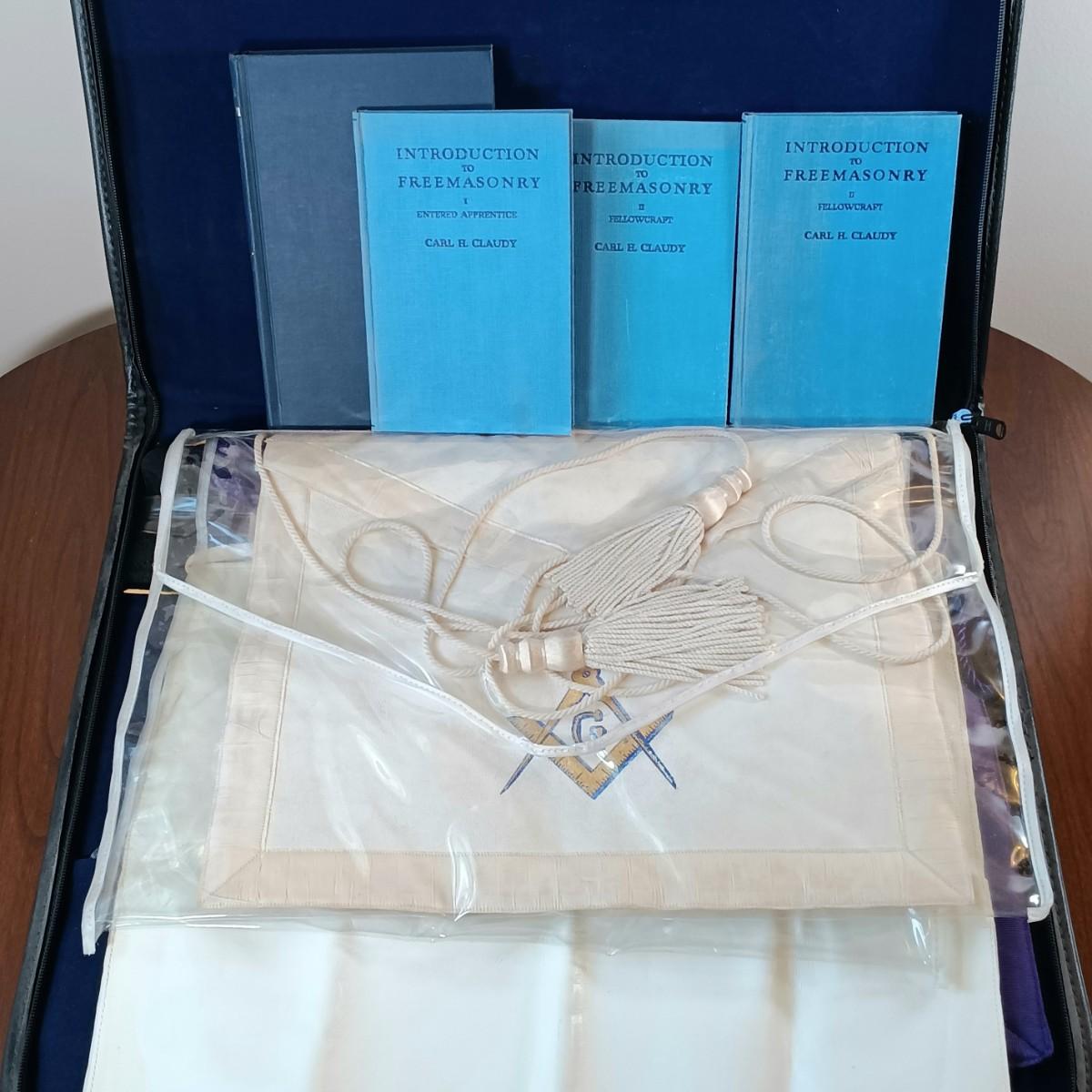 LOT 26: Masonic Freemasonry Aprons, Gloves, Belt and Books
