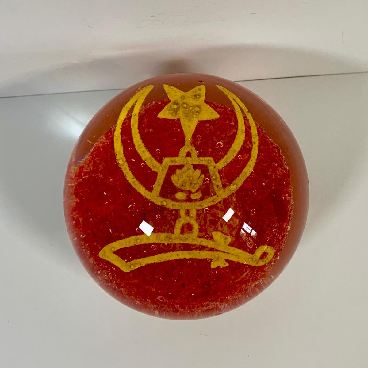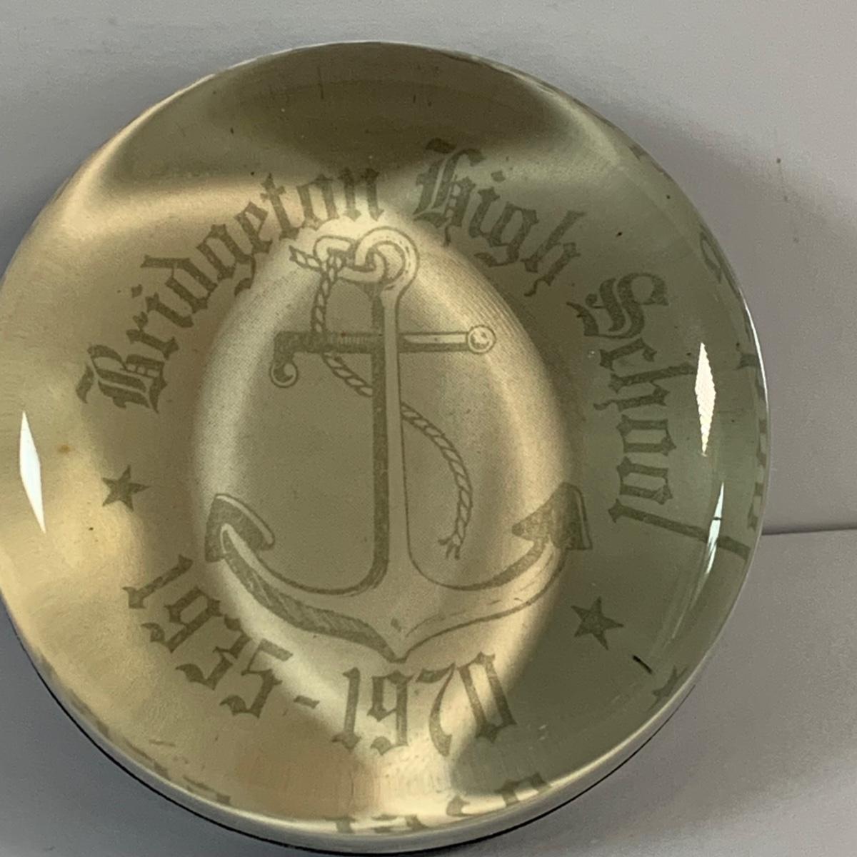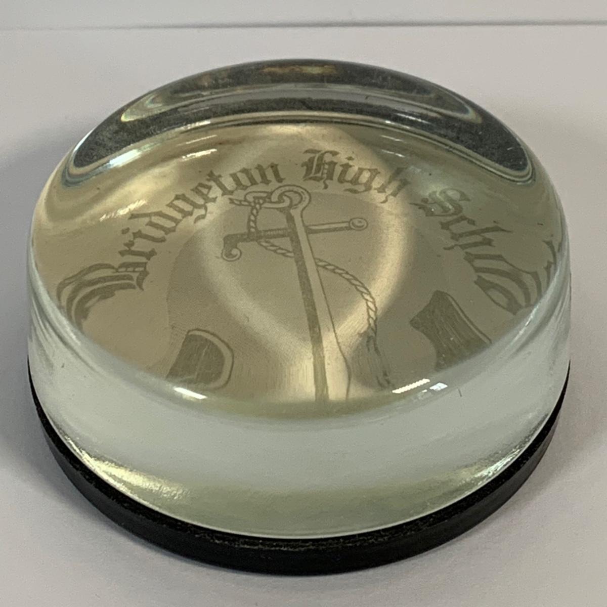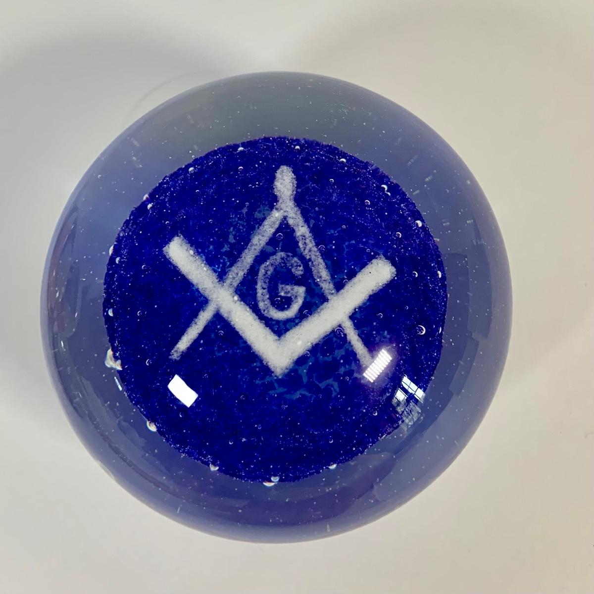LOT 32: Collection of Vintage Glass Paperweights Featuring Masonic Cobalt Blue and Orange. Bridgetown High School an More