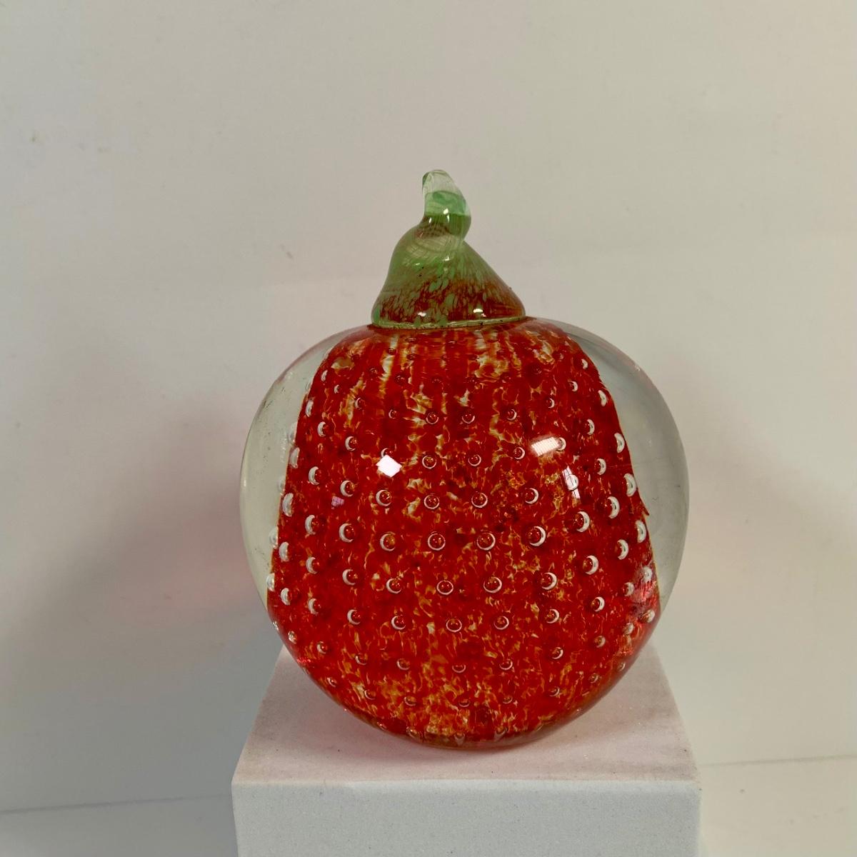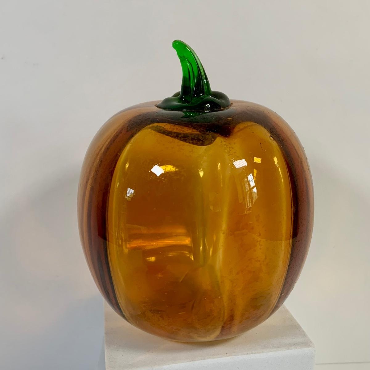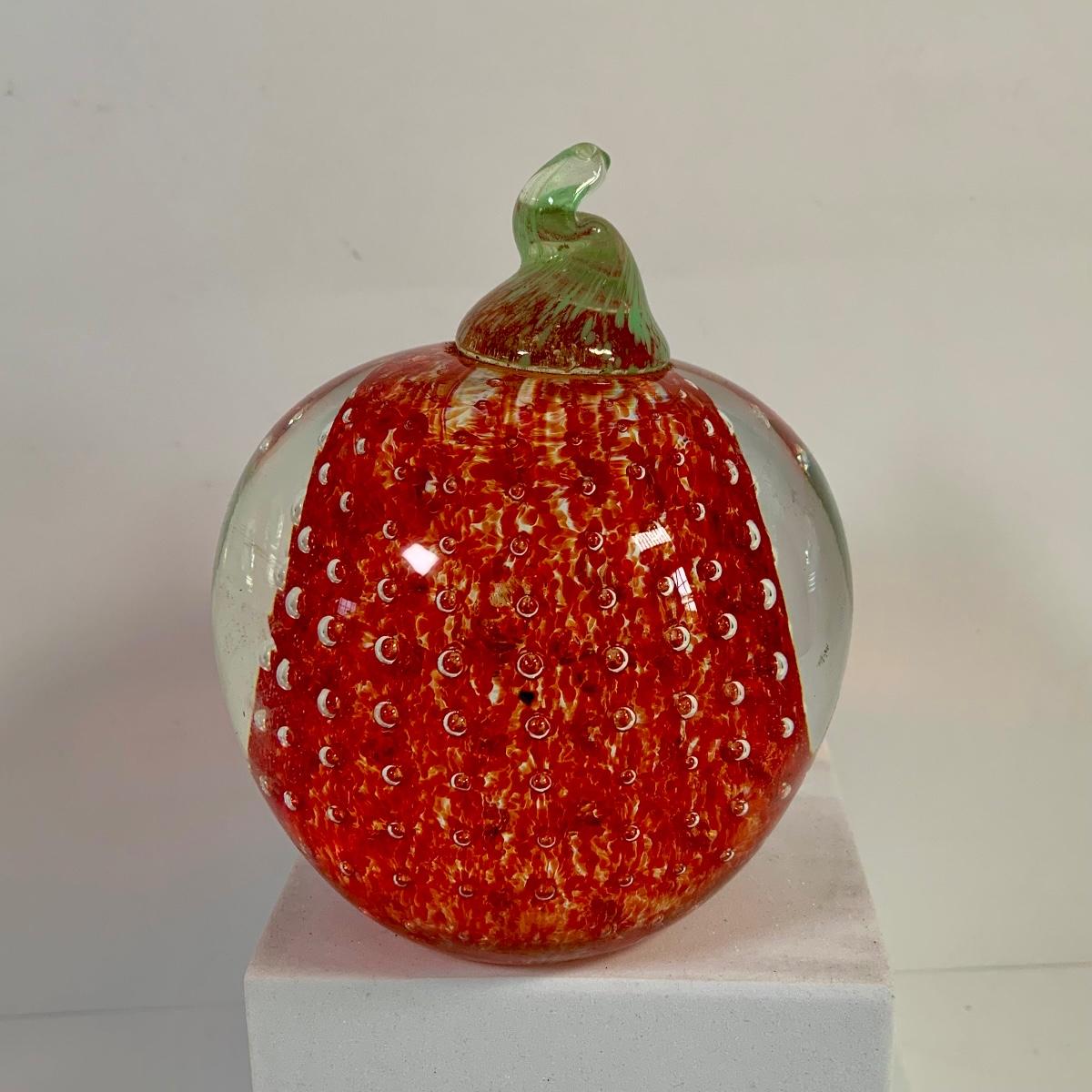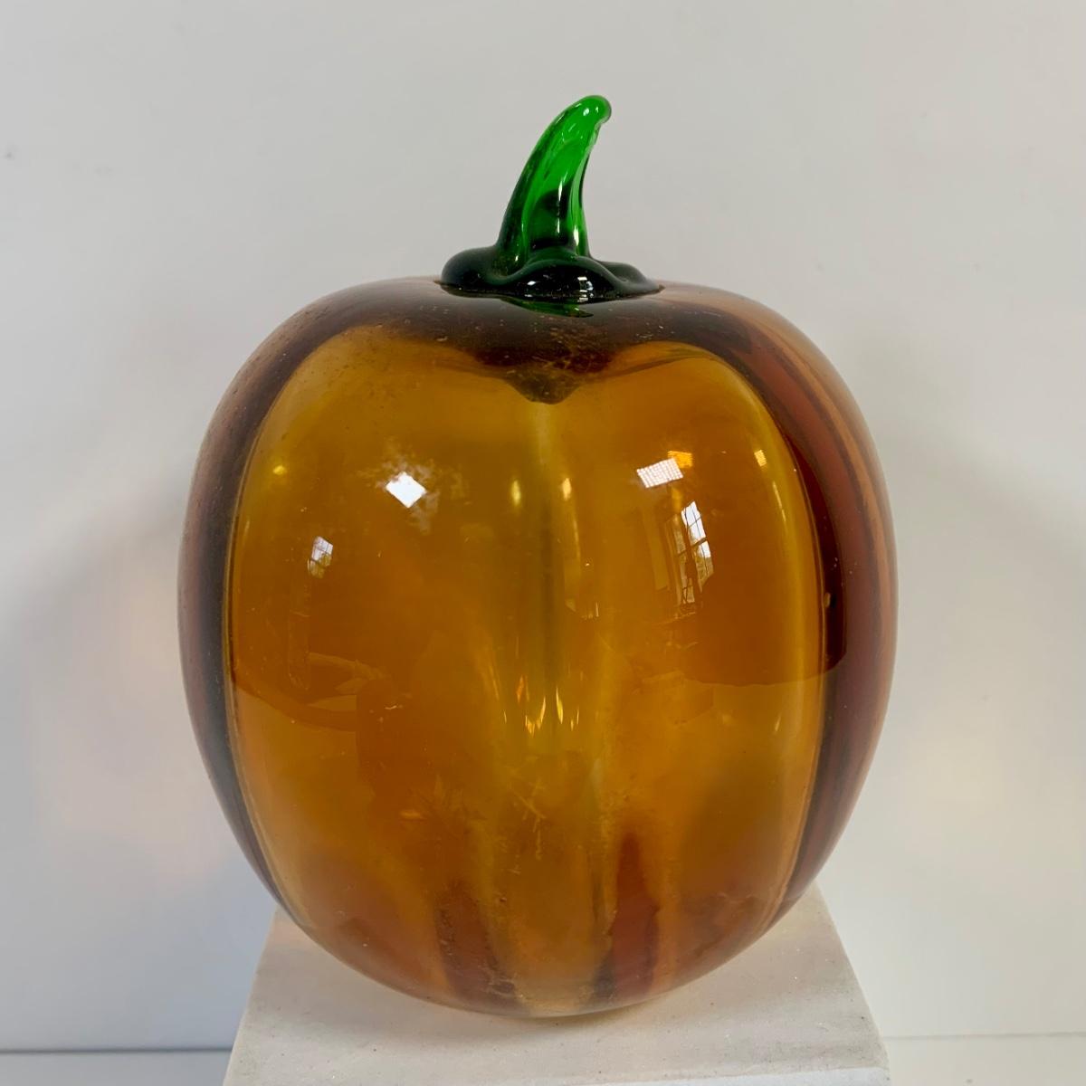 LOT 33: Alabaster Apple, Glass Pumpkin Paper Weight and Art Glass Pumpkin