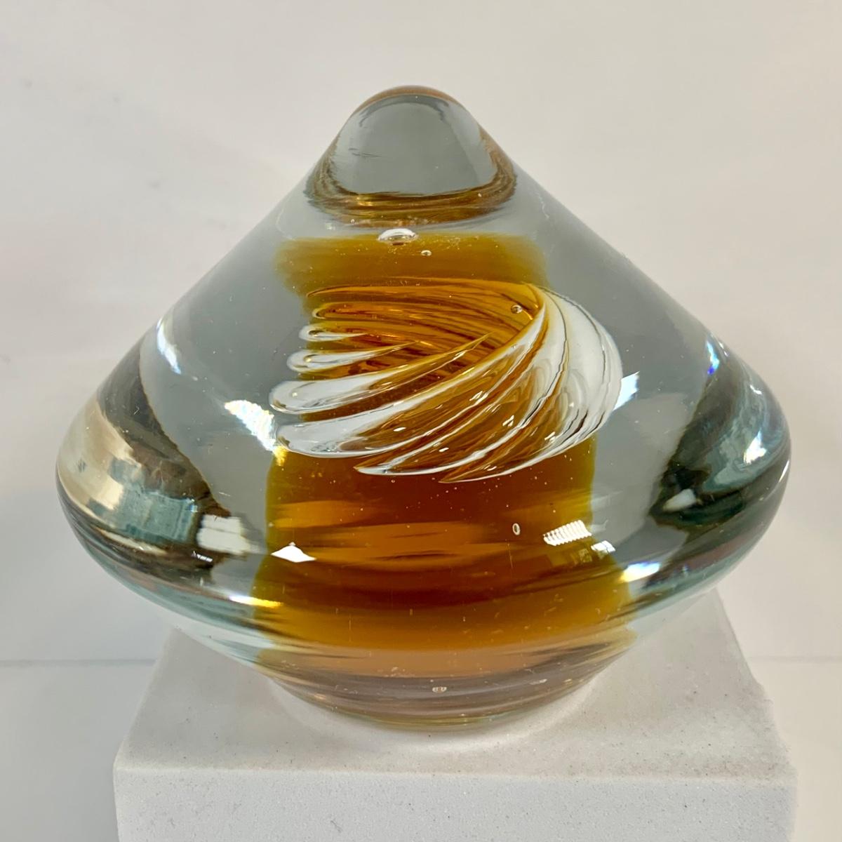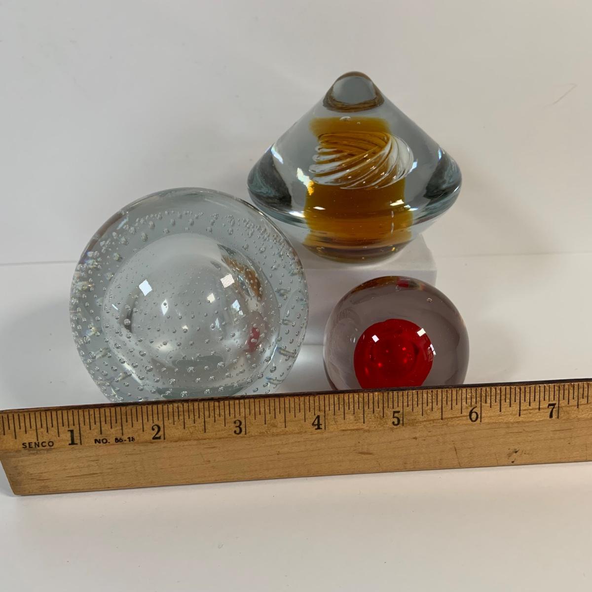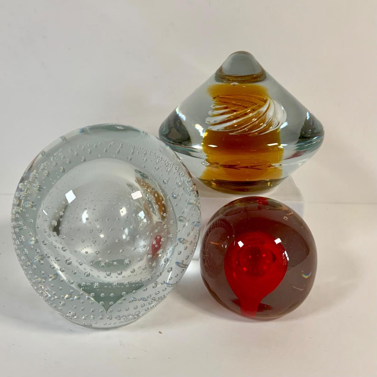 LOT 34: Beautiful Blenko Glass Cone Top Air Twist Paperweight, and Art Glass Paperweights