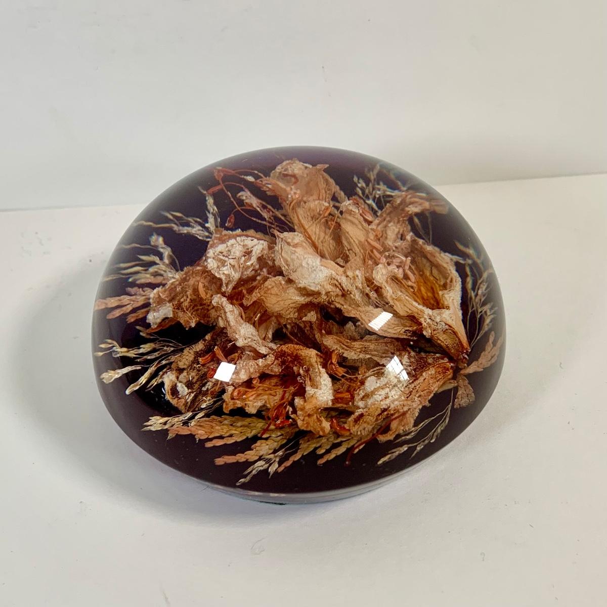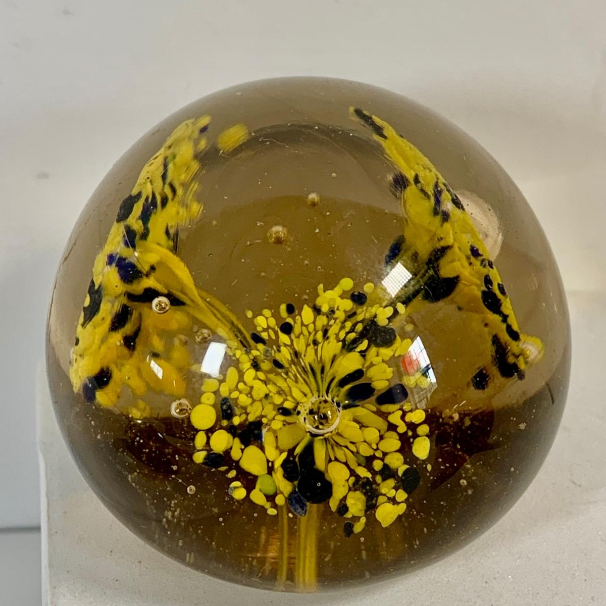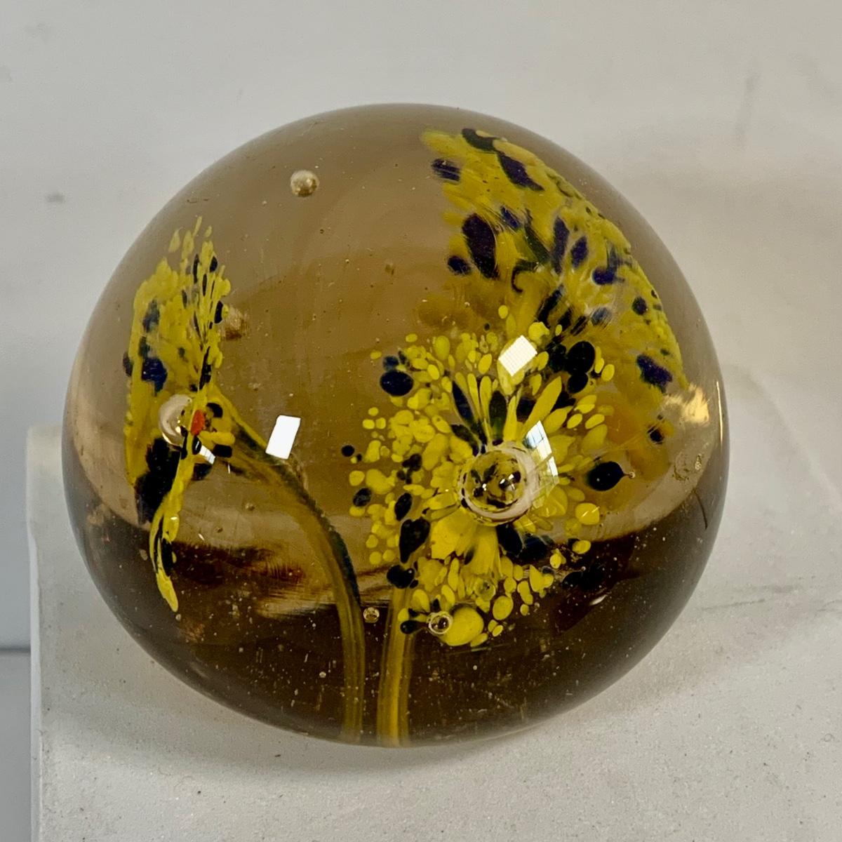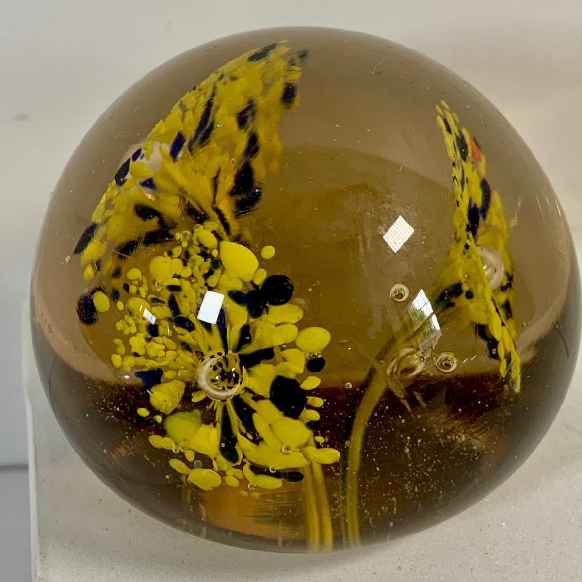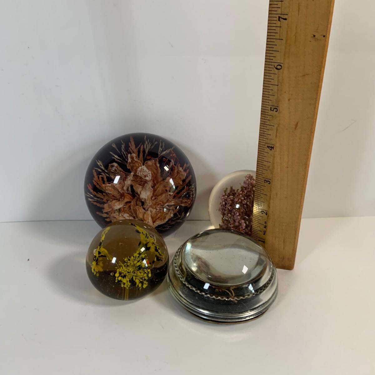 LOT 37: Collection of Four (4) Floral Inspired Glass Paperweights Featurig Hakodate Grange Paperweight, Small Murano Style Glass Ball and More