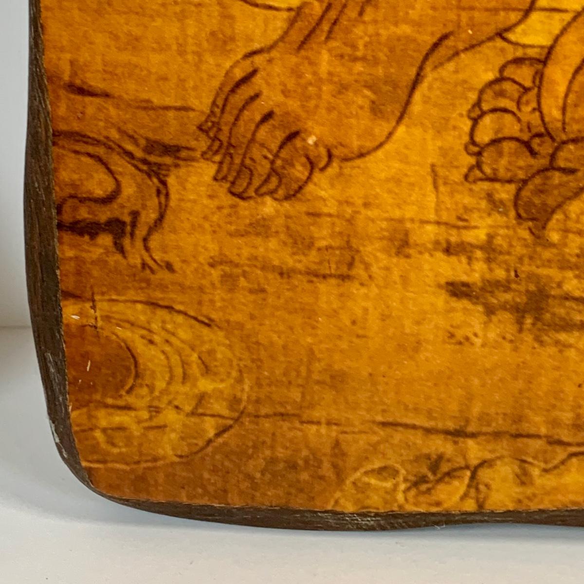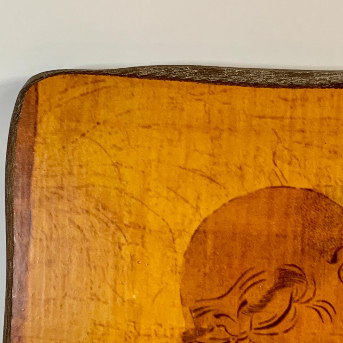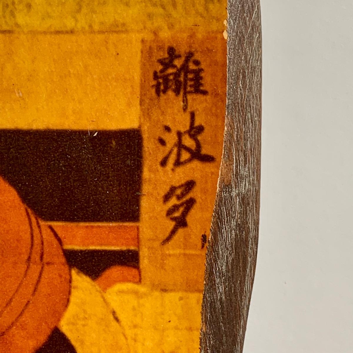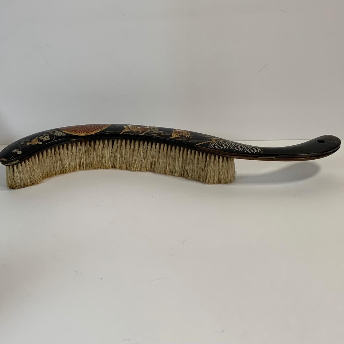 LOT 39: Japanese Inspired Decor Including Ancient Buddhist Style Painting on Wood “Nirvana,Death of Buddha”, Asian Brass Bell, Lacquered Sweeper Brush, Boxes Ginger Jar and More