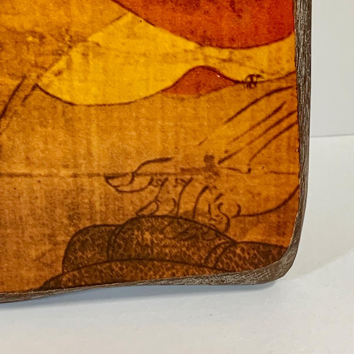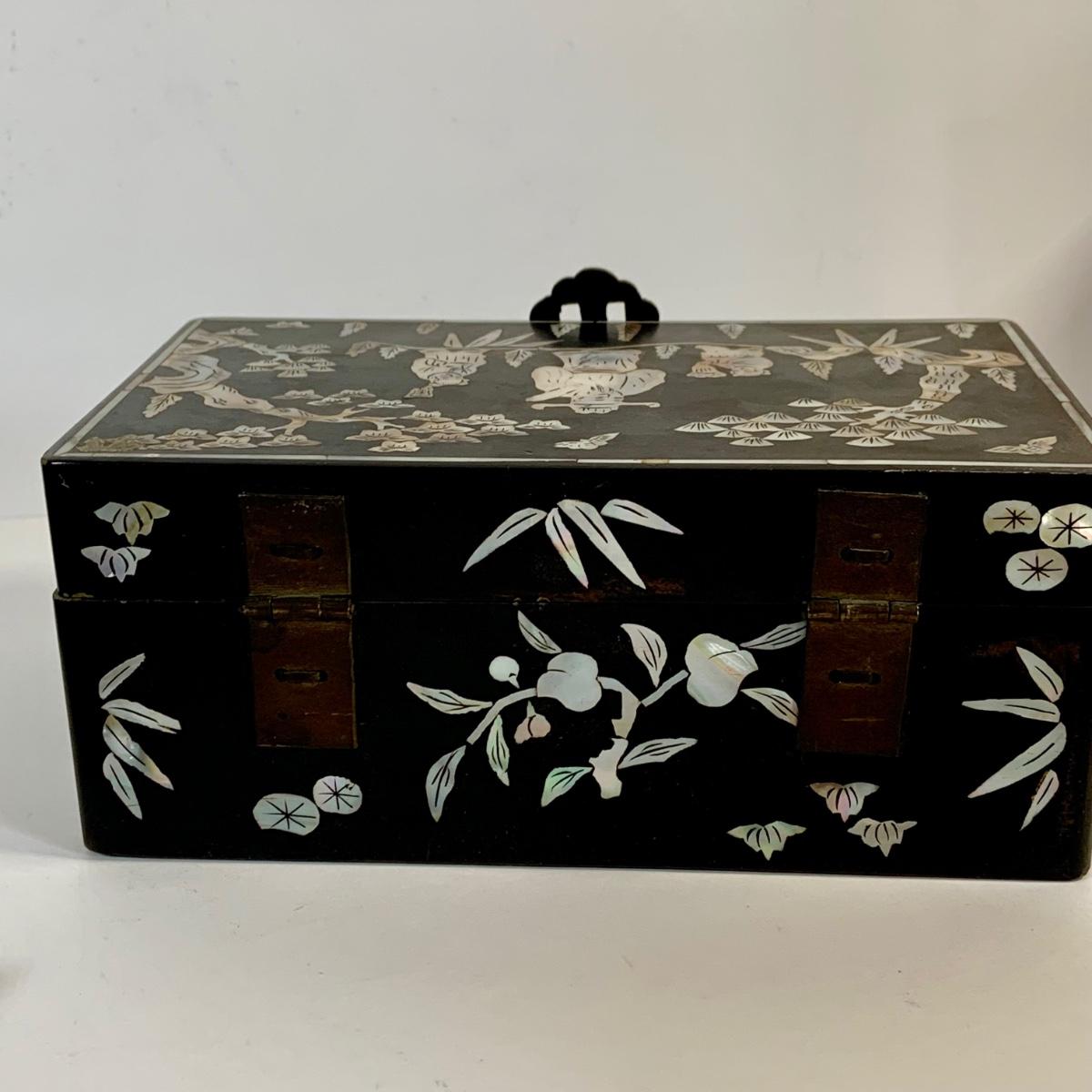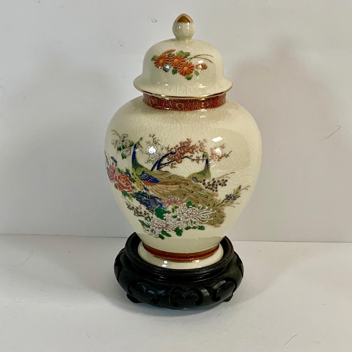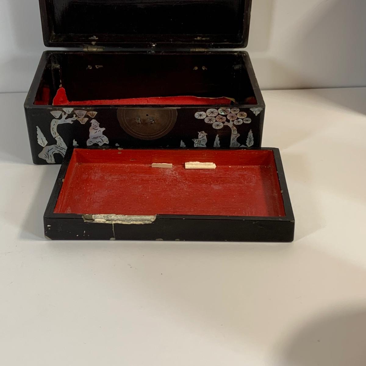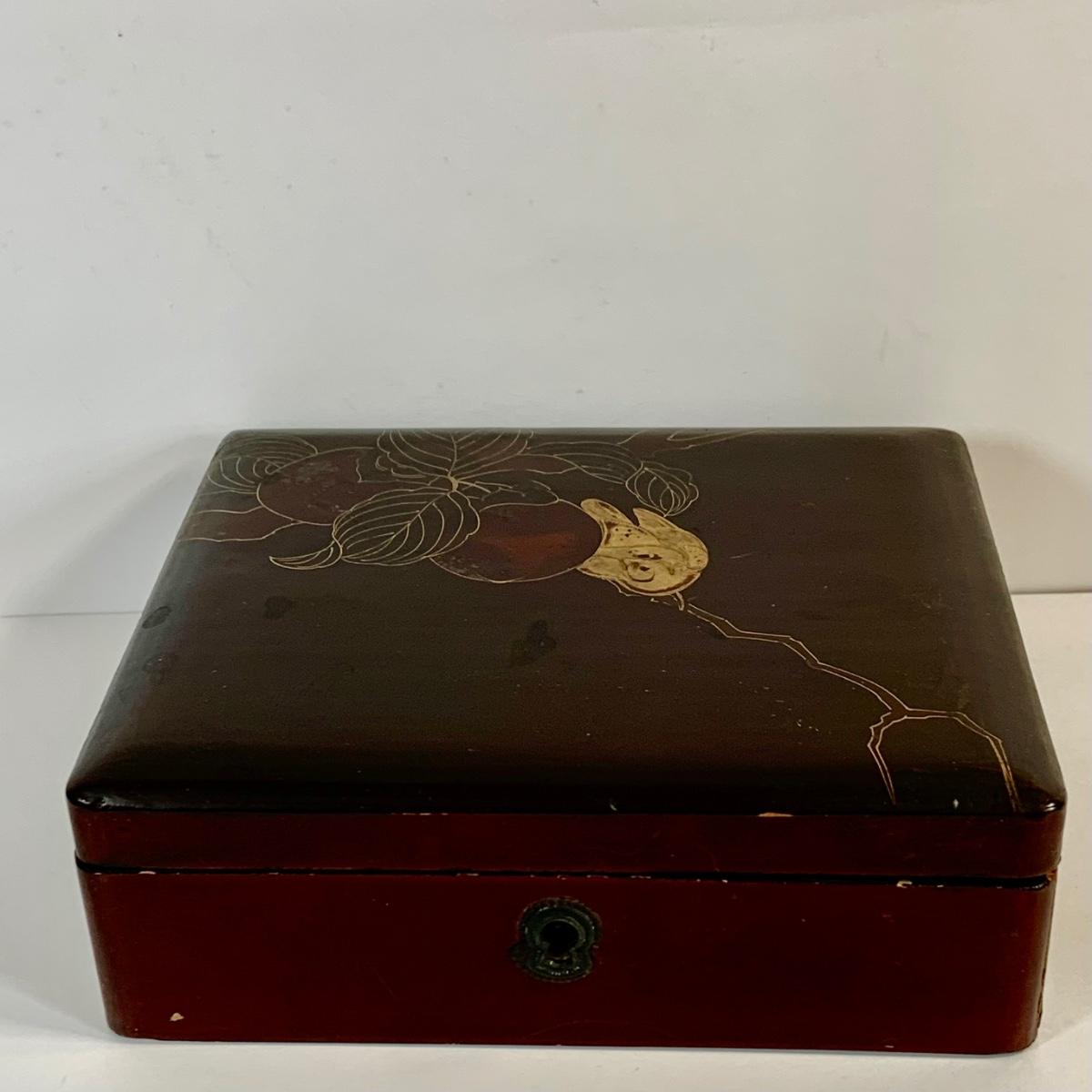 LOT 39: Japanese Inspired Decor Including Ancient Buddhist Style Painting on Wood “Nirvana,Death of Buddha”, Asian Brass Bell, Lacquered Sweeper Brush, Boxes Ginger Jar and More
