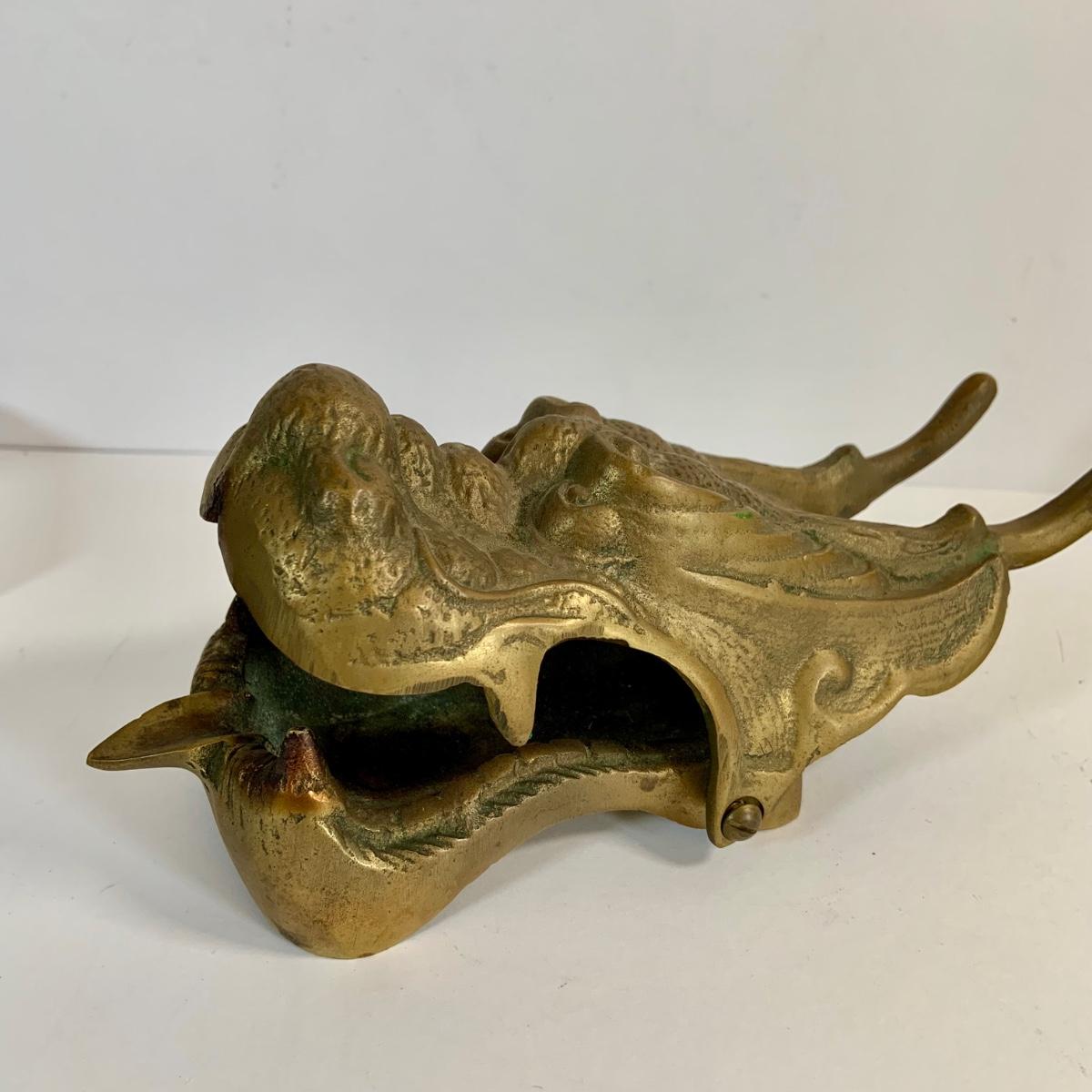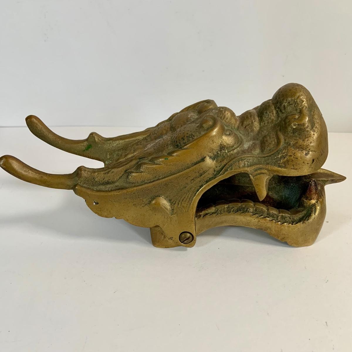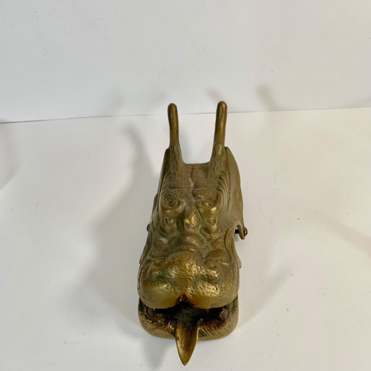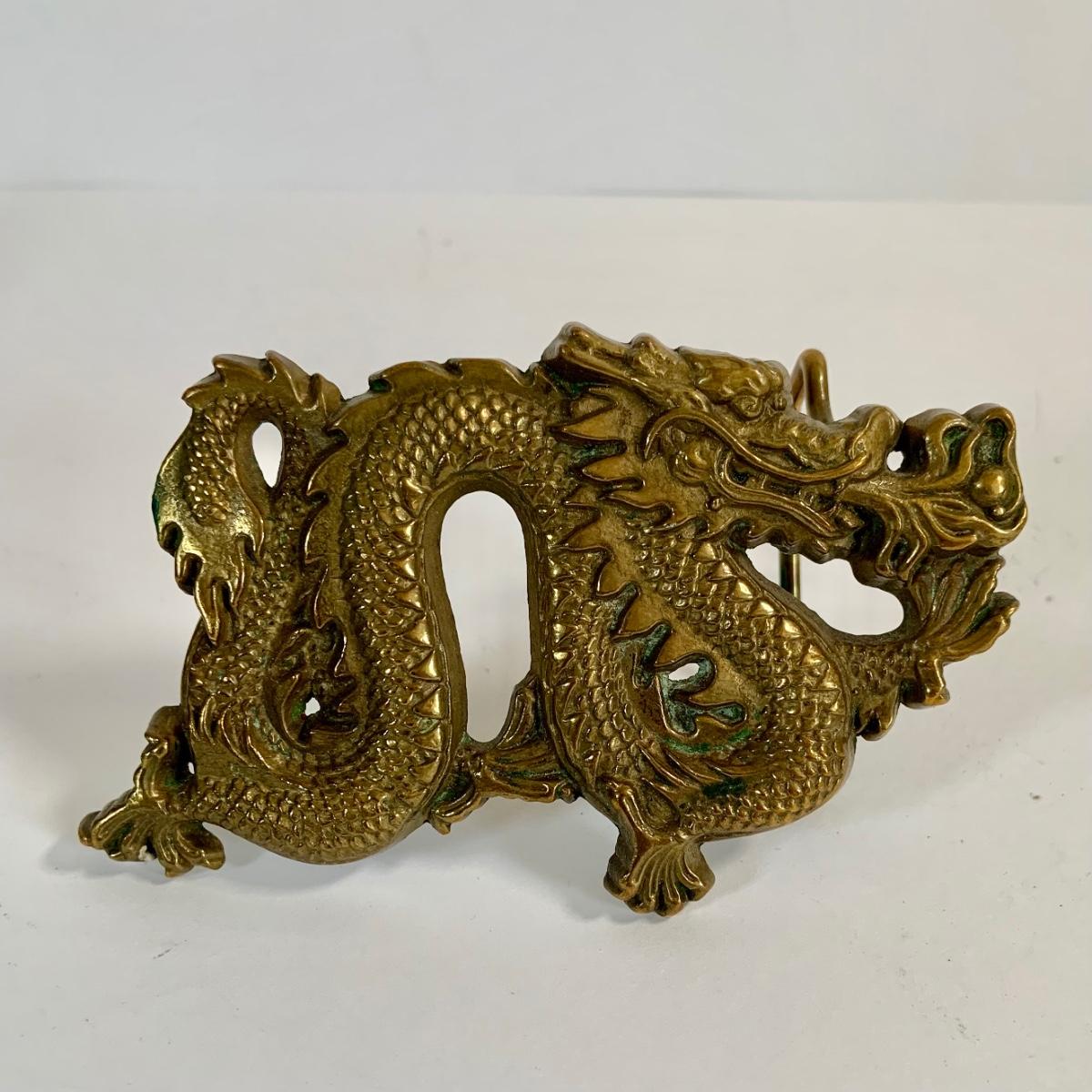 LOT 40: Vintage Metal Dragon Head Ash Tray Incense Burner. Brass Dragon Belt Buckle and Brass Buddha