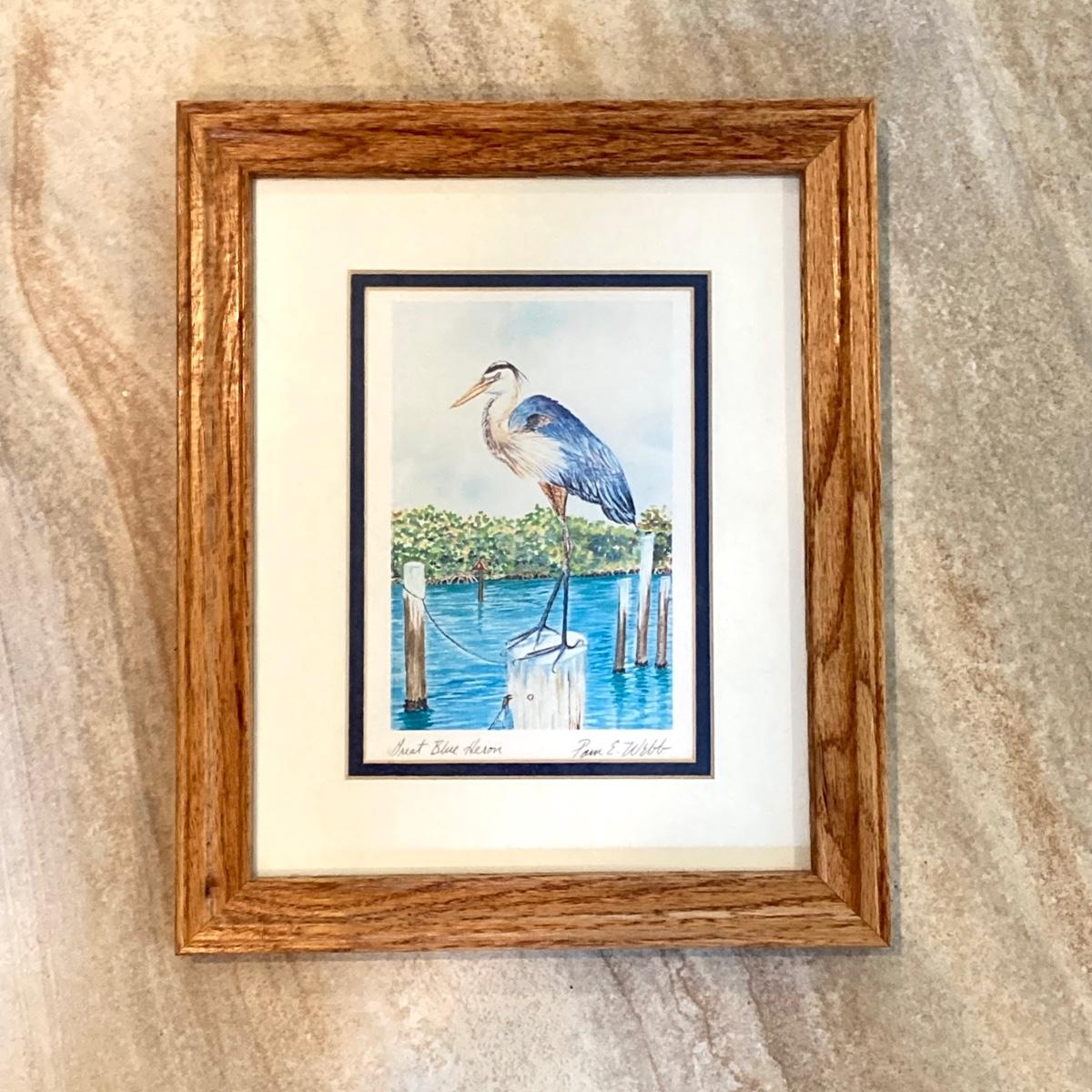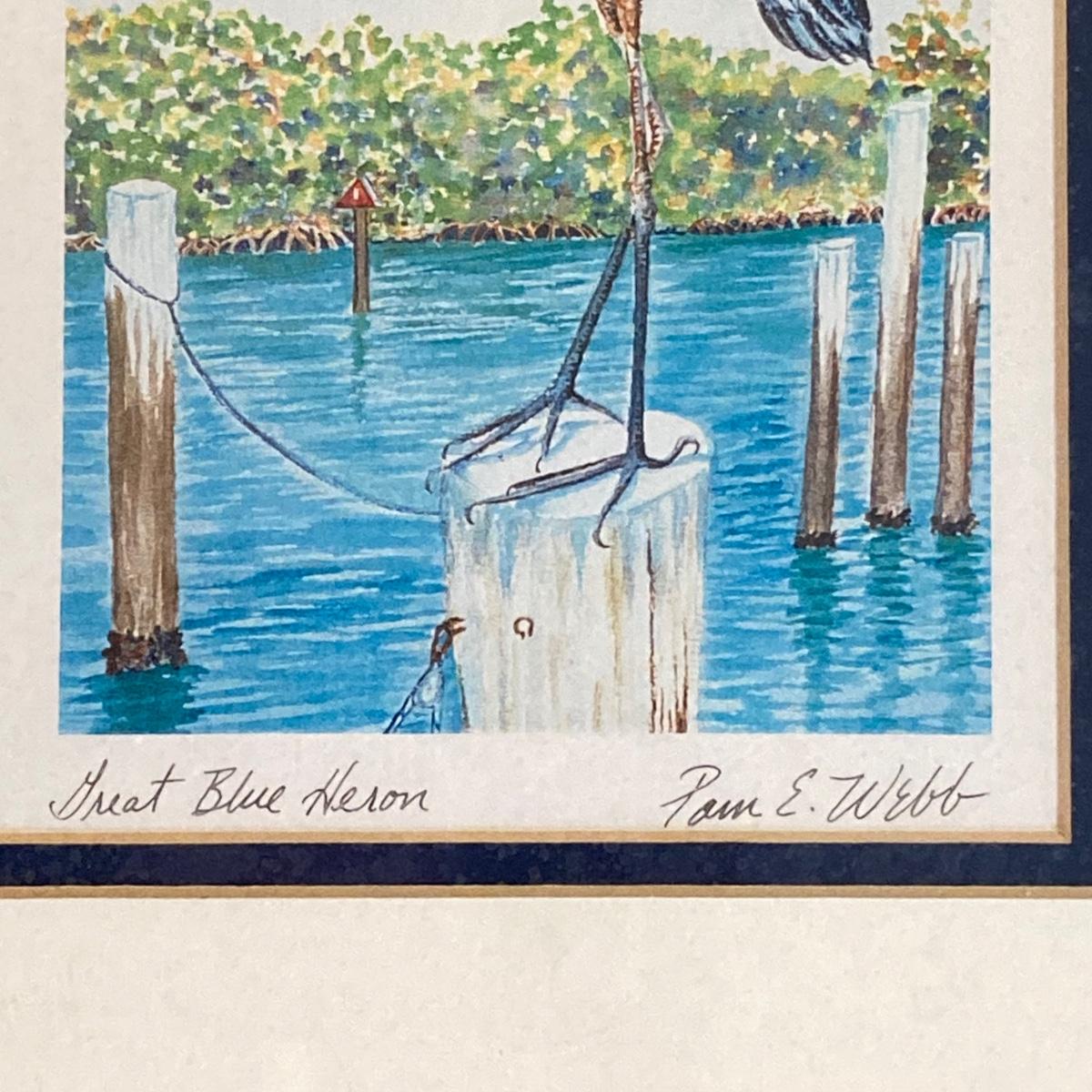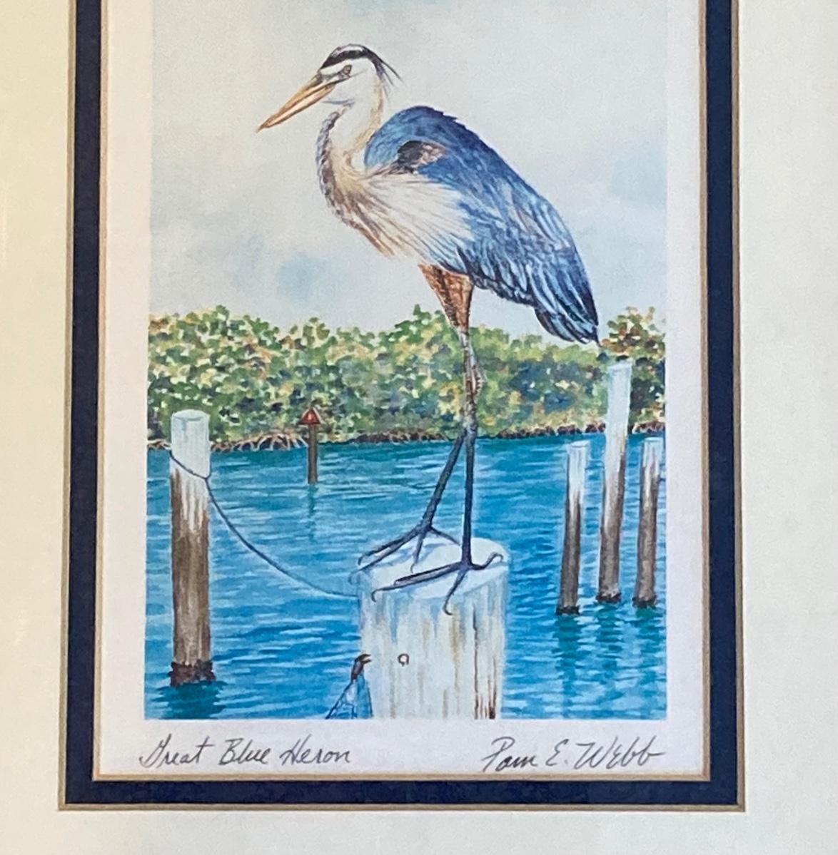 LOT 57: Framed and Signed by Artist Pam E. Webb "Great Blue Heron" Watercolor