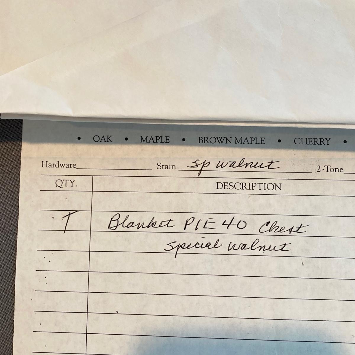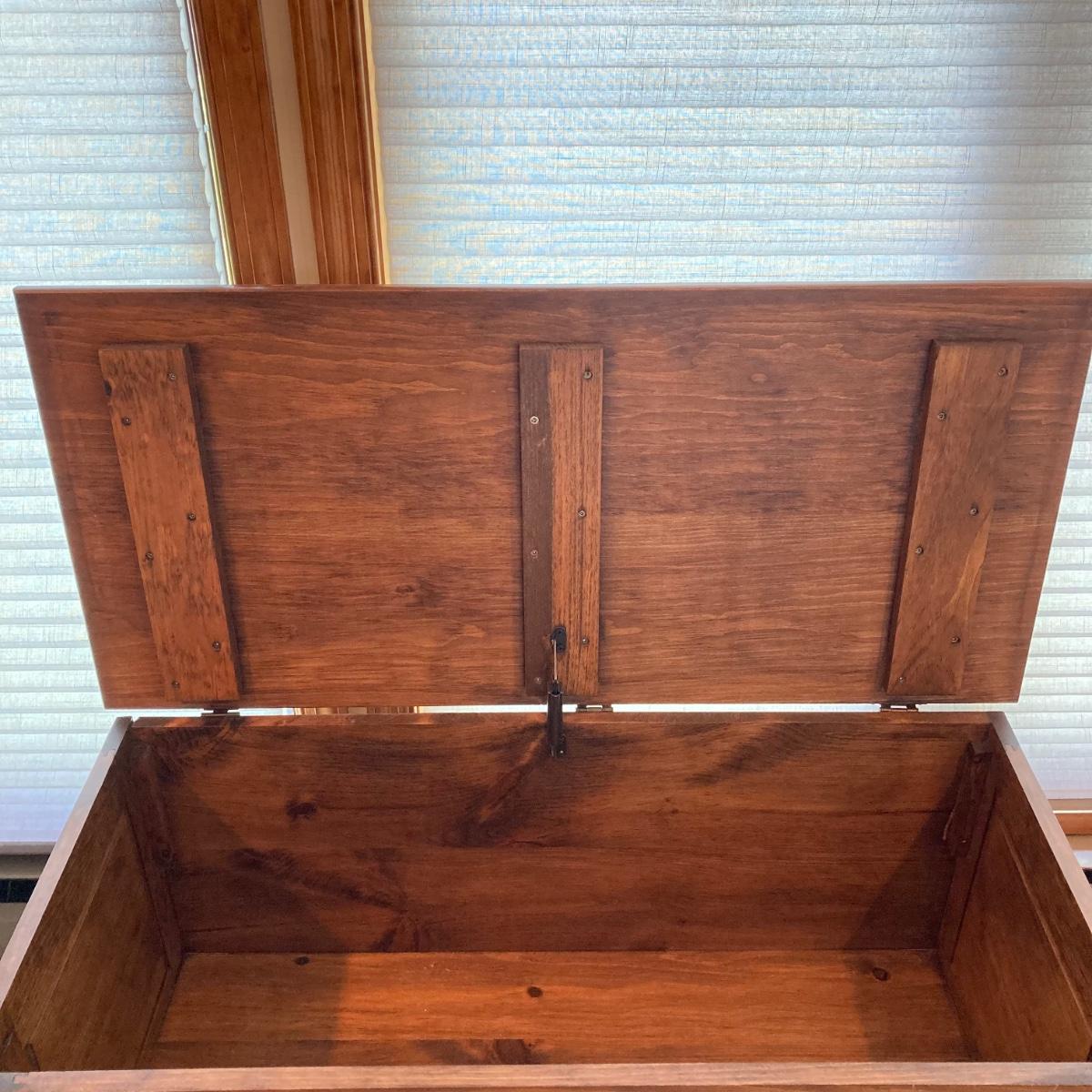 LOT 59: Peaceful Valley Handcrafted Amish Pine Wood Walnut Color Chest
