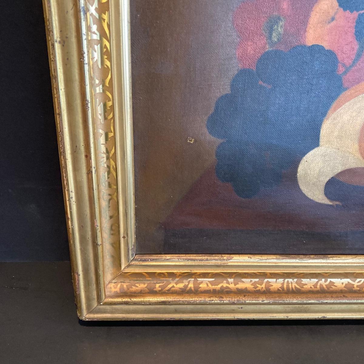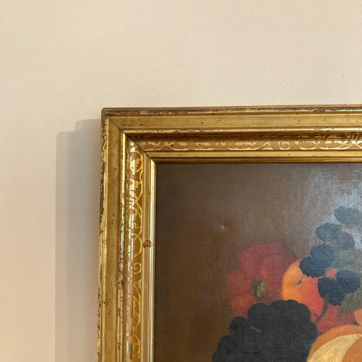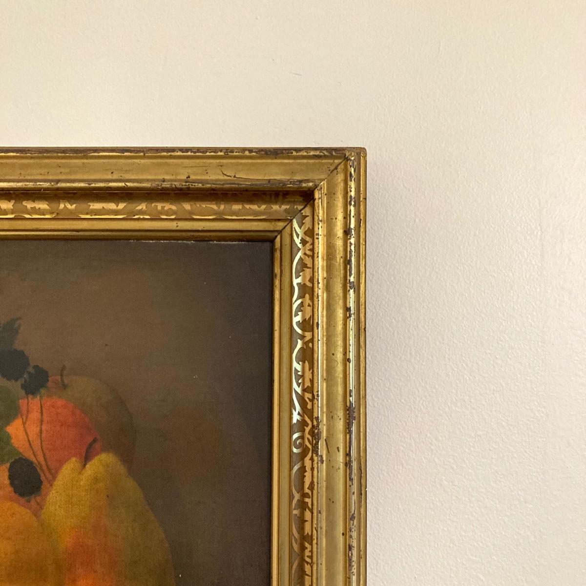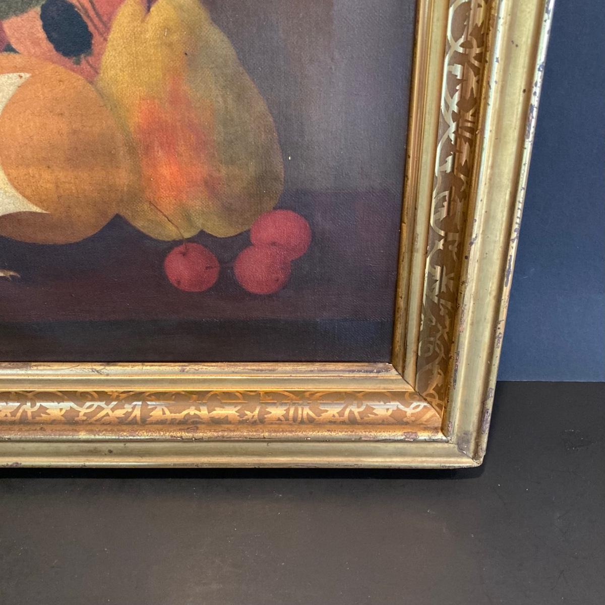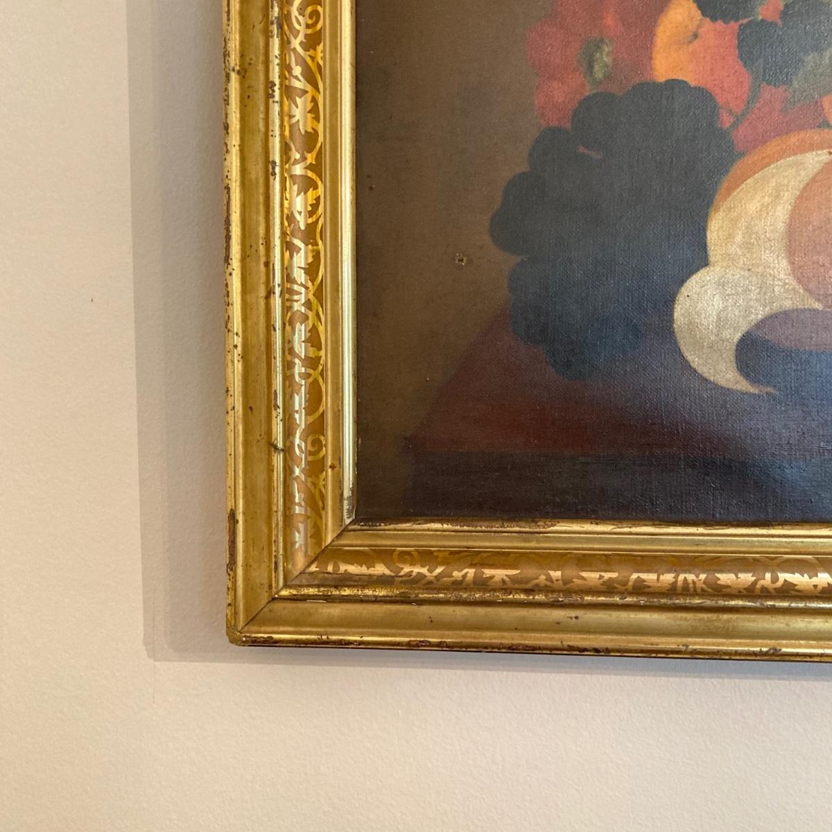 LOT 64: Vintage / Antique Framed Assorted Fruit Oil Painting with Country Harvest Chatham Pottery Pitcher and Oval Dish