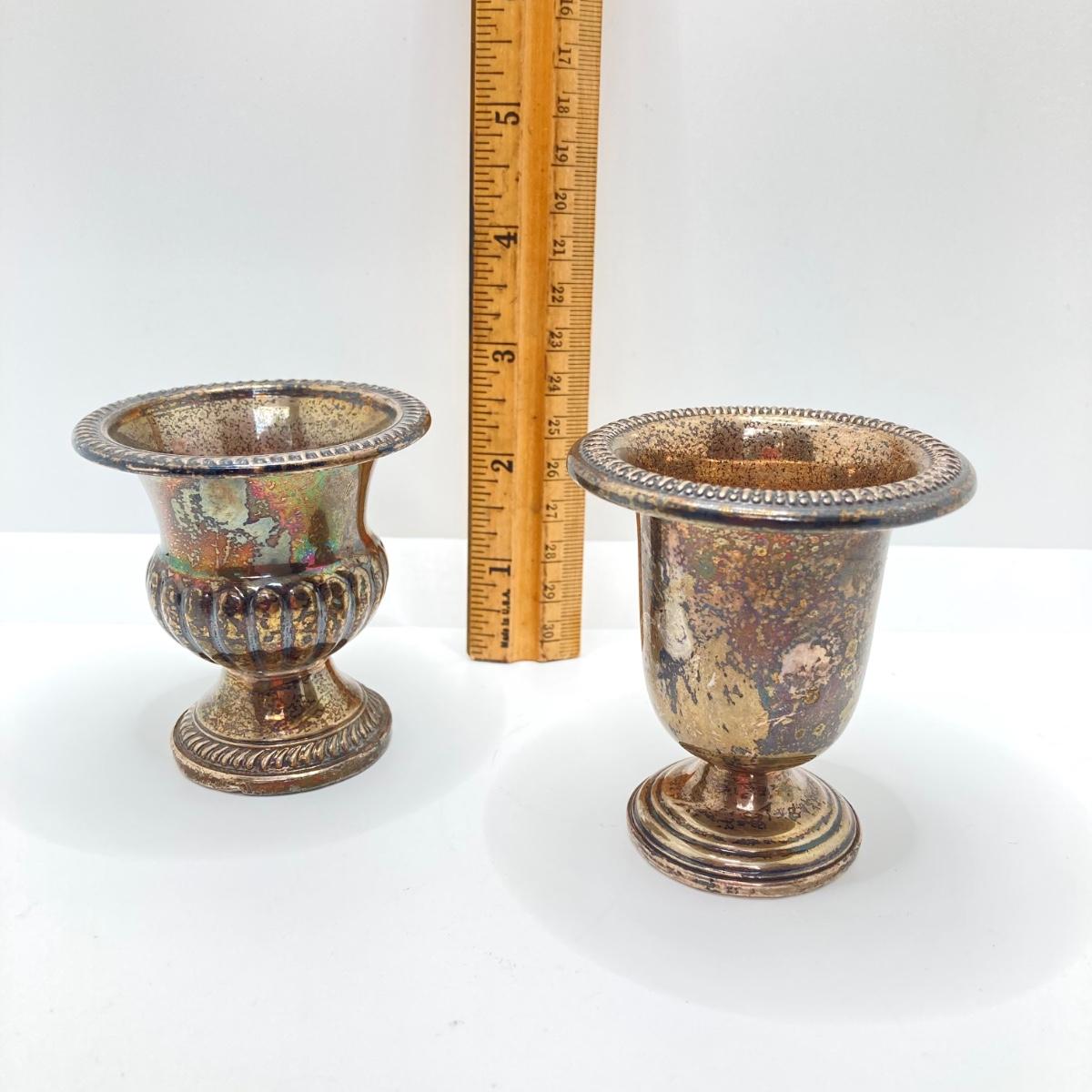 LOT 66: Wm Rogers Mfg Co and Hamilton Weighted Sterling Mini Urn / Toothpick Holders