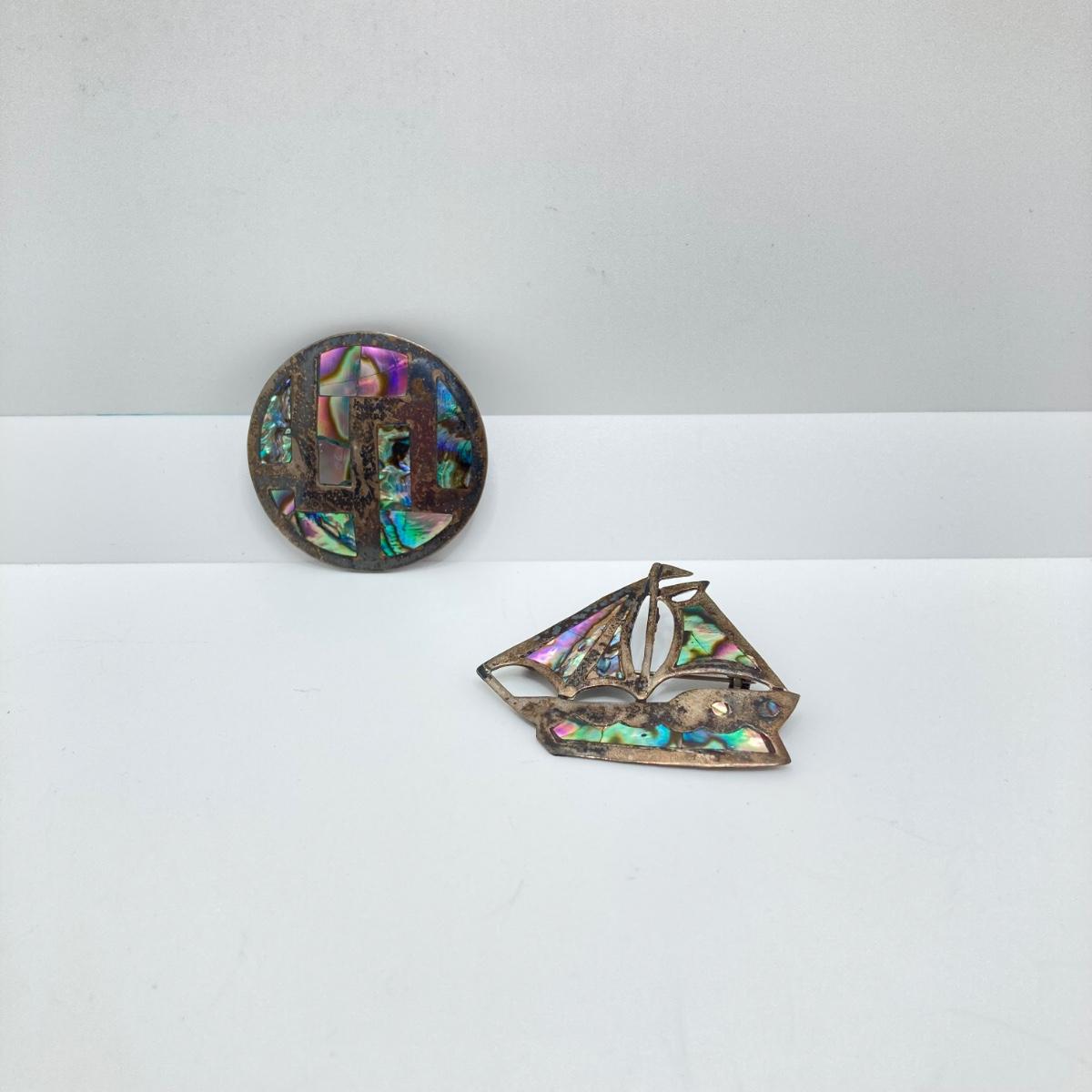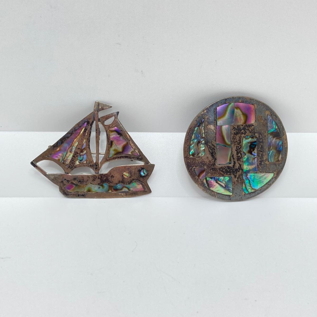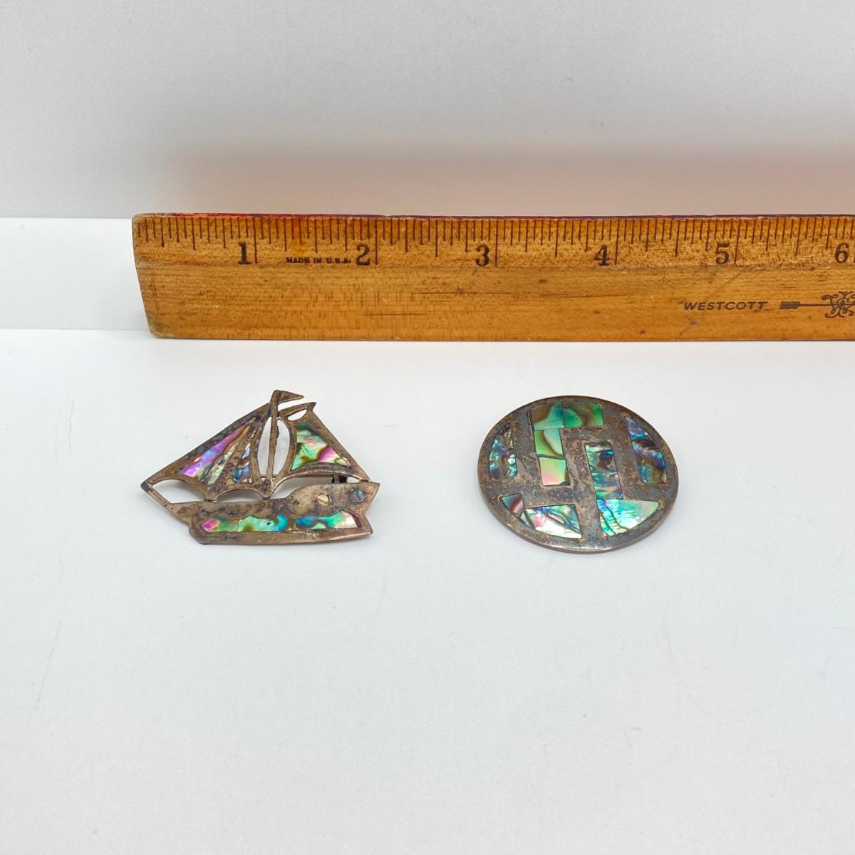 LOT 77: Beautiful Abalone / Shell Sterling Mexico Pendant and Pins