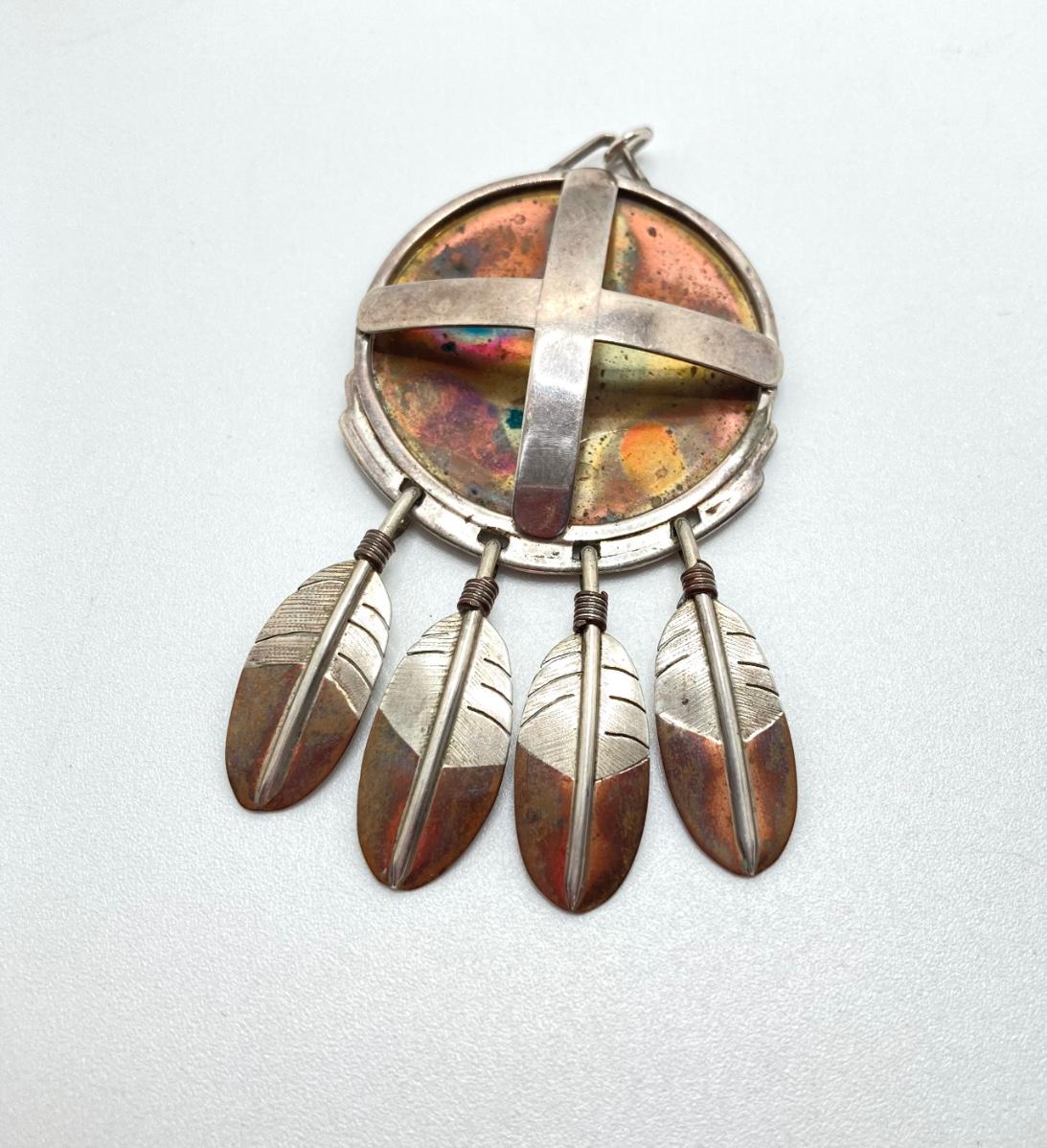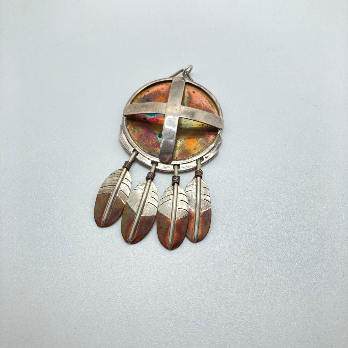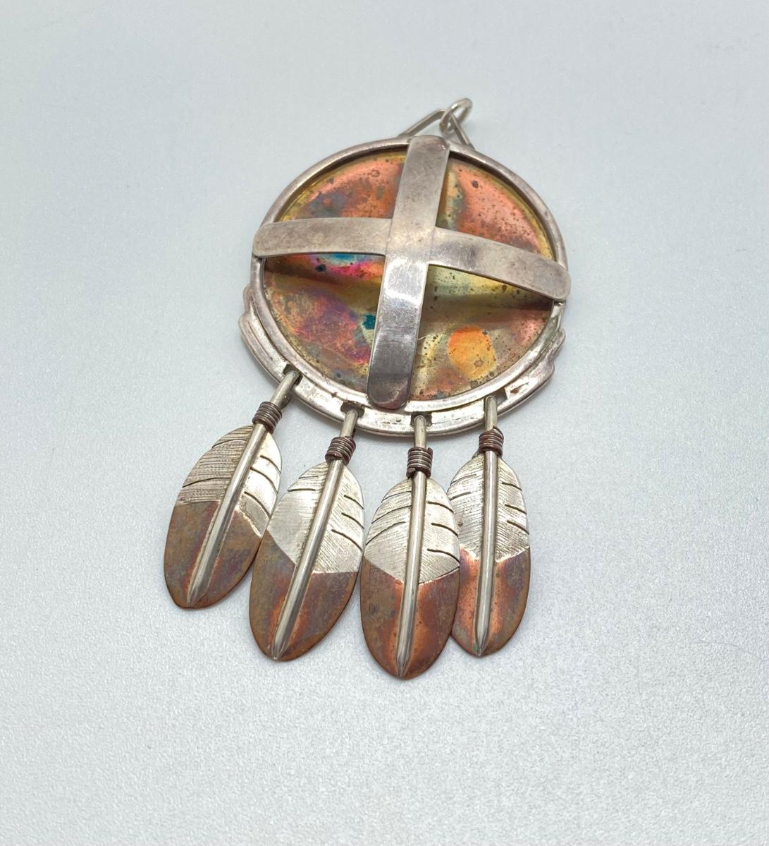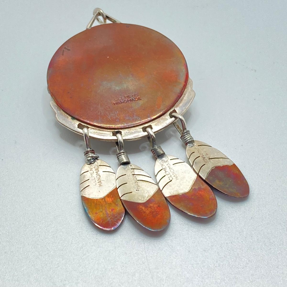 LOT 80: Clemens Handmade Pendant, Tied Knot Mexico Ring Size 9.5 with Screw Back Copper Earrings