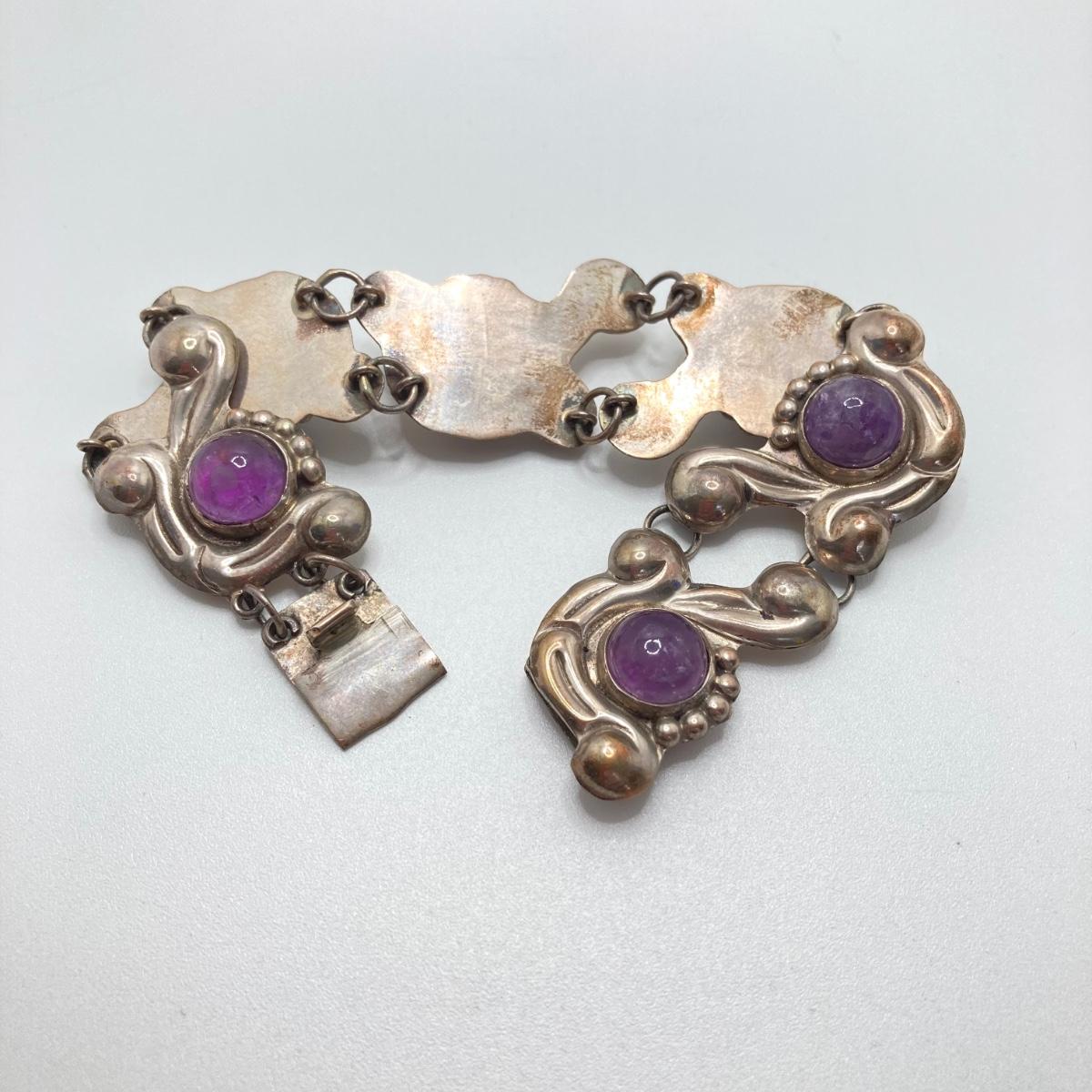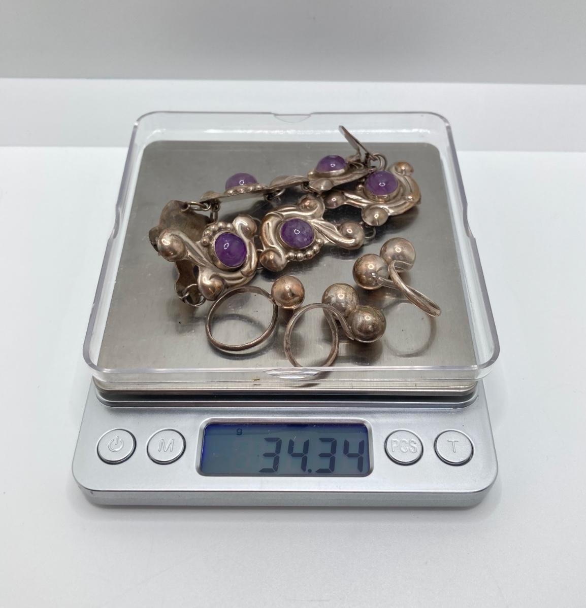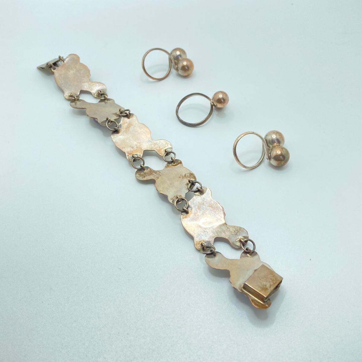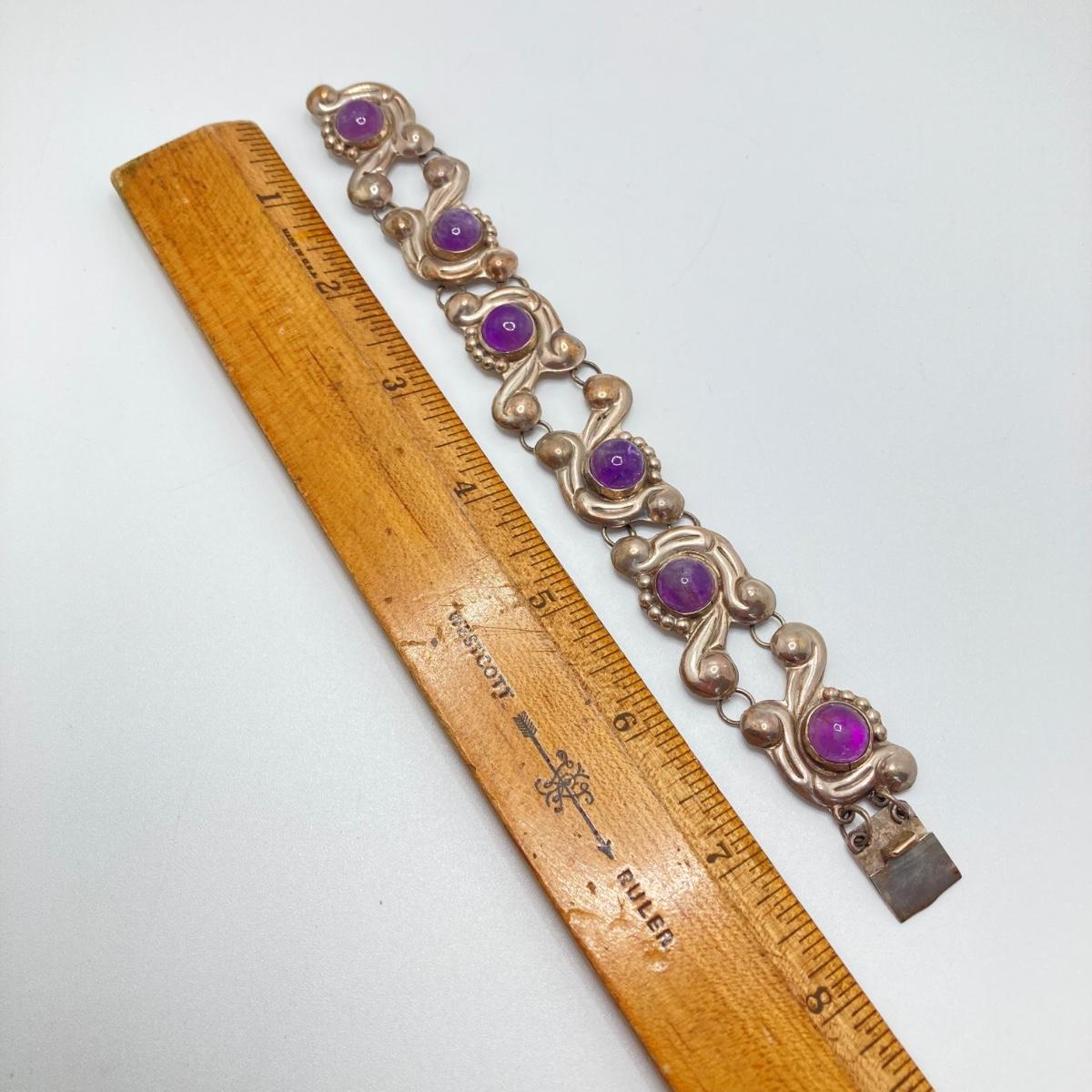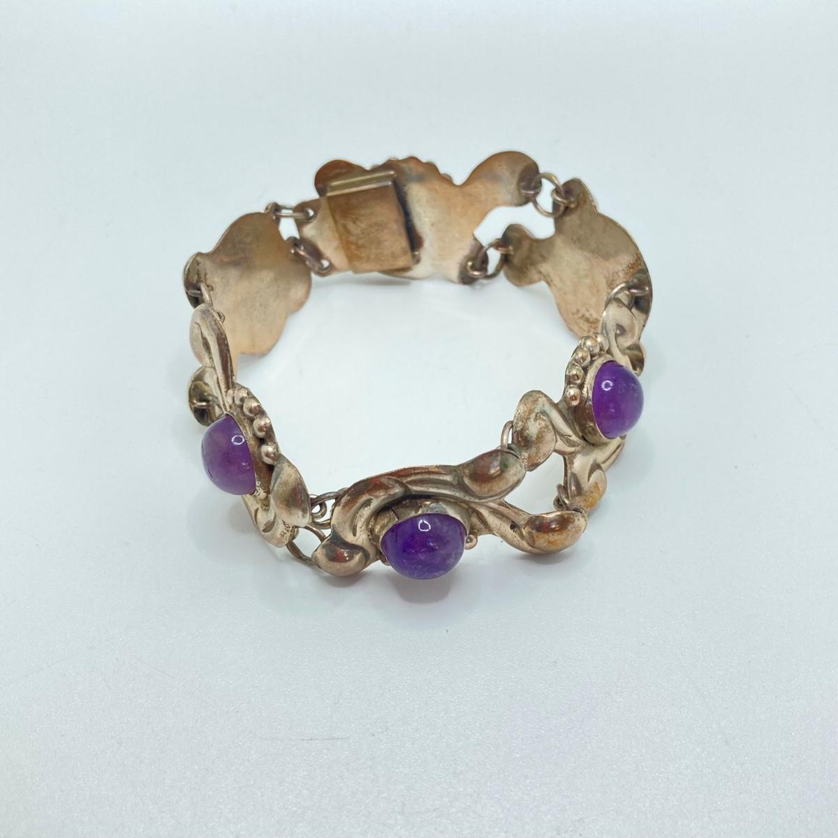 LOT 81: Beautiful Mexican Sterling Amethyst Bracelet with Three Adjustable Sterling Rings
