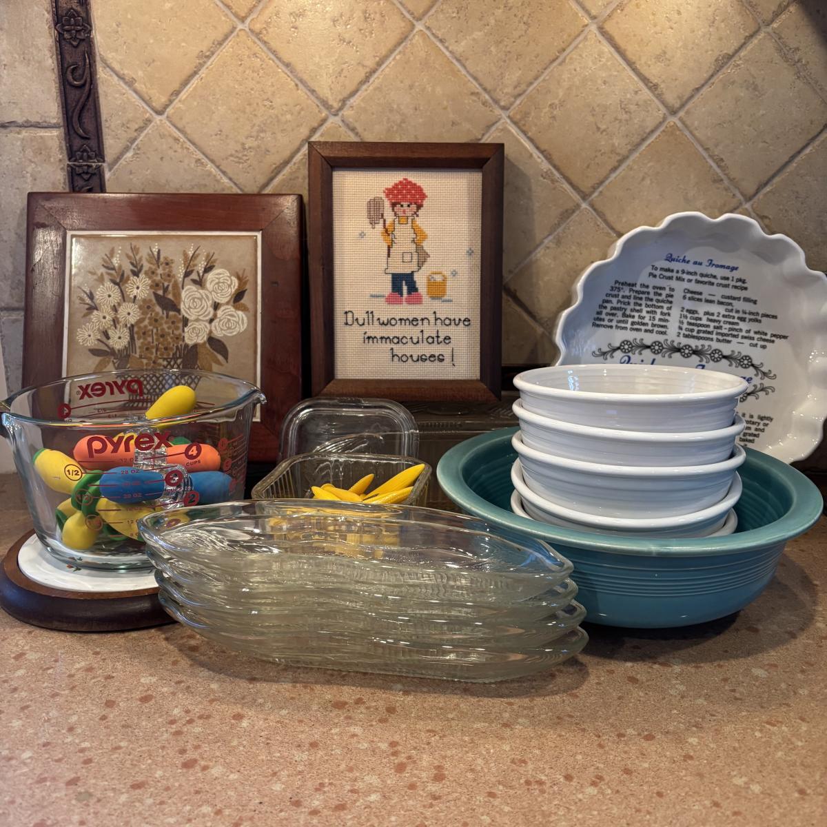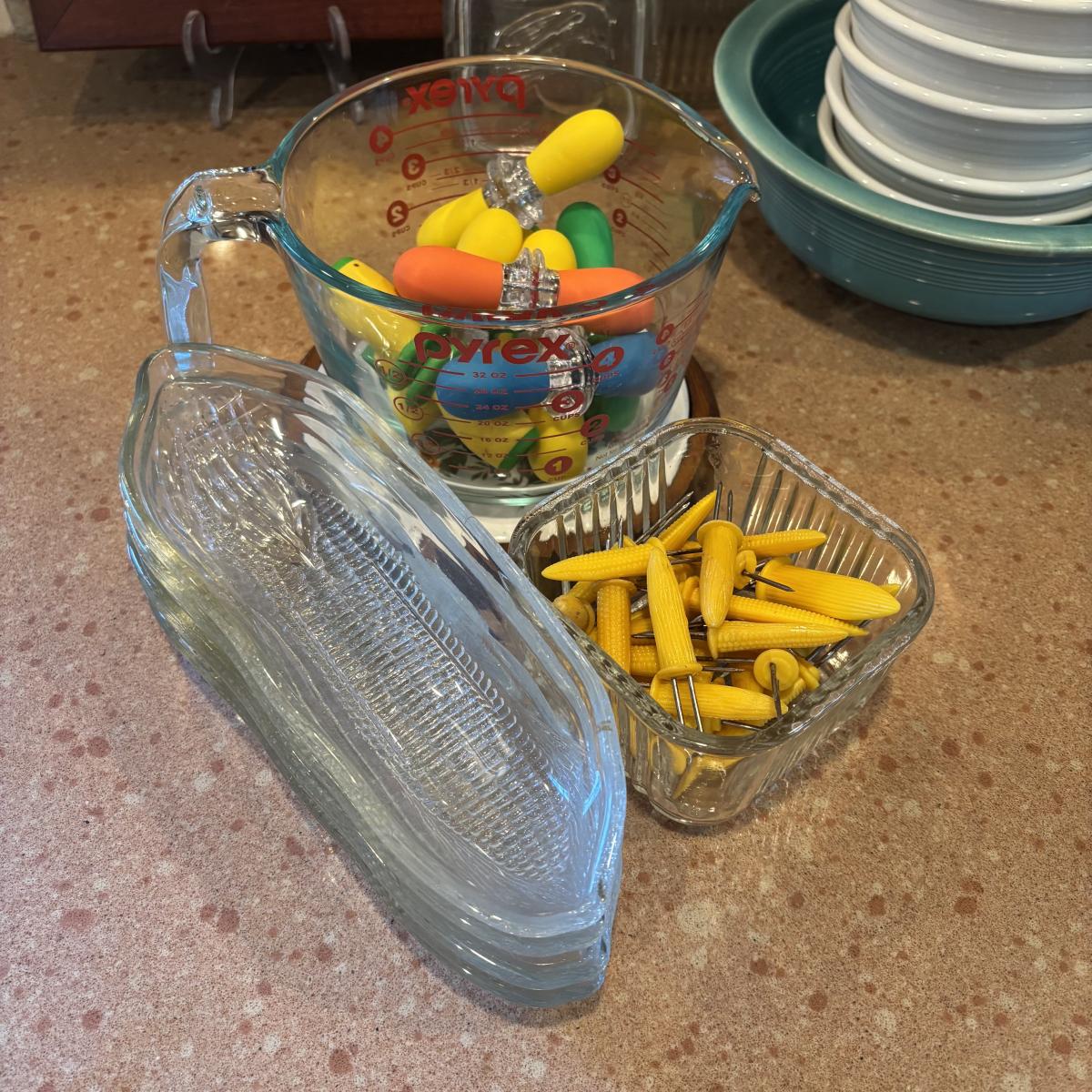 LOT 88: Fiesta Ware, Refrigerator Dishes, Corn on the Cob Dishes & Holders, Trivets, Quiche Dish w/Recipe