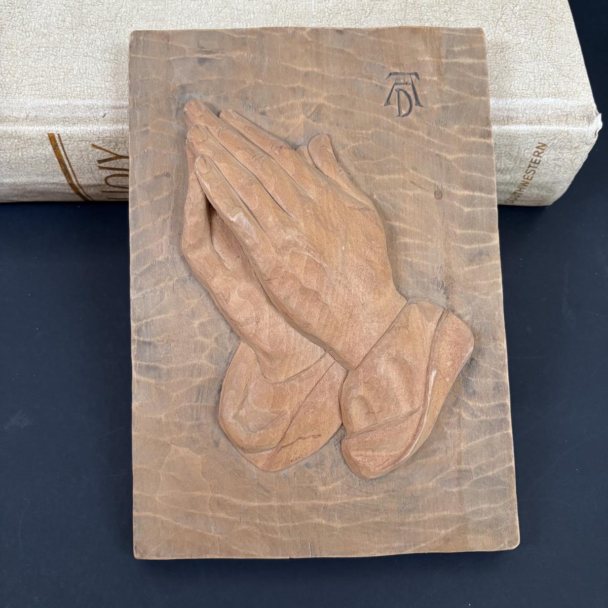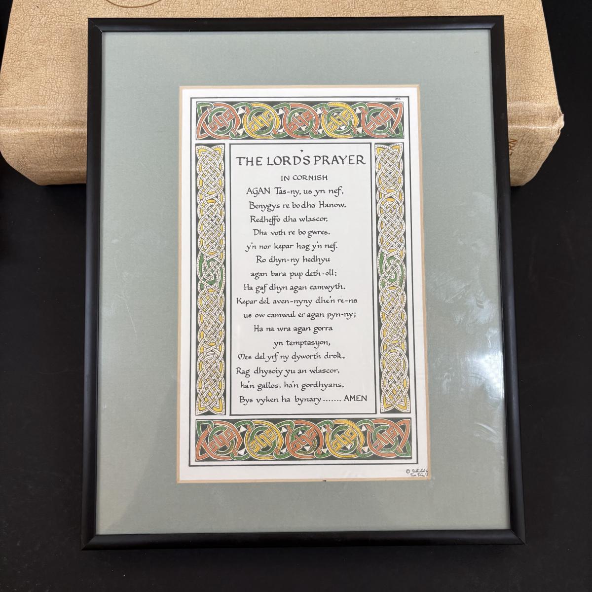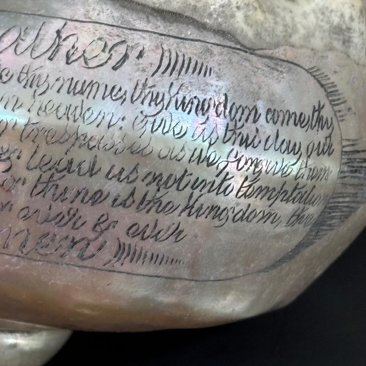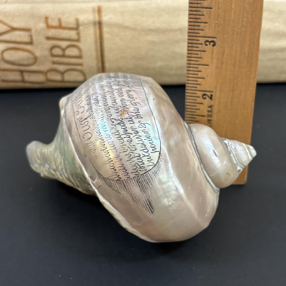 LOT 94: Turbo Marmoratus Shell Carved with The Lord's Prayer, Vintage Curiosities of the Bible Book, Carved Praying Hands Plaque, Framed, The Lord's Prayer in Cornish, Holy Bible & More