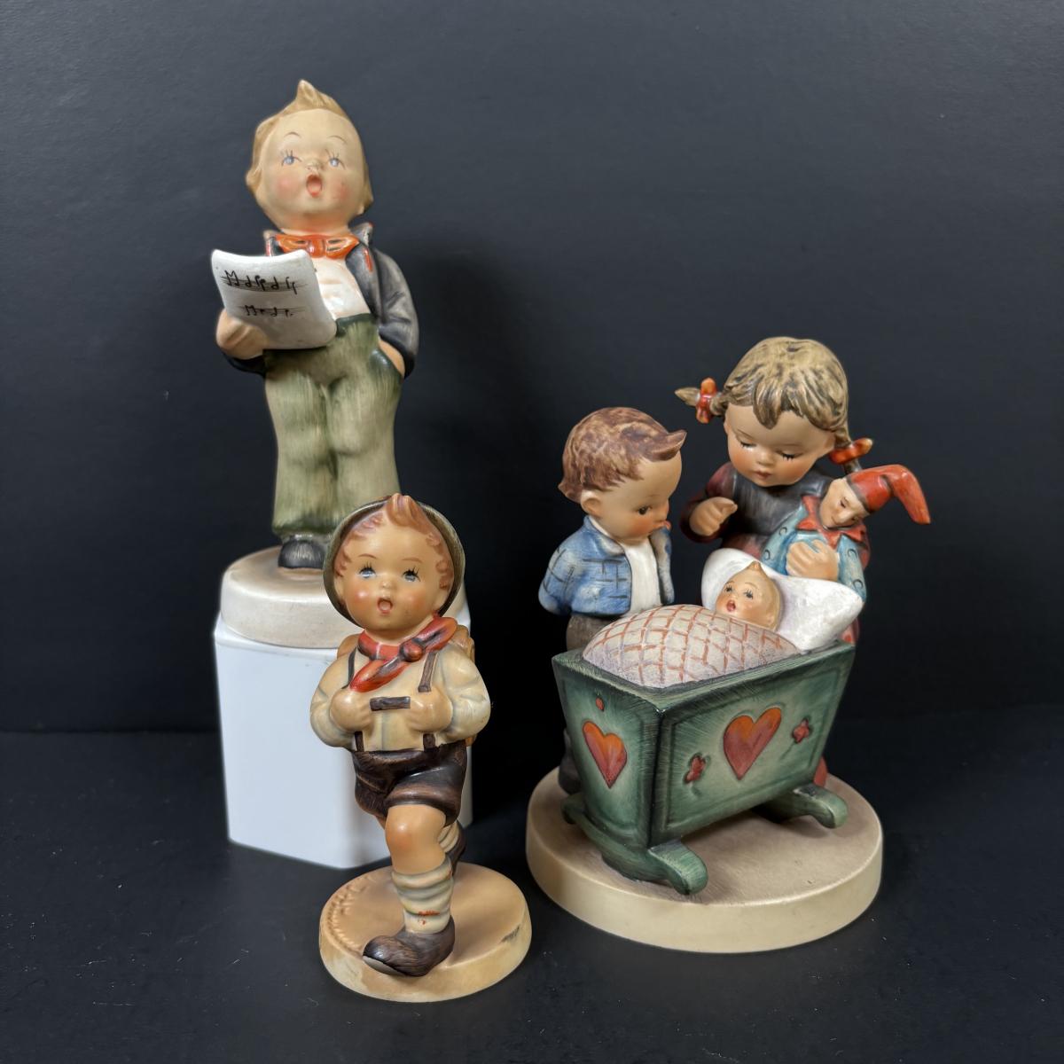 LOT 99: Set of 2 Hummels: Blessed Event & School Boy along with a Napco The Singer Figure