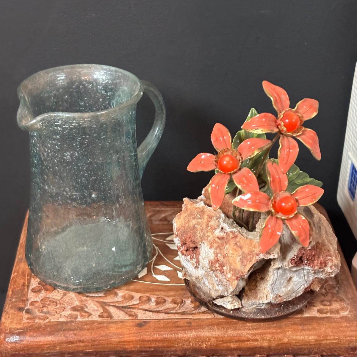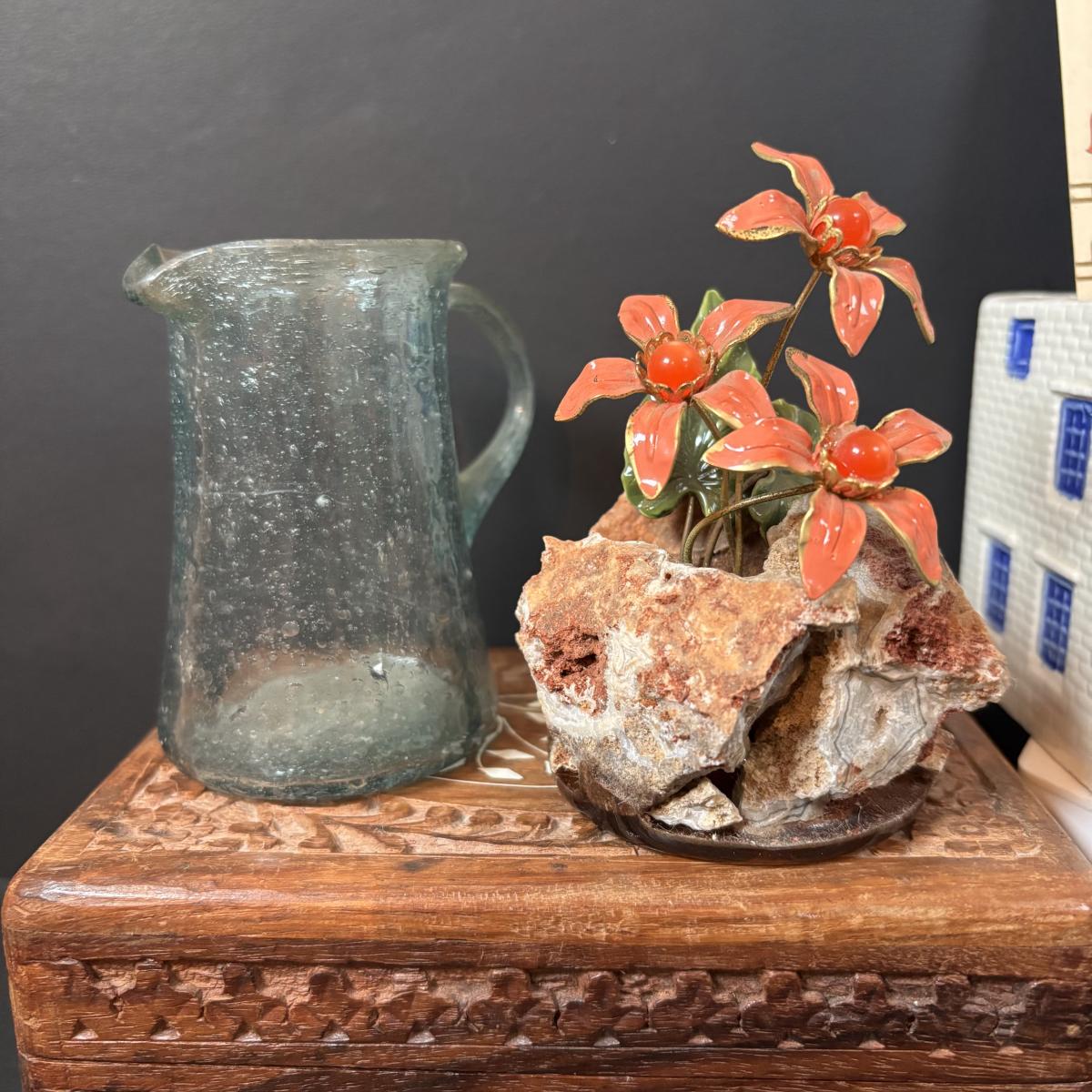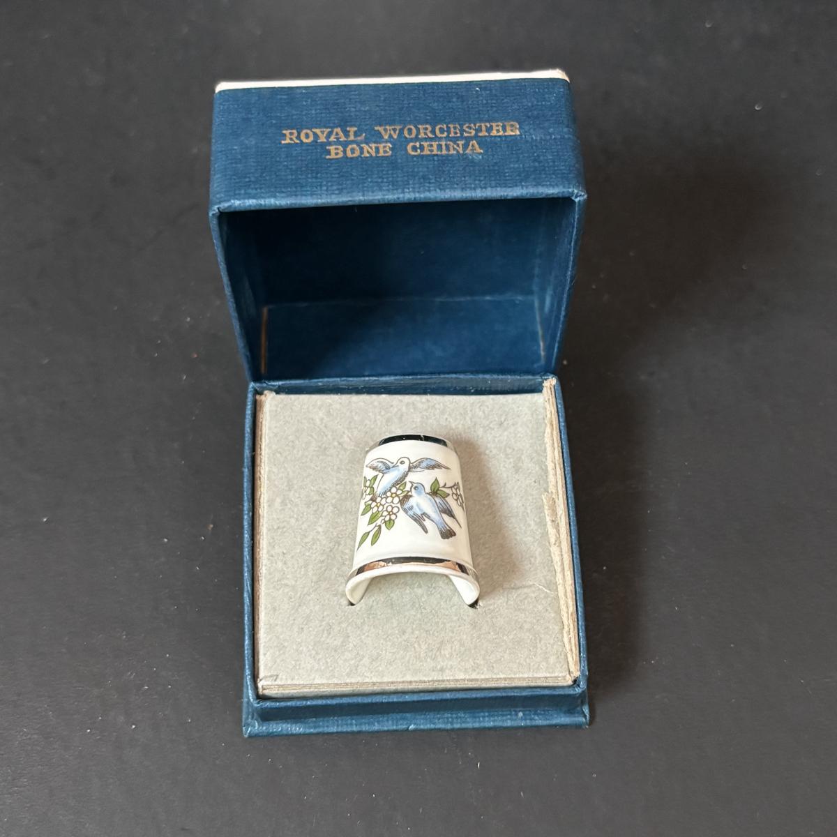 LOT 108: Vintage Collectible Finds: Tape Measure, Perpetual Calendar, Sterling Silver Thimble, Royal Worchester Thimble, Hand Crafted Enamel/Coral Floral Arrangement, Delft Blue Canal House & More
