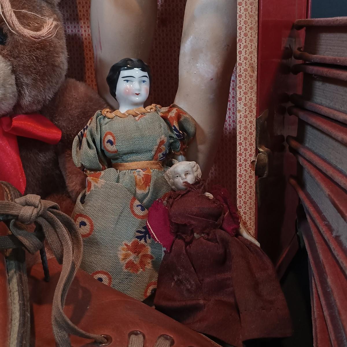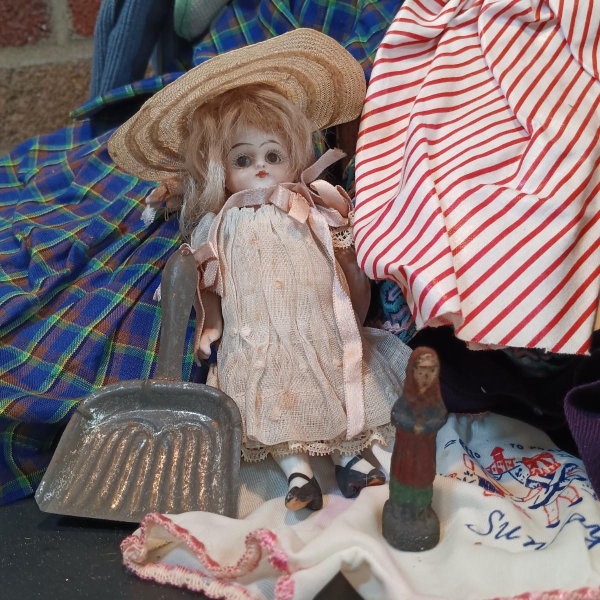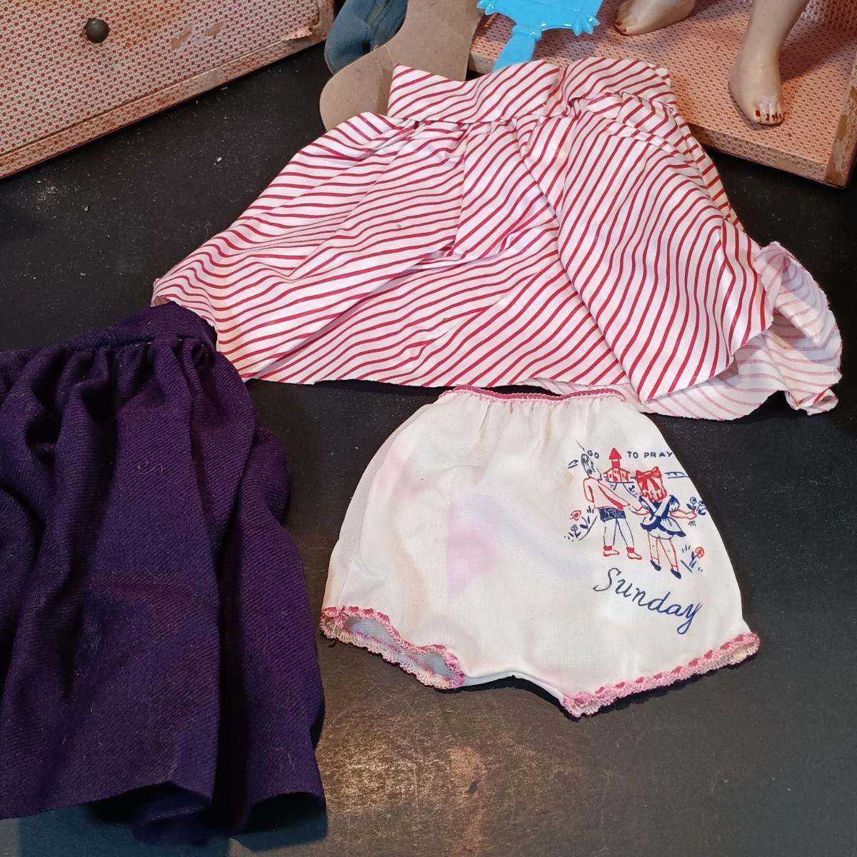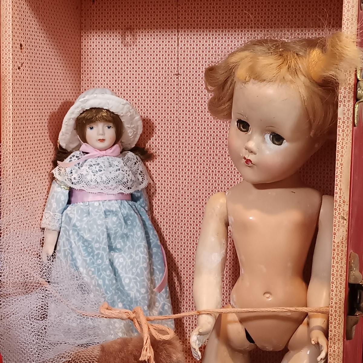 LOT 116: Large Collection of Vintage Dolls, Clothes and Metal Trunk with Book Trails 1940s Volumes 1-8