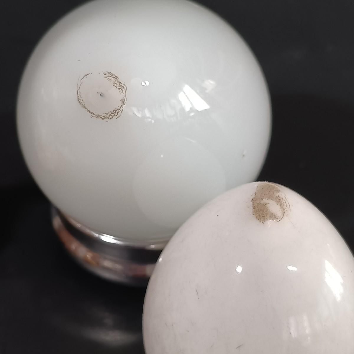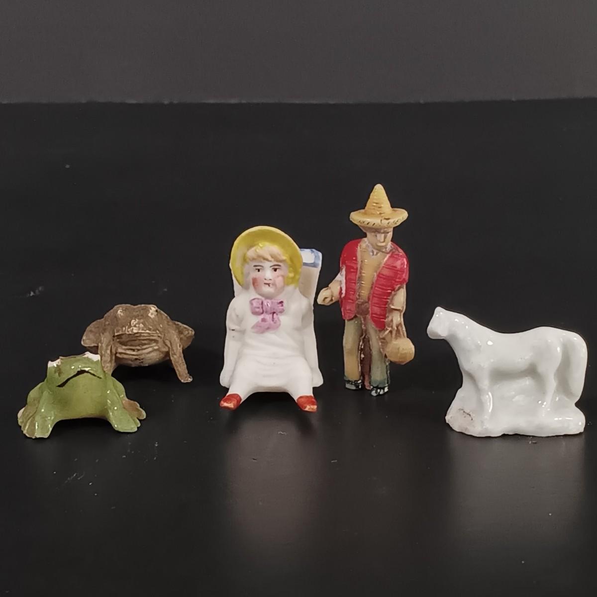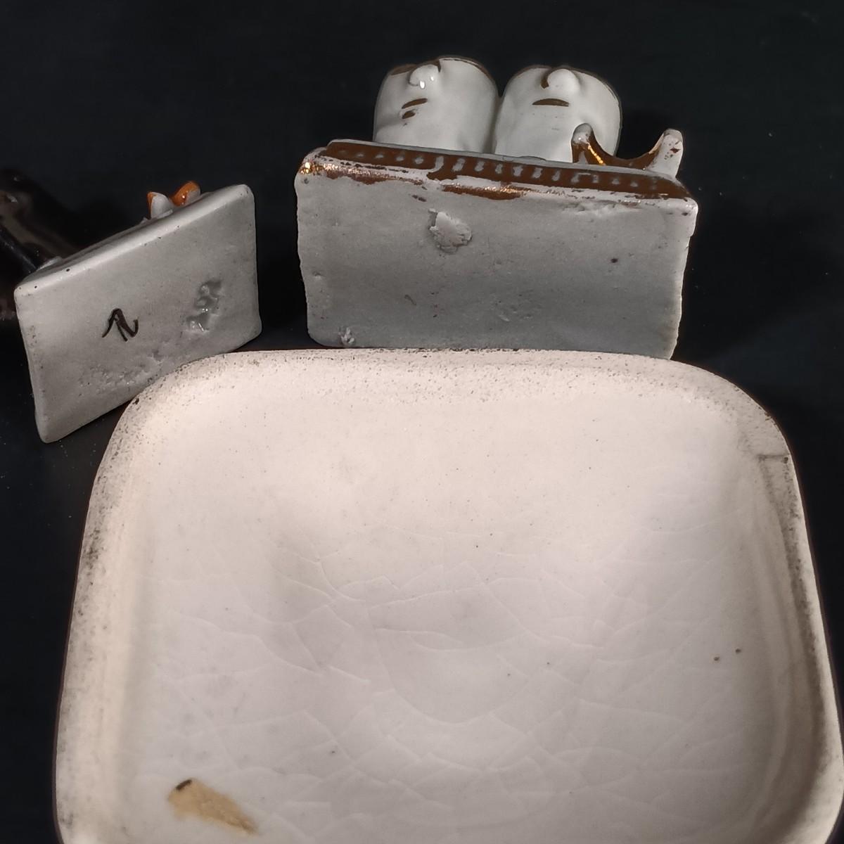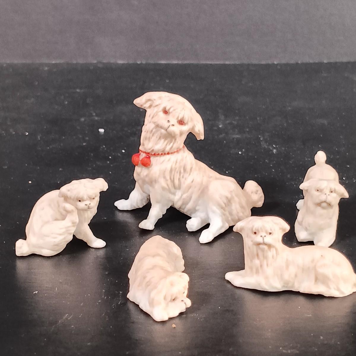 LOT 120: Milk Glass Eggs, Eye Wash Cups, Miniature Bisque Dogs, Porcelain Cigarette Holder Boots & More