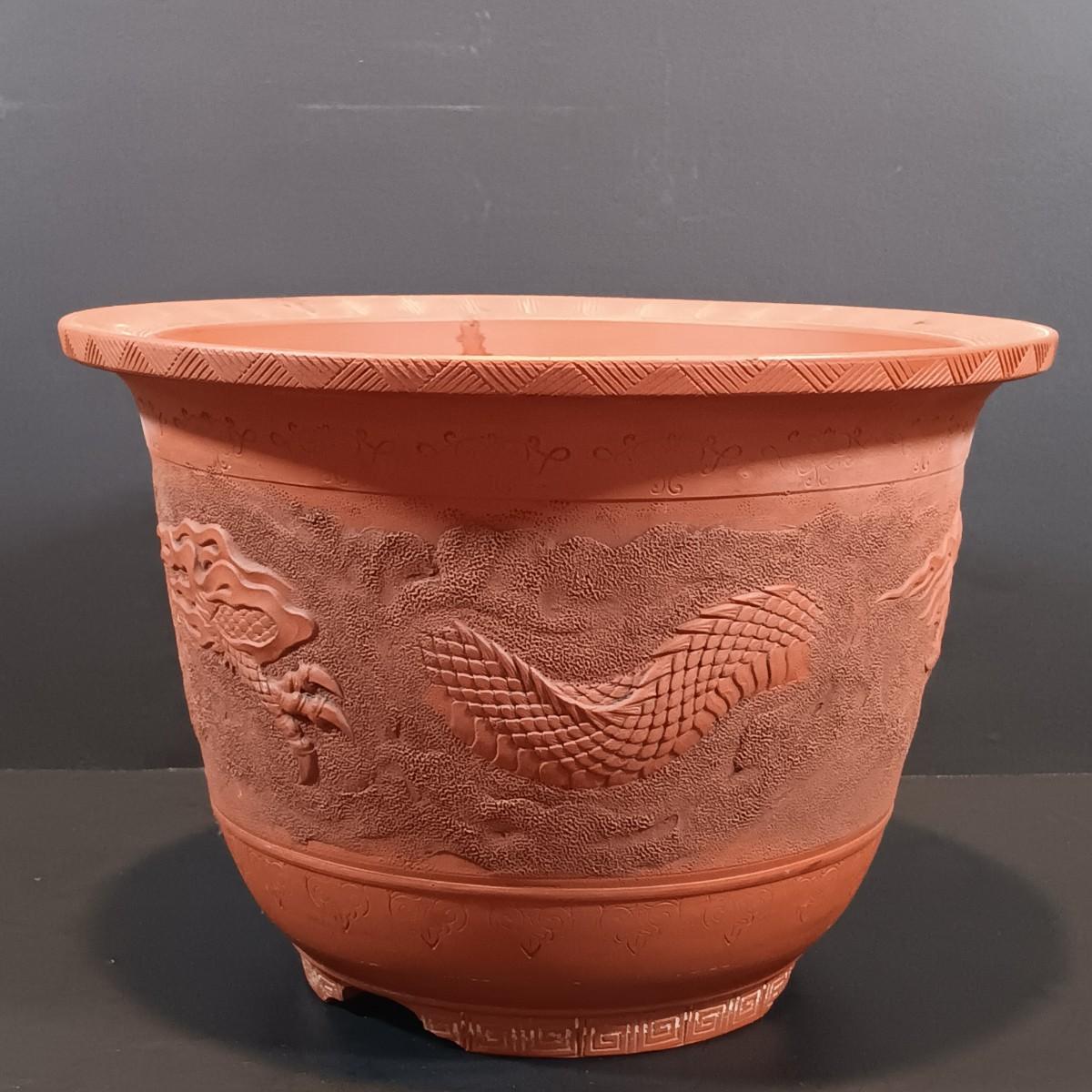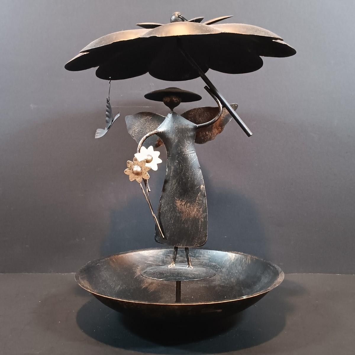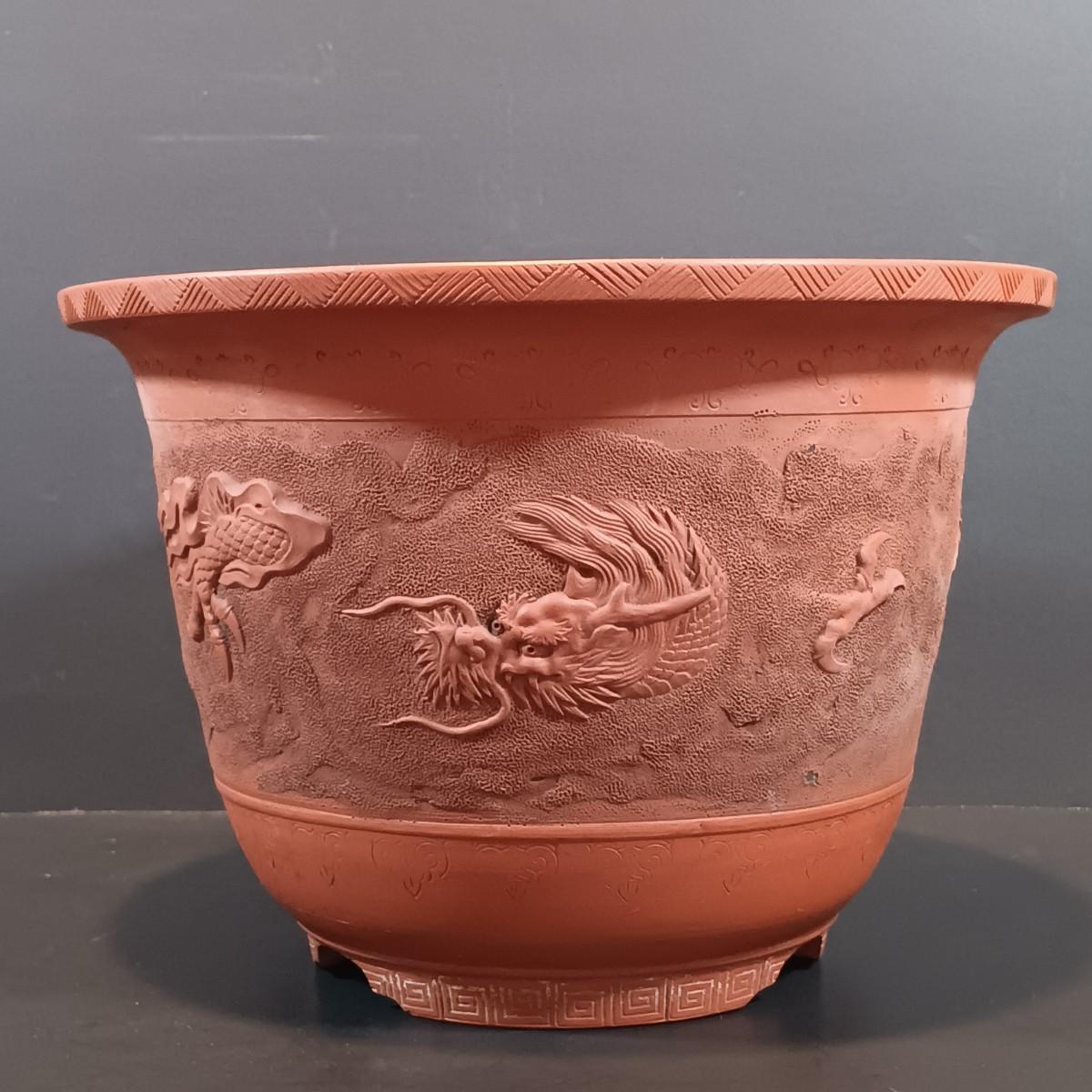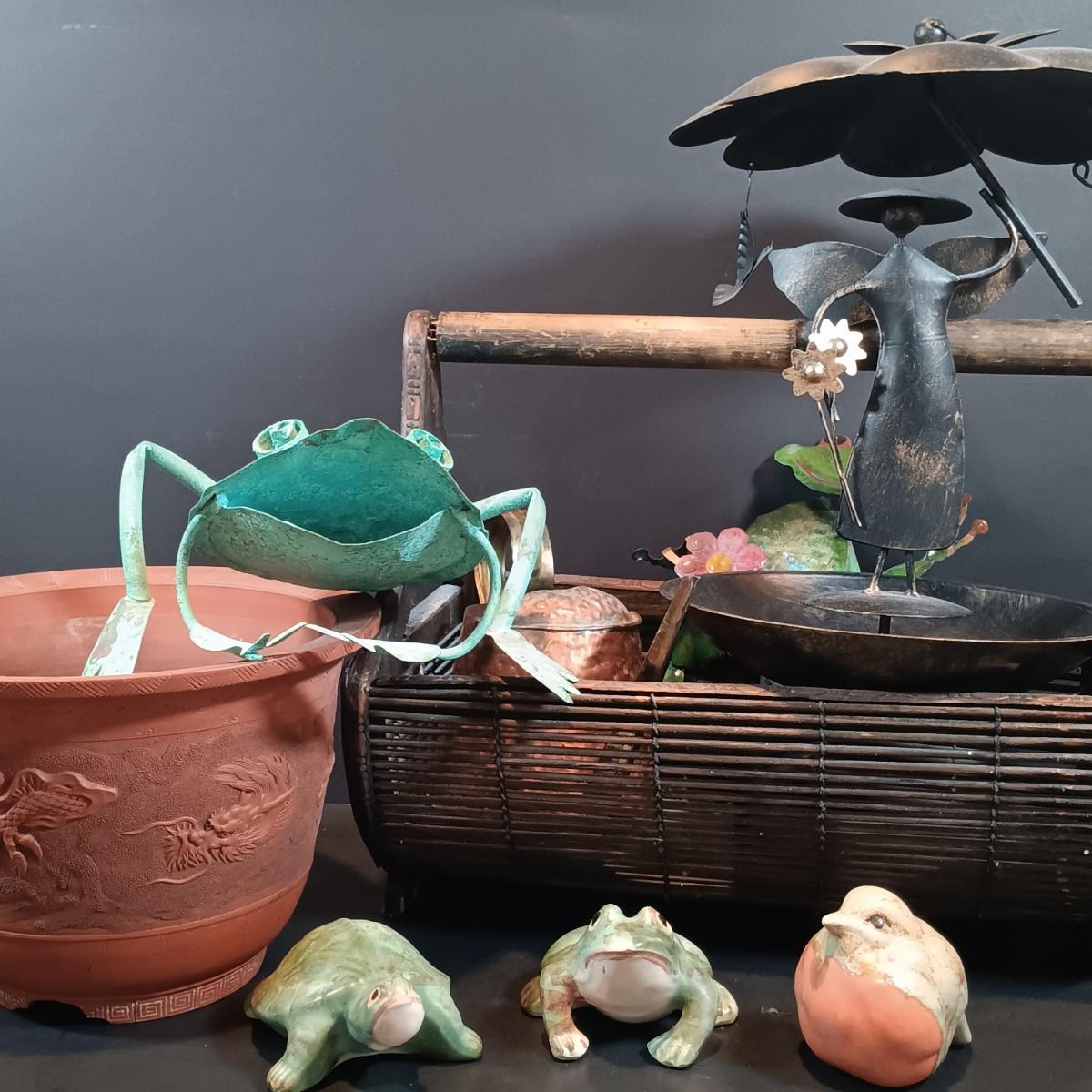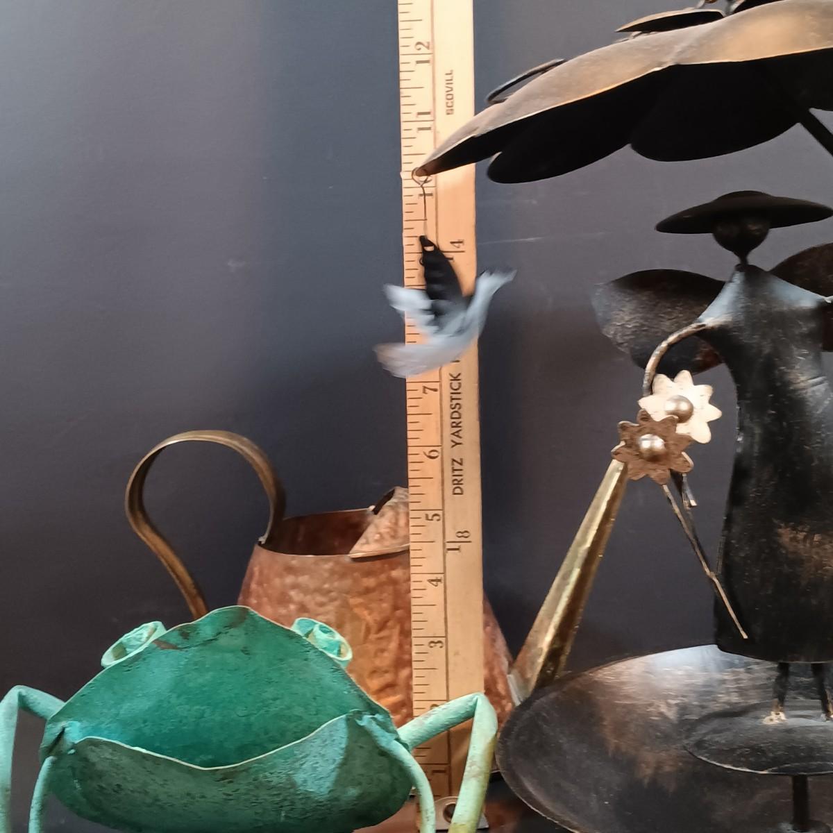 LOT 130: Terra Cotta Dragon Planter, Metal Garden Angel Bird Feeder, Copper Watering Can & More