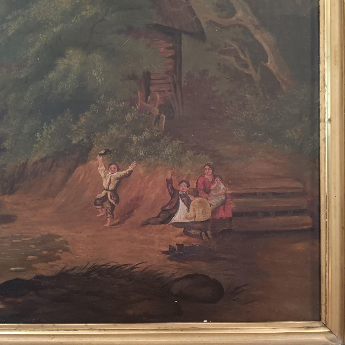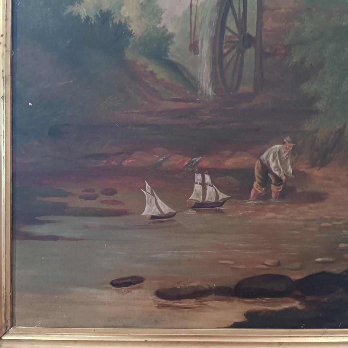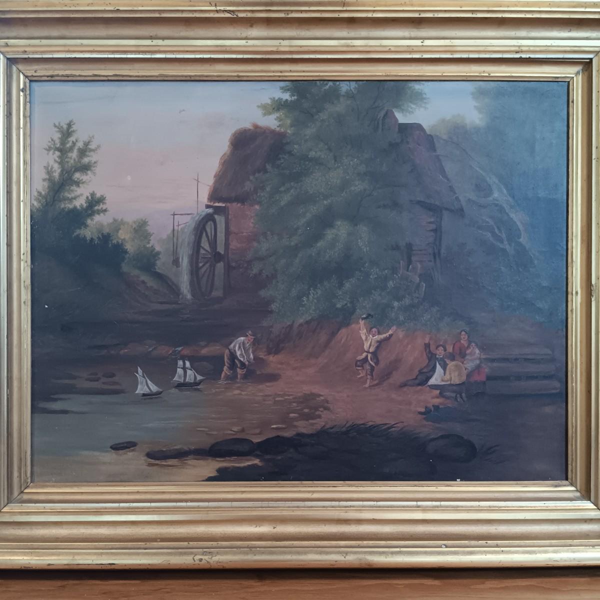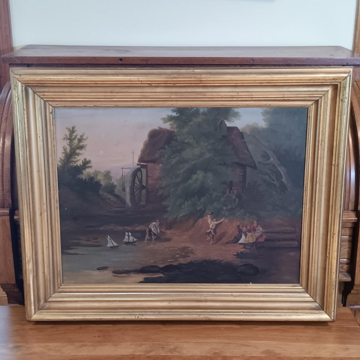 LOT 131: Reproduction Oil Painting of Abraham le Blond's The Mill Stream - Towing the Prize