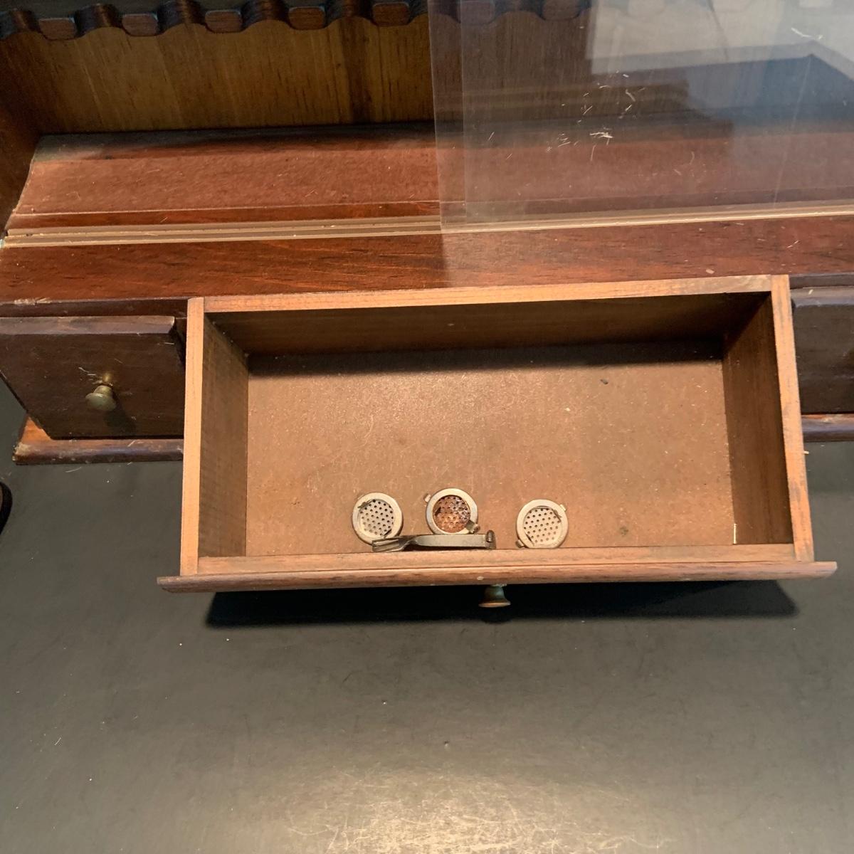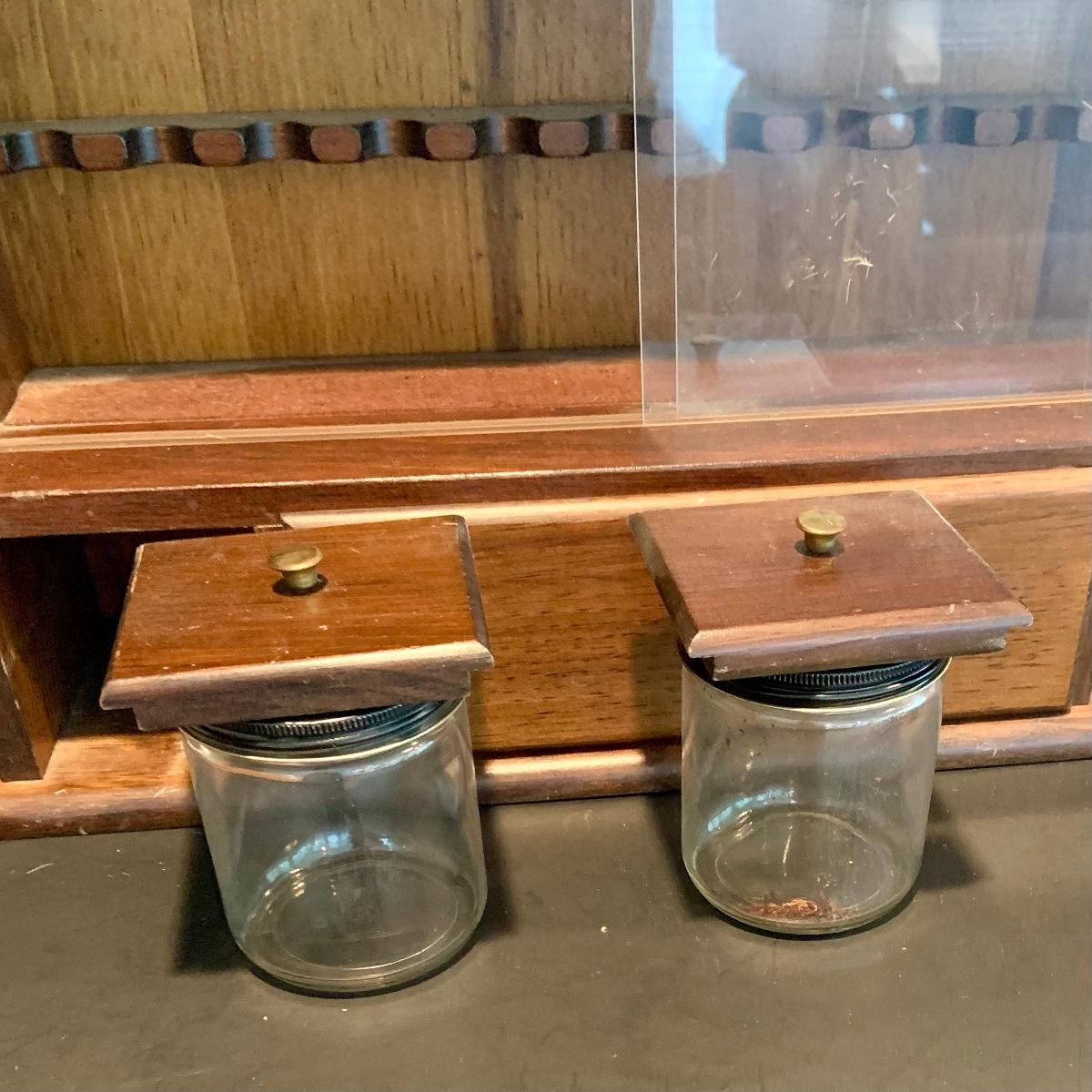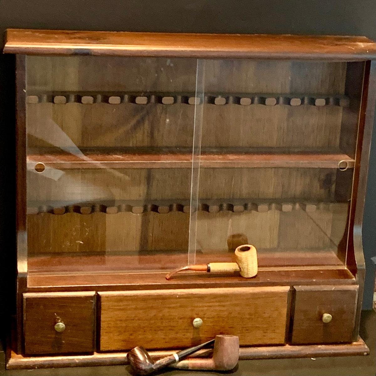 LOT 136: Vintage Wood and Glass Pipe Display Cabinet with Tobacco Jar Drawers with Pipes and More