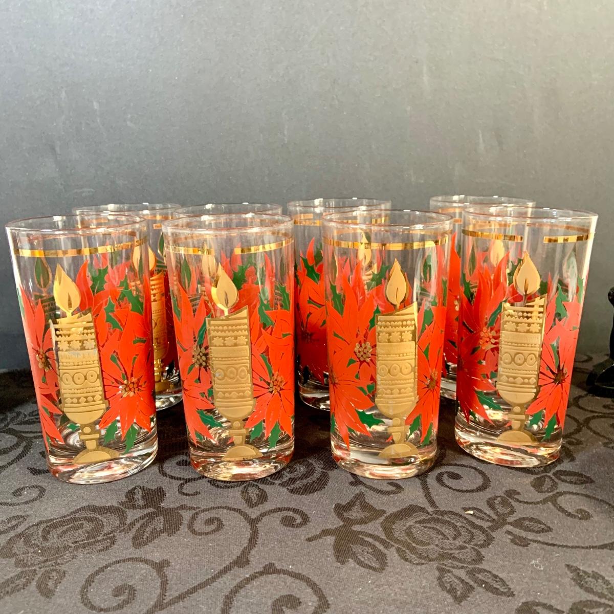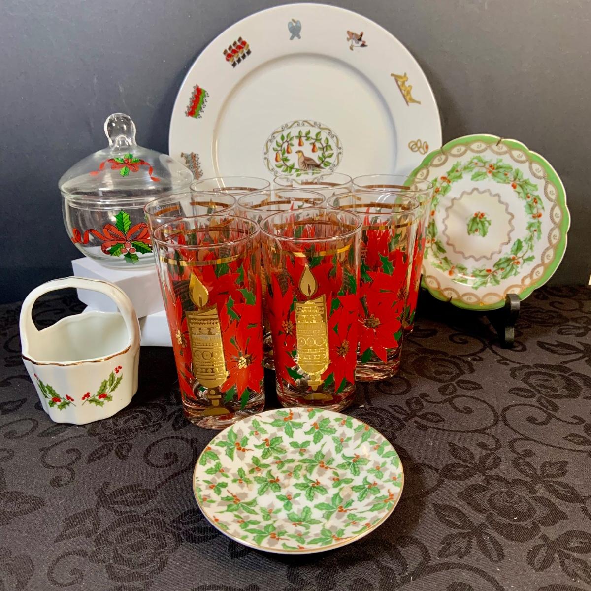 LOT 148: Vintage Christmas - Set of Eight (8) Candlelit 12 oz Tumblers In Original Box, Christmas Plates and More