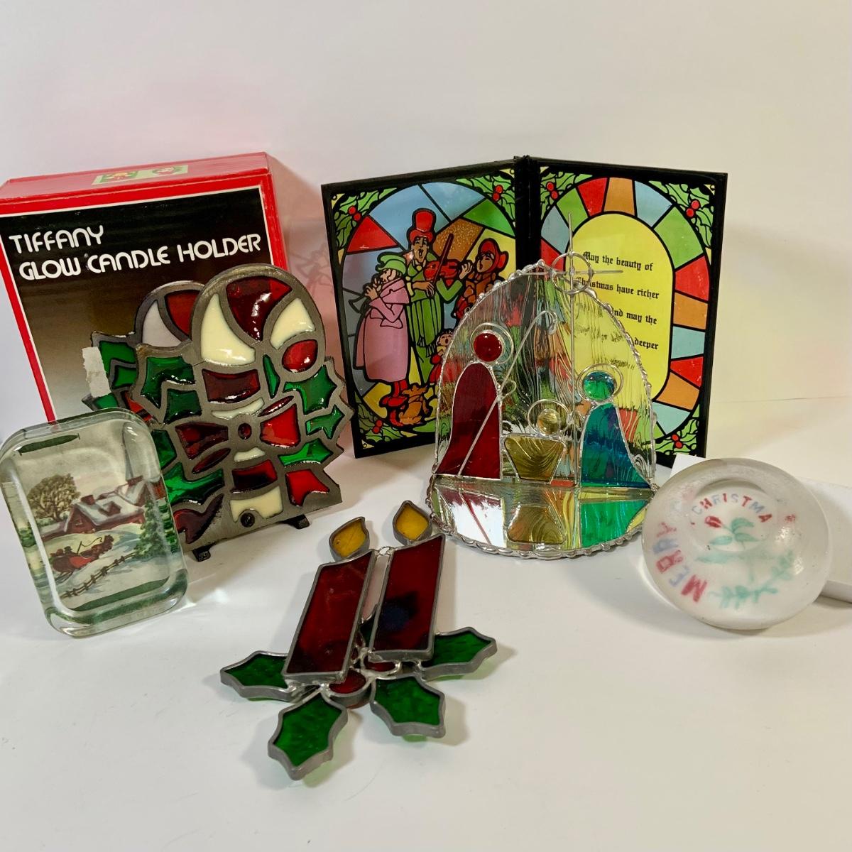 LOT 150: Collection of Vintage Holiday Stain Glass Decorations and More