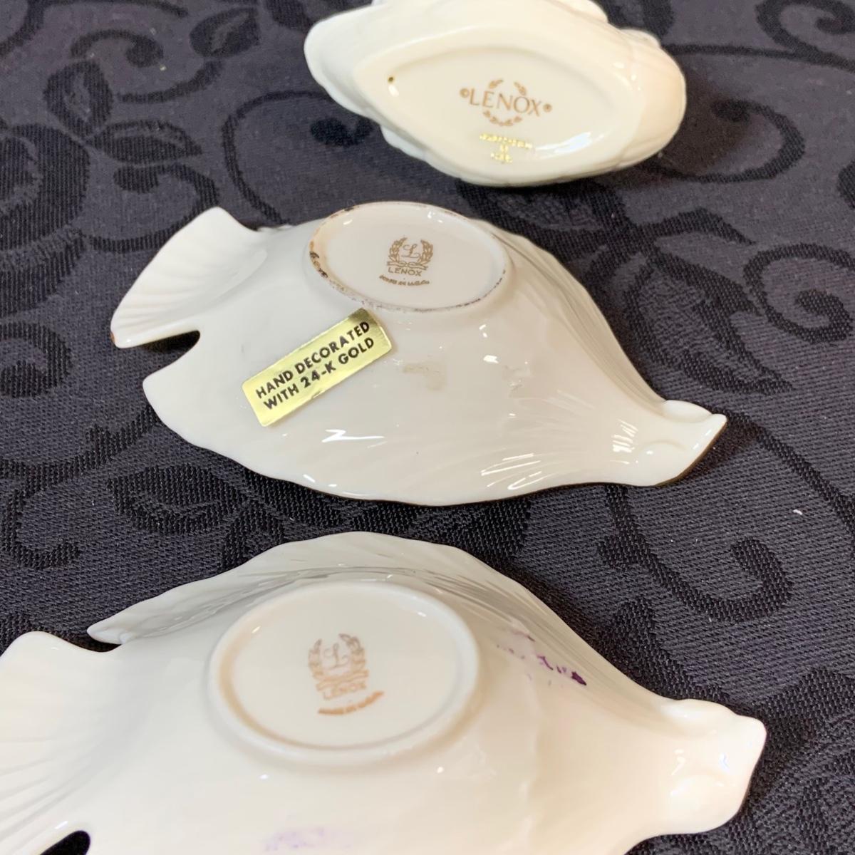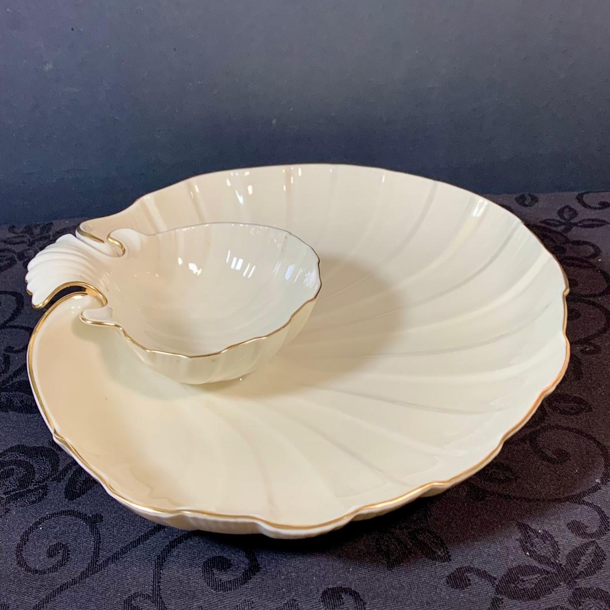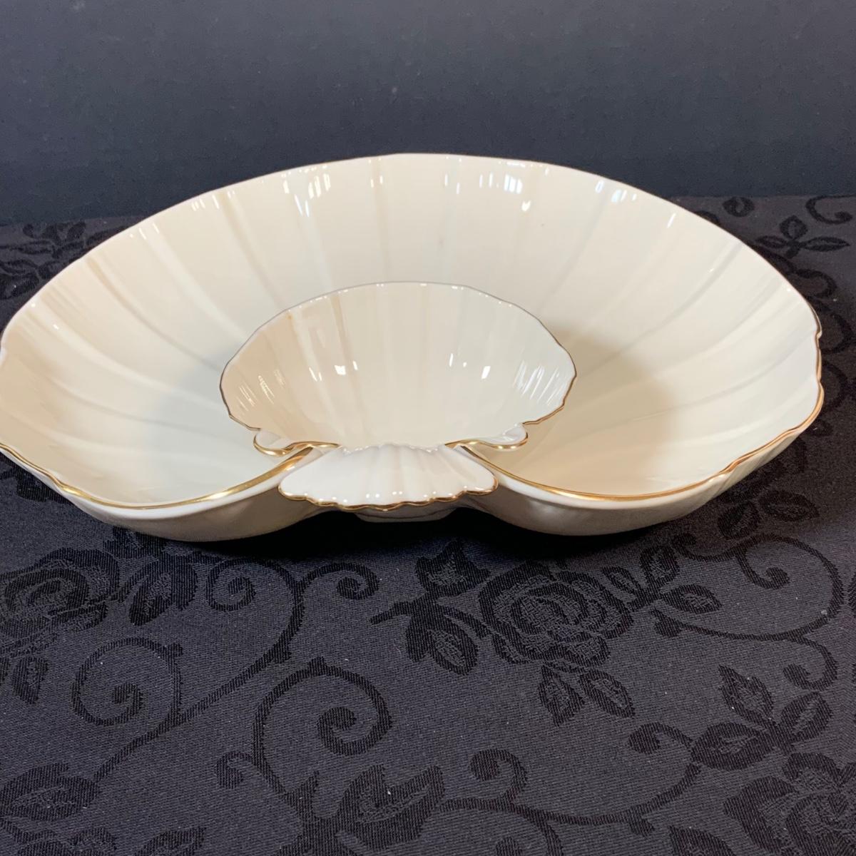 LOT 155: Collection of Lenox China Featuring Aegean Gold Trim Clam Shell Chip and Dip Bowl, Swan, Bird and Other Bowls
