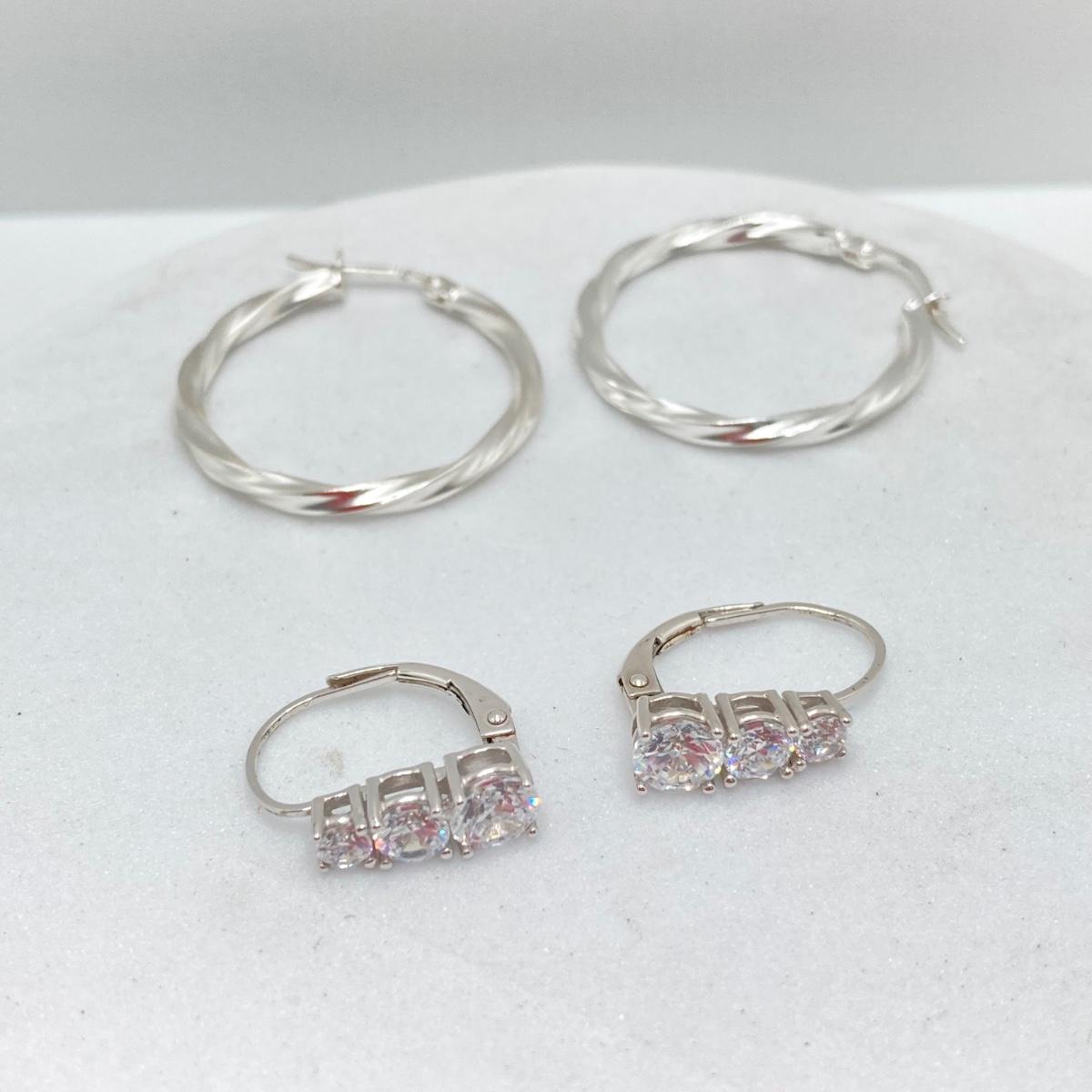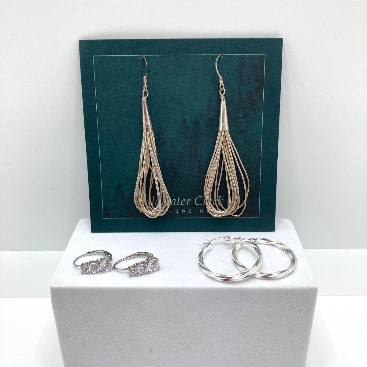 LOT 167: Collection of Sterling Pierced Earrings - Coldwater Creek Liquid Silver Dangle, Hoops and Loops Silver and Cubic Zirconia Styles