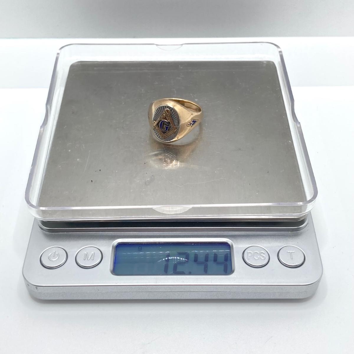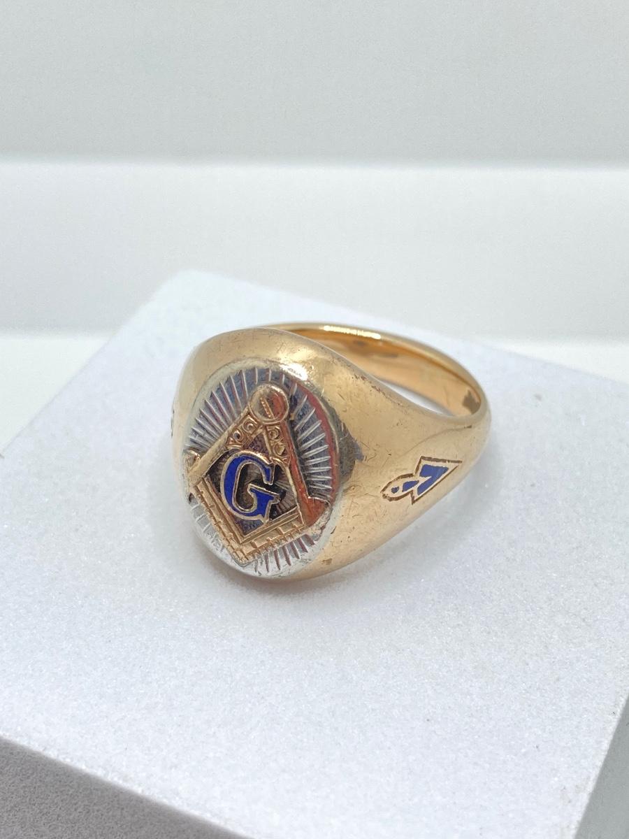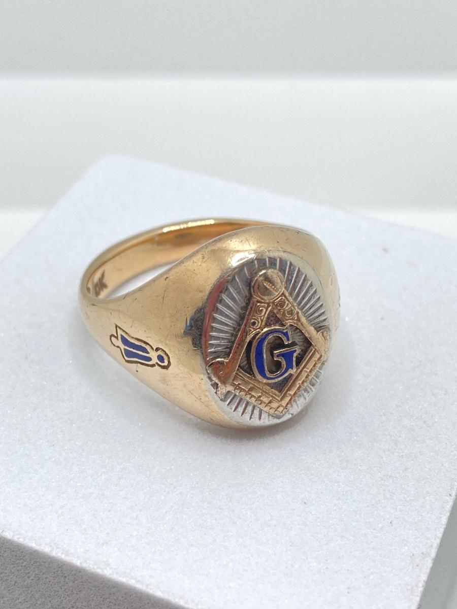 LOT 170: Vintage Craft Freemason Gold Ring - 10KT, TW 12.44, Sz 10.5