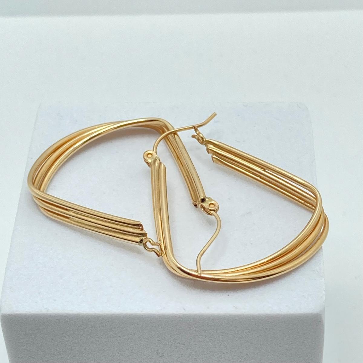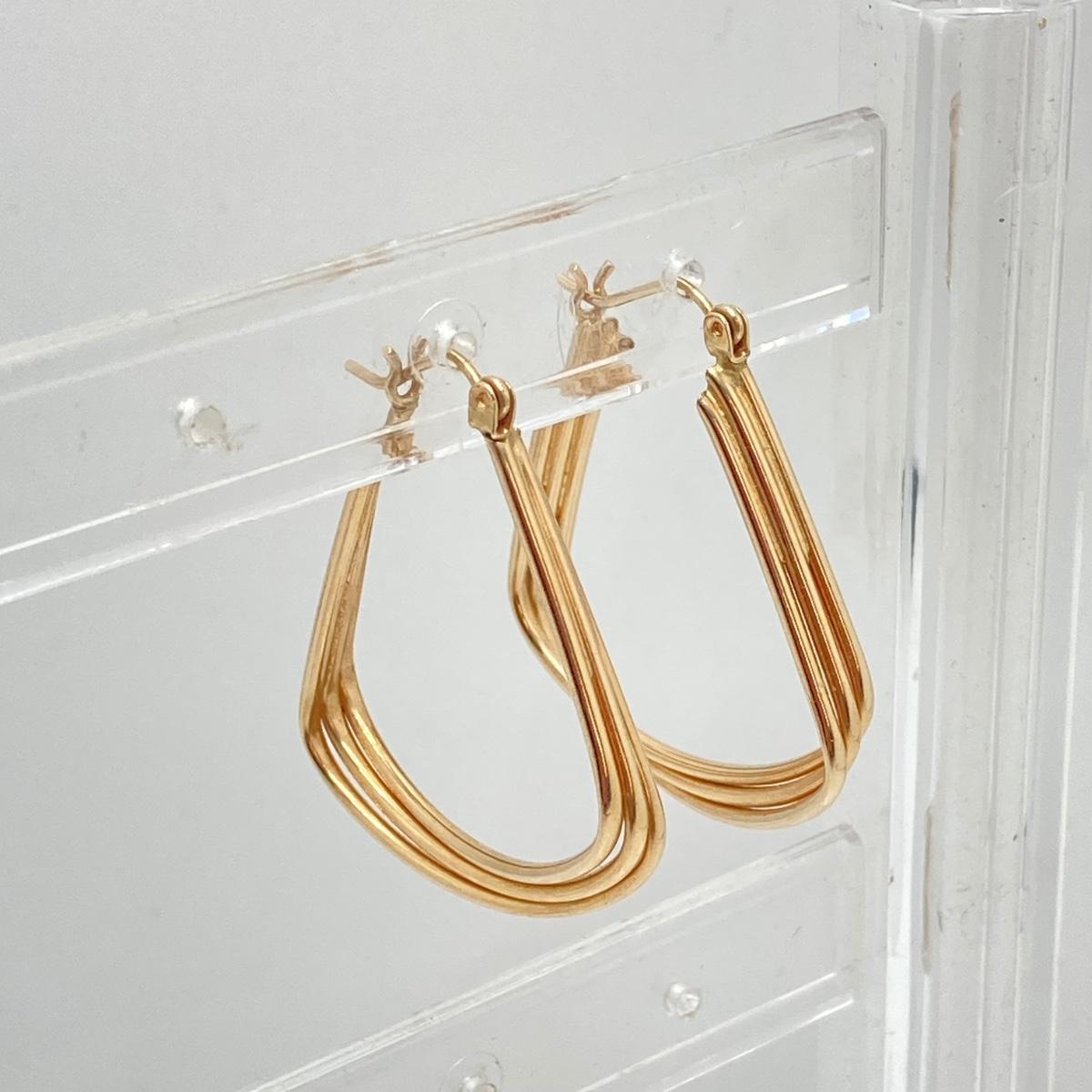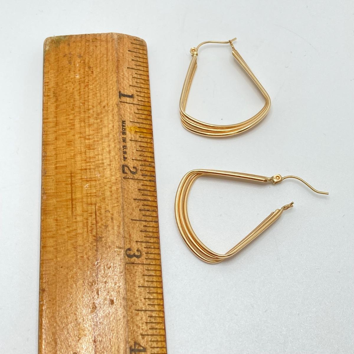 LOT 172: Gold Triple Layer Pierced Earrings - 14KT, TW 2.92g