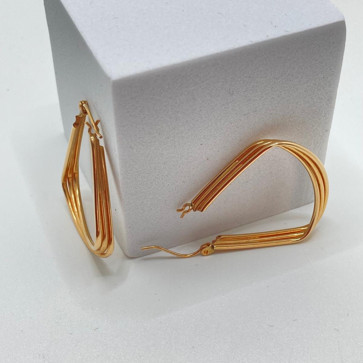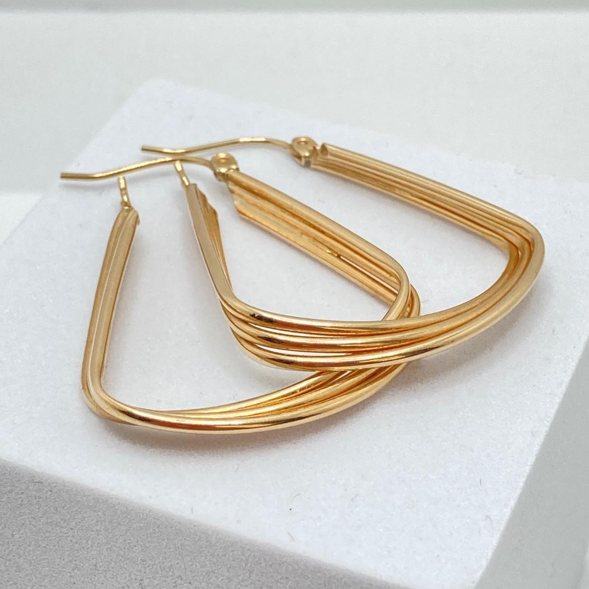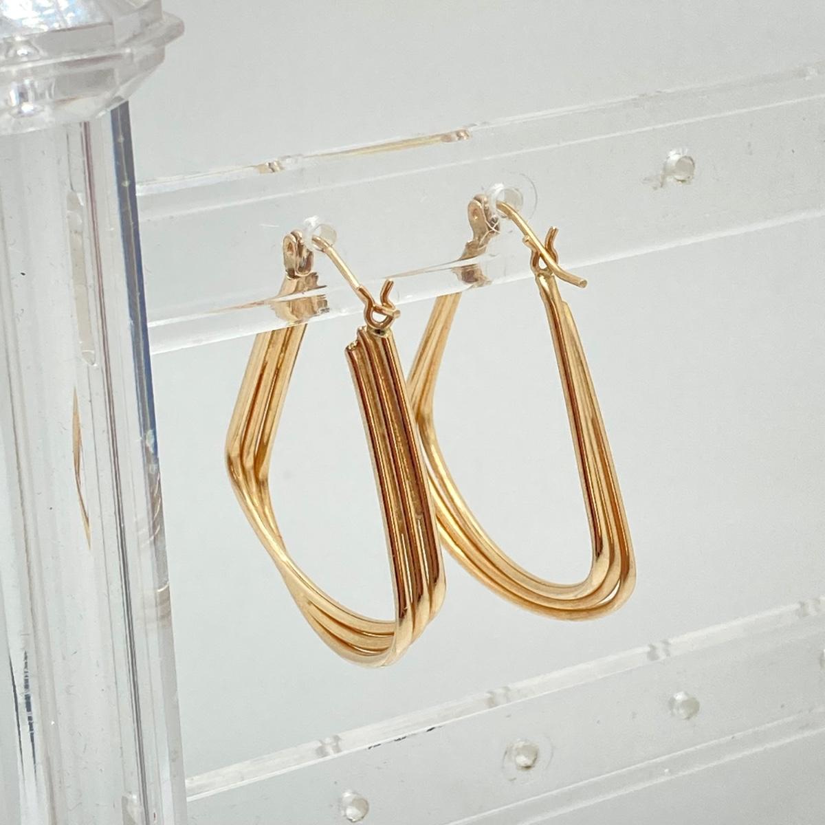 LOT 172: Gold Triple Layer Pierced Earrings - 14KT, TW 2.92g