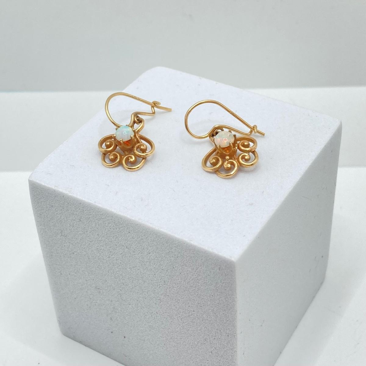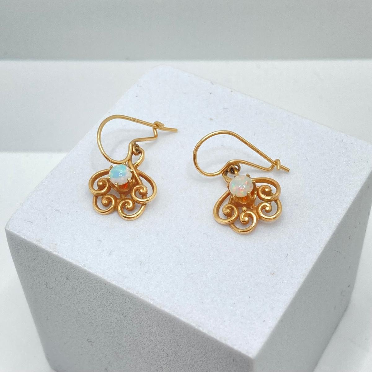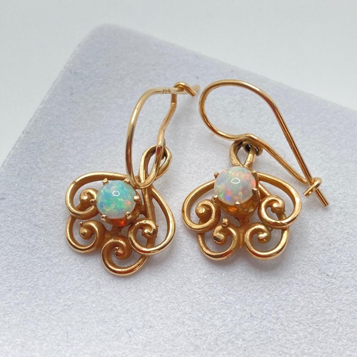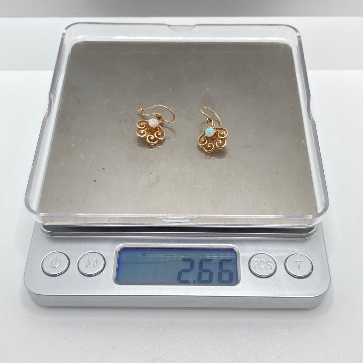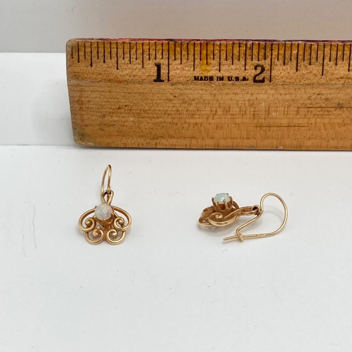 LOT 173: Gold and Opal Dangle Pierced Earrings - 14KT, TW 2.66g